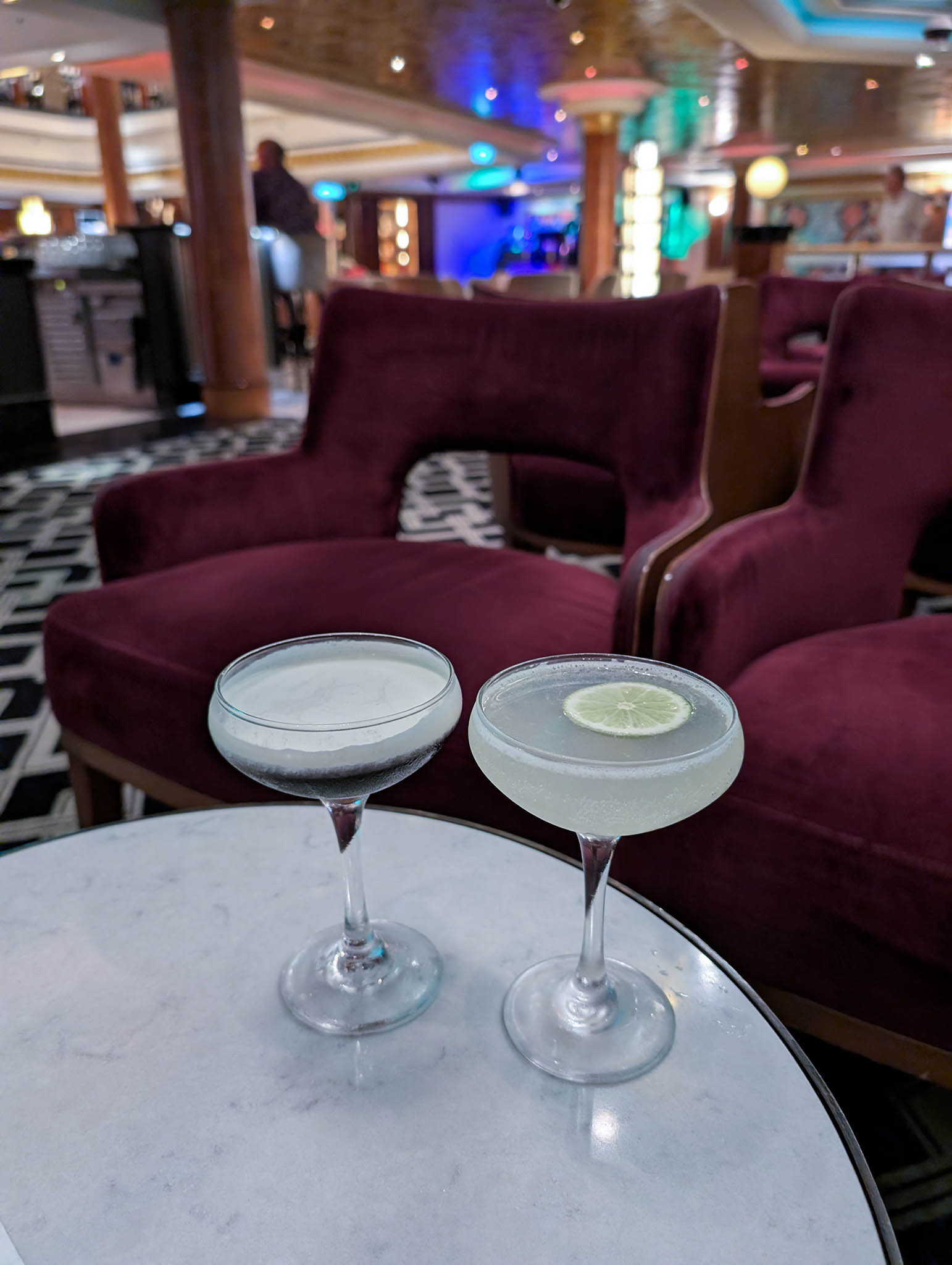 The layout of the ship took some getting used to. Jade has a very asymmetrical feel to her in places where picking the port or starboard way of approaching a venue made more of a difference than we were expecting. We’ve been on ships before where to approach one dining room you have to come at it from a deck above and that was true of the main dining room, Grand Pacific, where we ate most evening meals. Port embarkation threw us a few times because you’d enter on deck four on the starboard side, for instance, and scan cards, but would need to walk a little way snaking through barriers for the important security (i.e. bottle confiscation) check, and by the time you’d completed that you’d be on the port side without really realising it and sometimes without any clue as to which way was now forward and which was aft. We got lost a couple of times, and we never usually get lost on a ship.