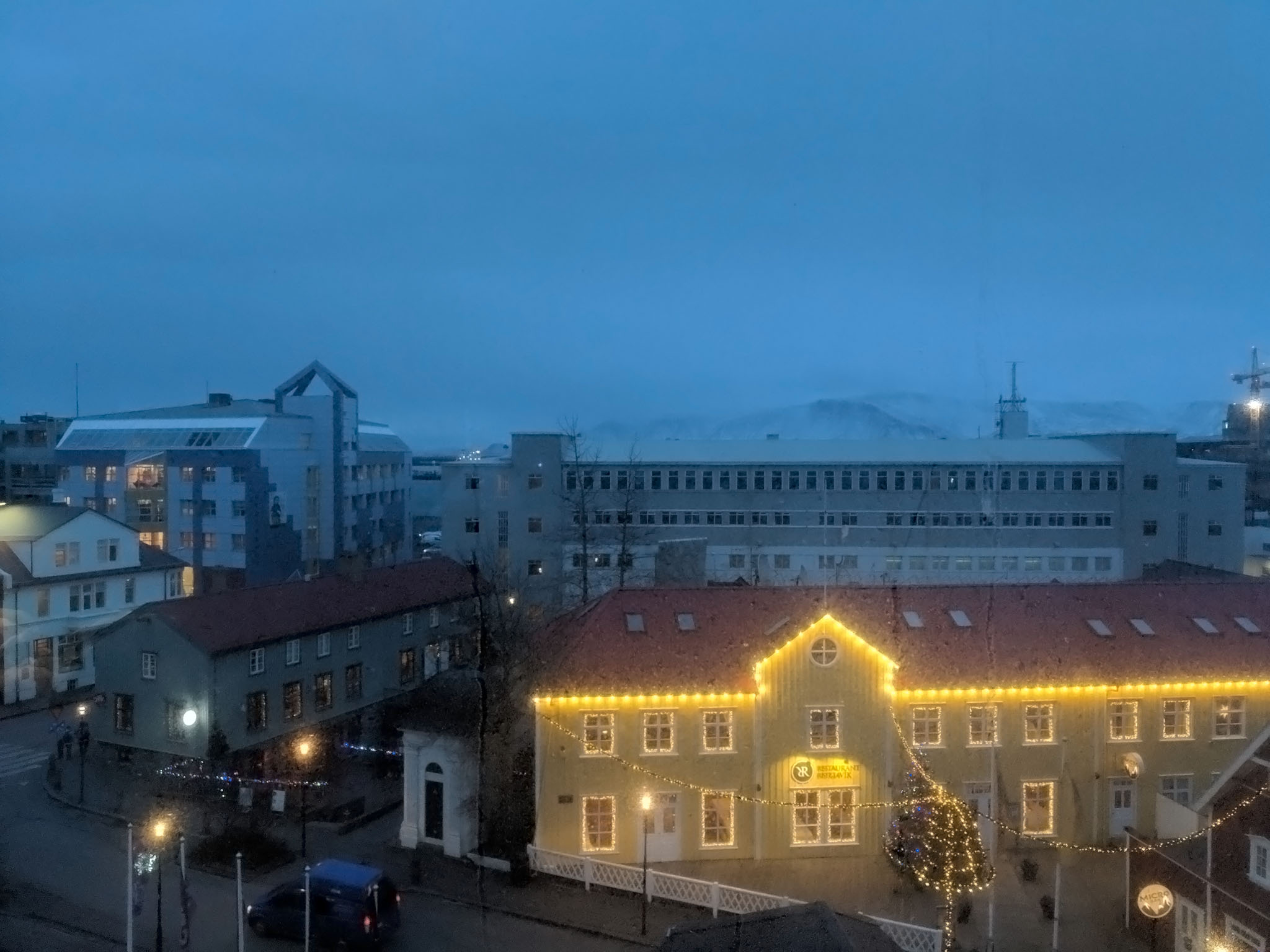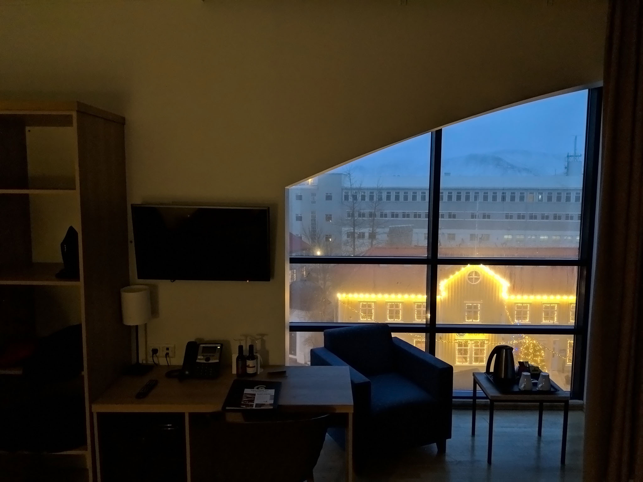 On the way we were pleased to recognise Hafnarfjörður where we’d stayed during our previous visit to Iceland in 2015. We’d really enjoyed that stay but wanted something in the city rather than on its outskirts so this time we had chosen the CenterHotel Plaza located right on Ingólfur Square. Our room was spacious – perhaps bordering on the spartan but appropriate for the Icelandic aesthetic – and on the top floor of the hotel, and would have provided some lovely views over the buildings across the bay that formed the northern edge of Reykjavík to the mountains beyond if it wasn’t mid-afternoon with an already fast-fading light along with a chilly drizzle in the vicinity.