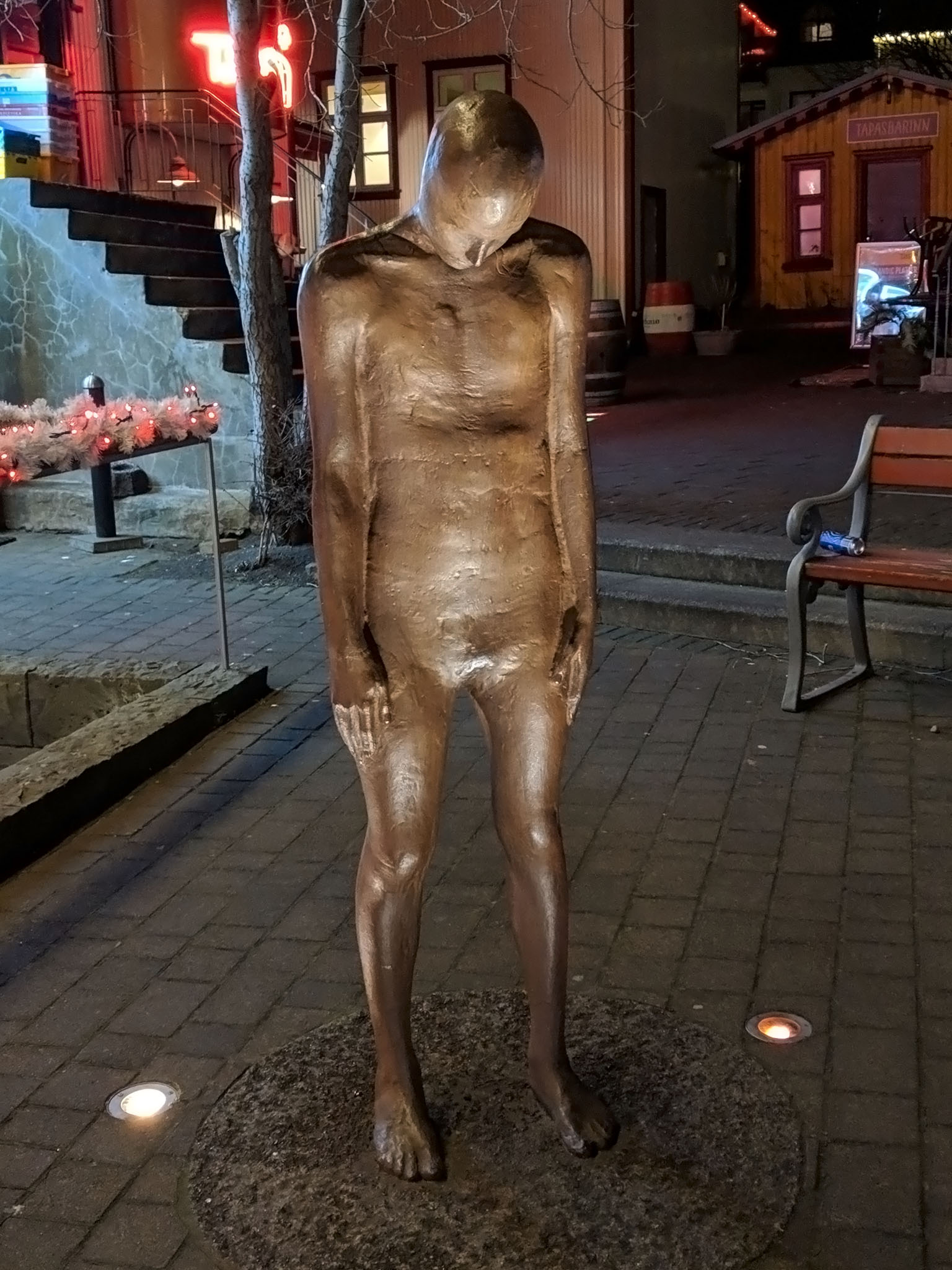 We finished the evening after the meal with a short walk to see if anything caught our eye but ultimately decided to simply head back to our hotel room to warm up and get a decent night’s sleep after about fifteen minutes of that chilly activity. A final, somewhat eerie sight of the night was this sculpture that wouldn’t have looked too out of place in an episode of Doctor Who.