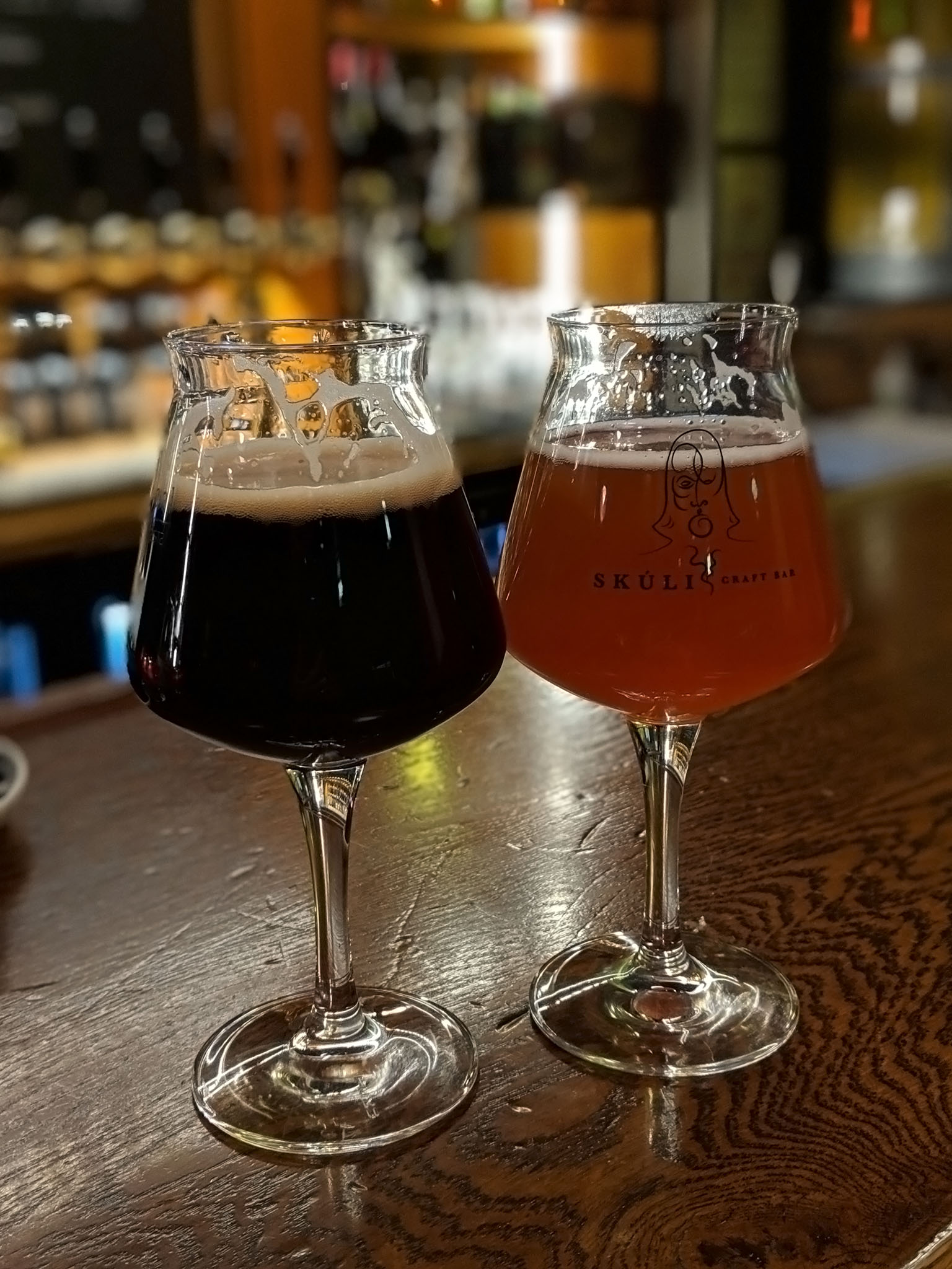 We’d already spotted a number of places that could satisfy our food cravings, all of them very close to our hotel, and checked the map on the phone to pick one of them and a route. That’s when we noticed another place in the vicinity serving up local craft ales – the Skúli Craft Bar – so heading back past the Christmas decorations for the Yule Cat we made for the bar and exchanged money for alcohol once again.