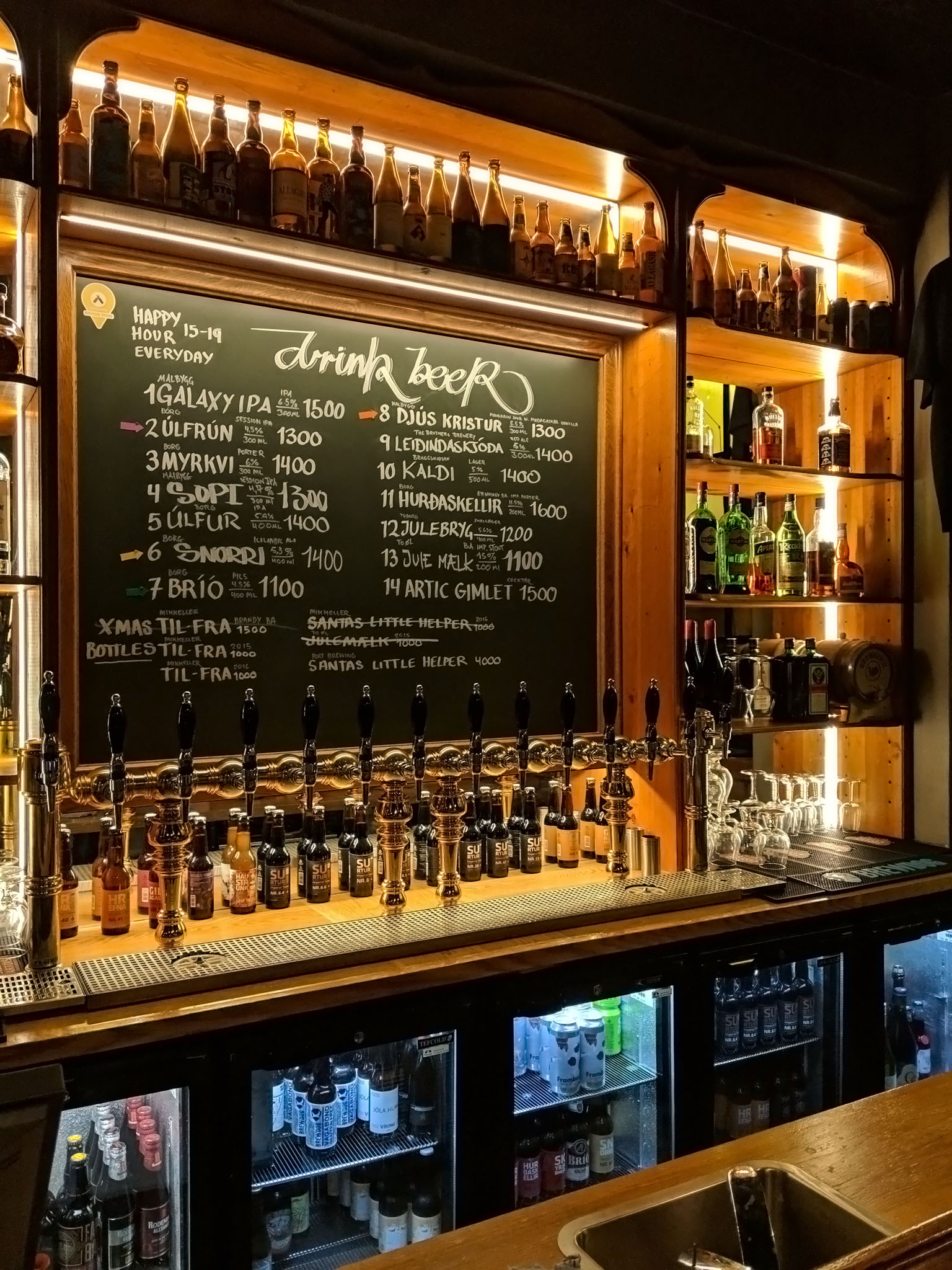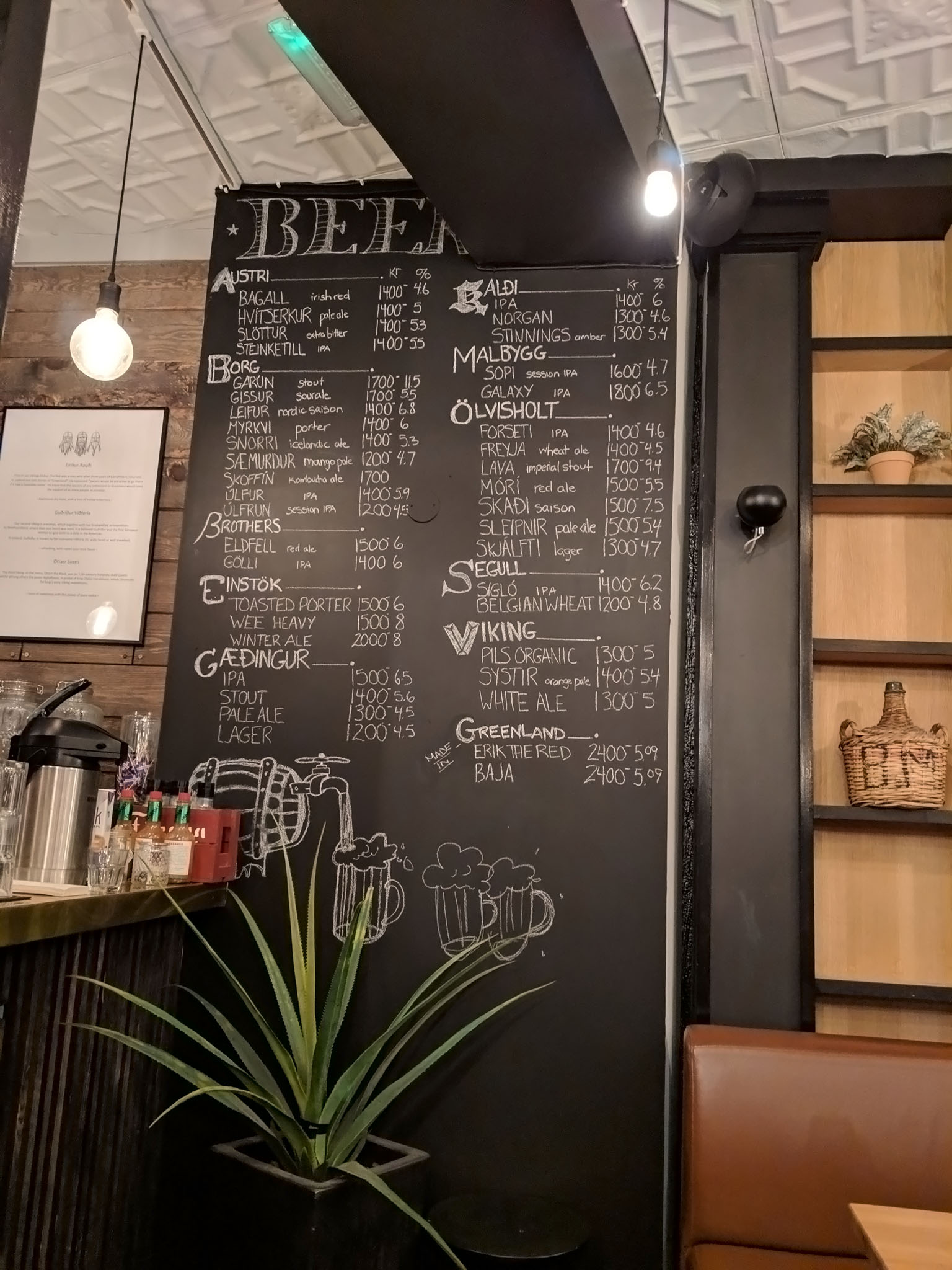 We didn’t wander very far from the hotel as we already had a place in mind to check out so after braving the bitter wind and unpleasantly persistent spitty rain for less than twenty minutes we quickly made for the Icelandic Craft Bar on Lækjargata. My wife was on a quest to have a cocktail in Iceland for some reason but I stuck with what I know and love: a local, red ale.