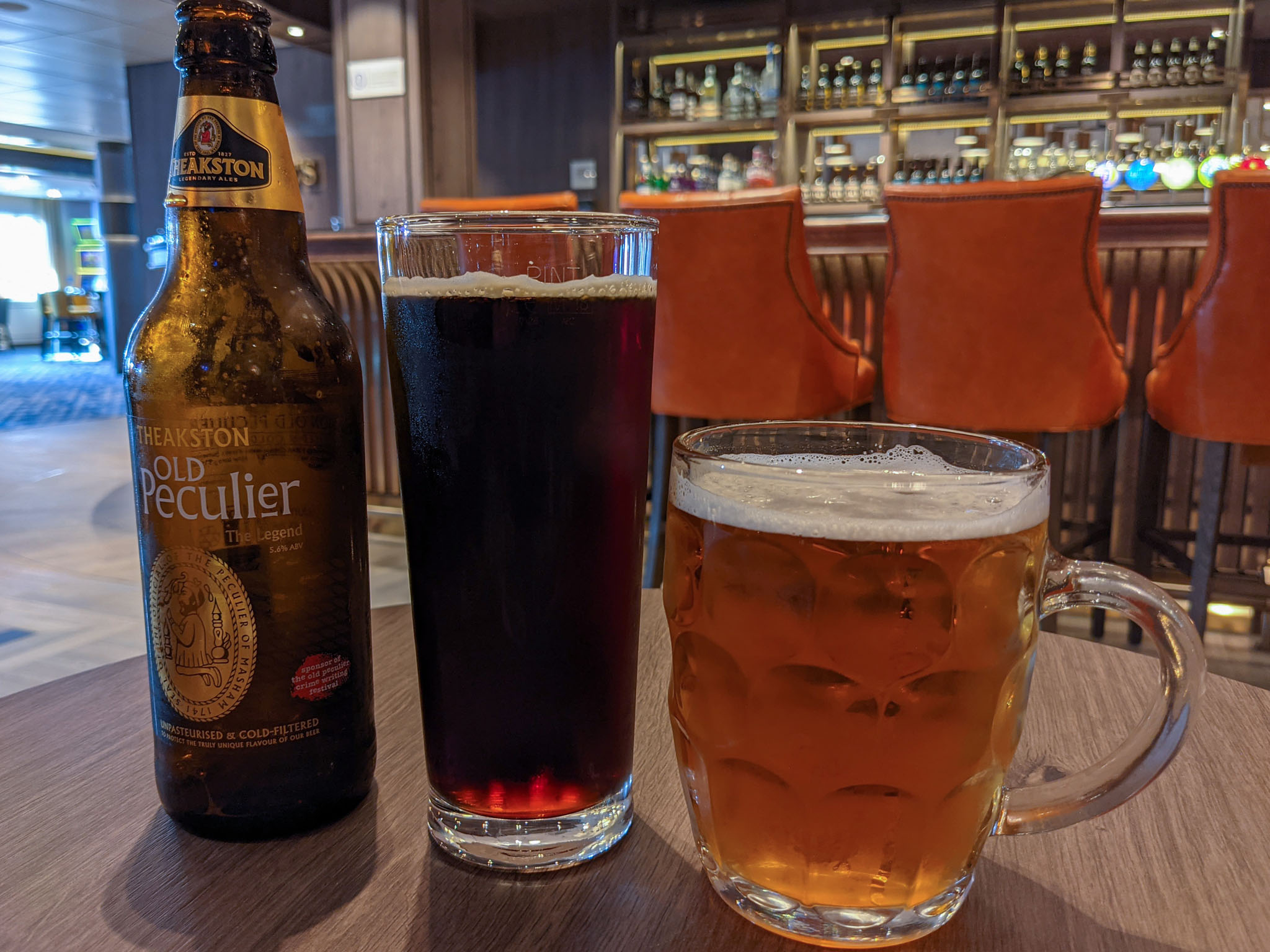 “I’d like a pint of Aspall’s,” said my wife. You’ll spot that what she got was Old Peculier in the photo below. I just about managed to hold back my wife’s loud utterance of “Oh, for fuck’s sake!” when told they didn’t have any Aspall’s on board. They never have the first thing we order aboard P&O ships. It’s a tradition we’d like to see go the way of the dodo.