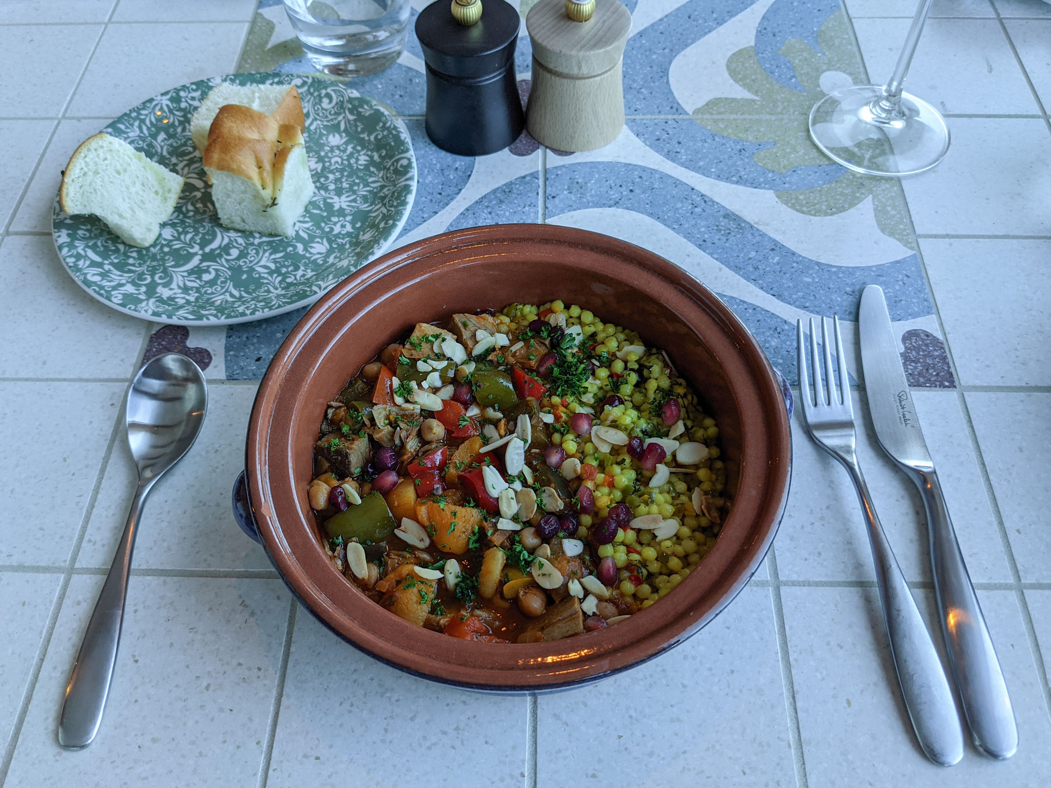 Anyway, the fact that we tried to get in on more than one occasion tells you that the Olive Grove was good. It was good. It wasn’t perfect because my tagine came with some staff member’s long hair strung through it. Fairly low on the gross-o-meter to me but it still registers as an unpleasant discovery. The less hirsute part of the tagine was gorgeous.