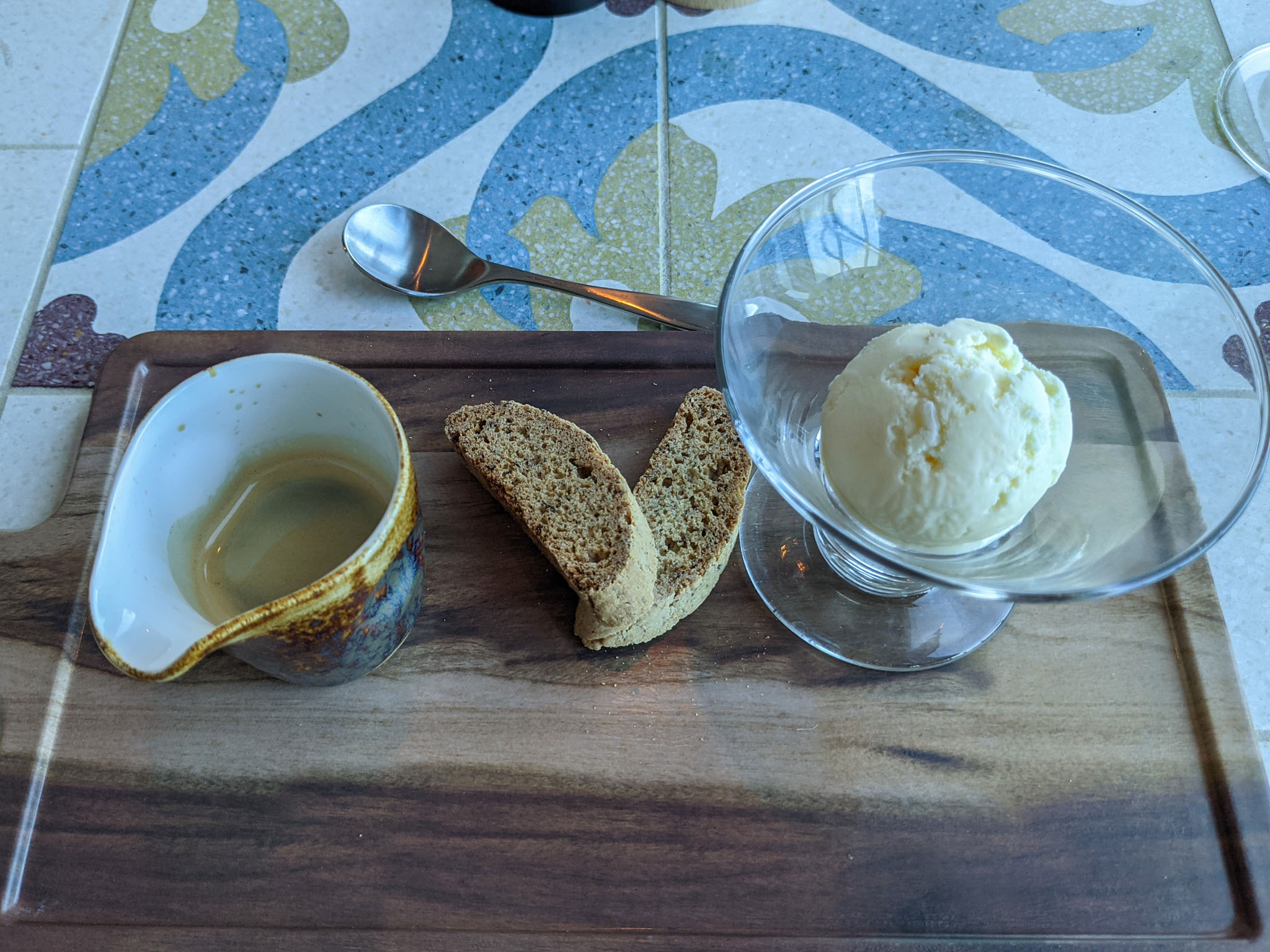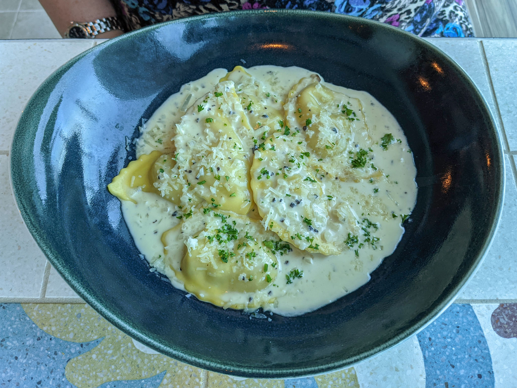 For lunch we decided to see if we could get into the Olive Grove as we’d heard good things about it. We checked the not-an-app and saw it was listed and open so wandered up and were seated immediately. This would be the only time we could get into this place as it was apparently booked solid for the rest of the week. Lots of empty tables when we checked and told no, sorry, and on a vessel at very reduced capacity. Hmmm.