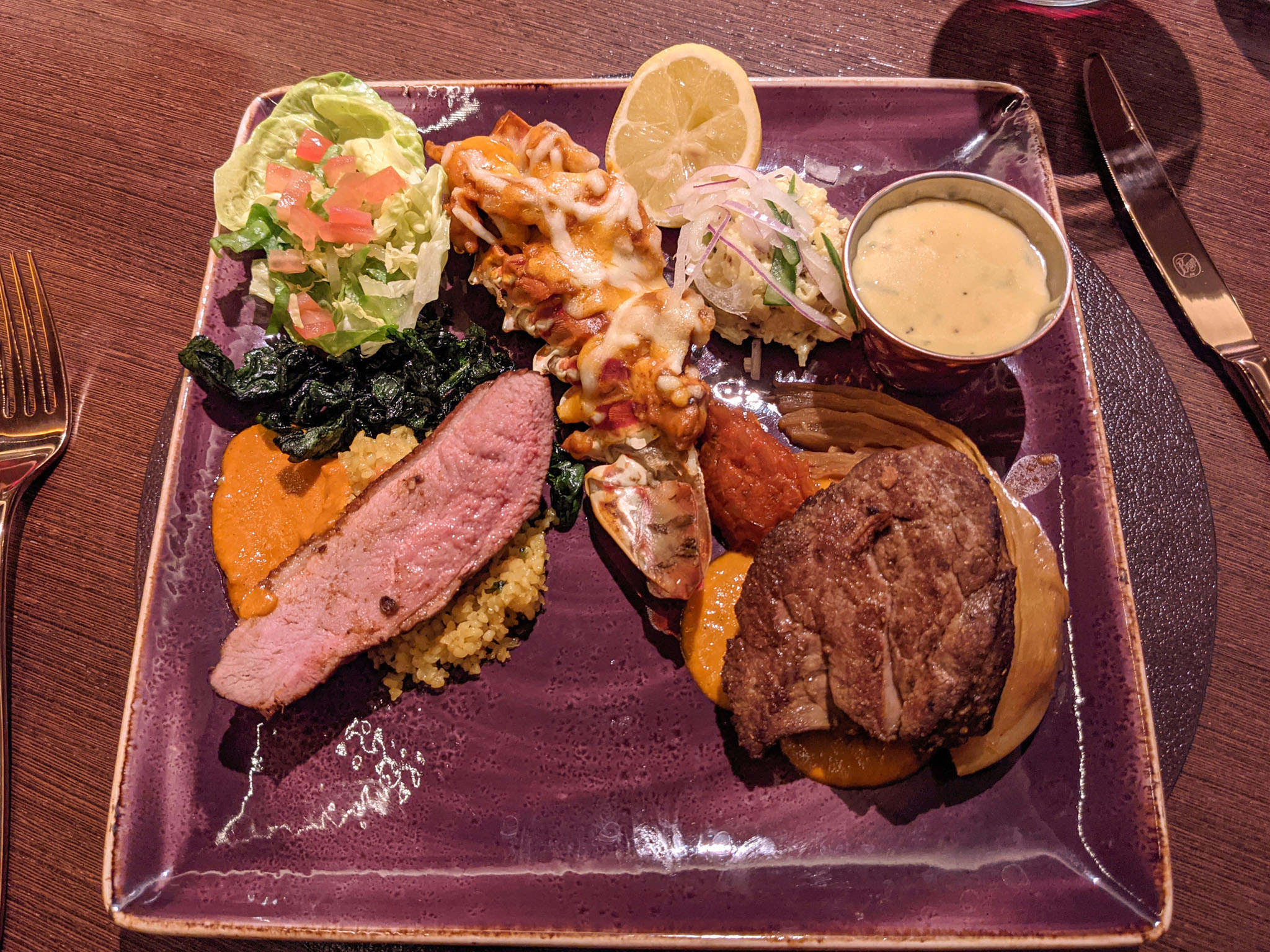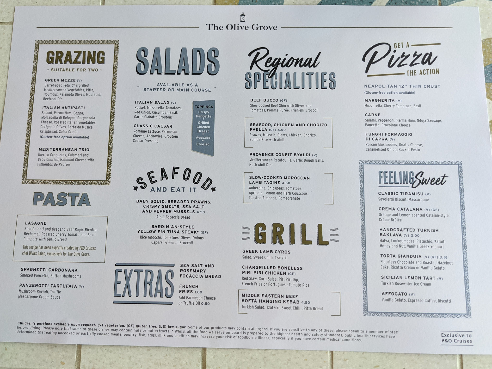 We hadn’t booked anything special for embarkation day so decided to eat in the Glass House for the first night aboard P&O’s Iona. Actually, we were left with eating in the Glass House when we took at look at what P&O call their app but what is really just a fairly basic intranet portal site. The Glass House was the only thing listed. Now, it’s entirely possible that we could have gone to the main dining room anyway but that wasn’t immediately obvious. I would end up having a conversation with one of the dining booking people later in this cruise asking how it was possible to tell the difference between a venue not having availability yet and a venue being completely full for the entire night when the option to virtually queue seemed to randomly appear and disappear from locations around the ship. More on that confusing system in a subsequent post.