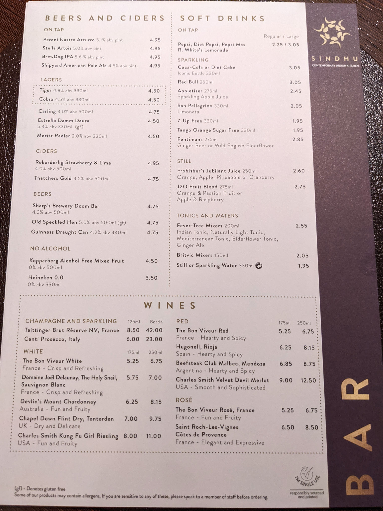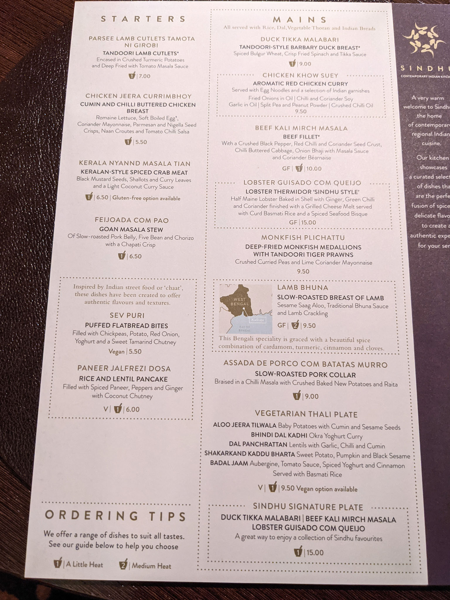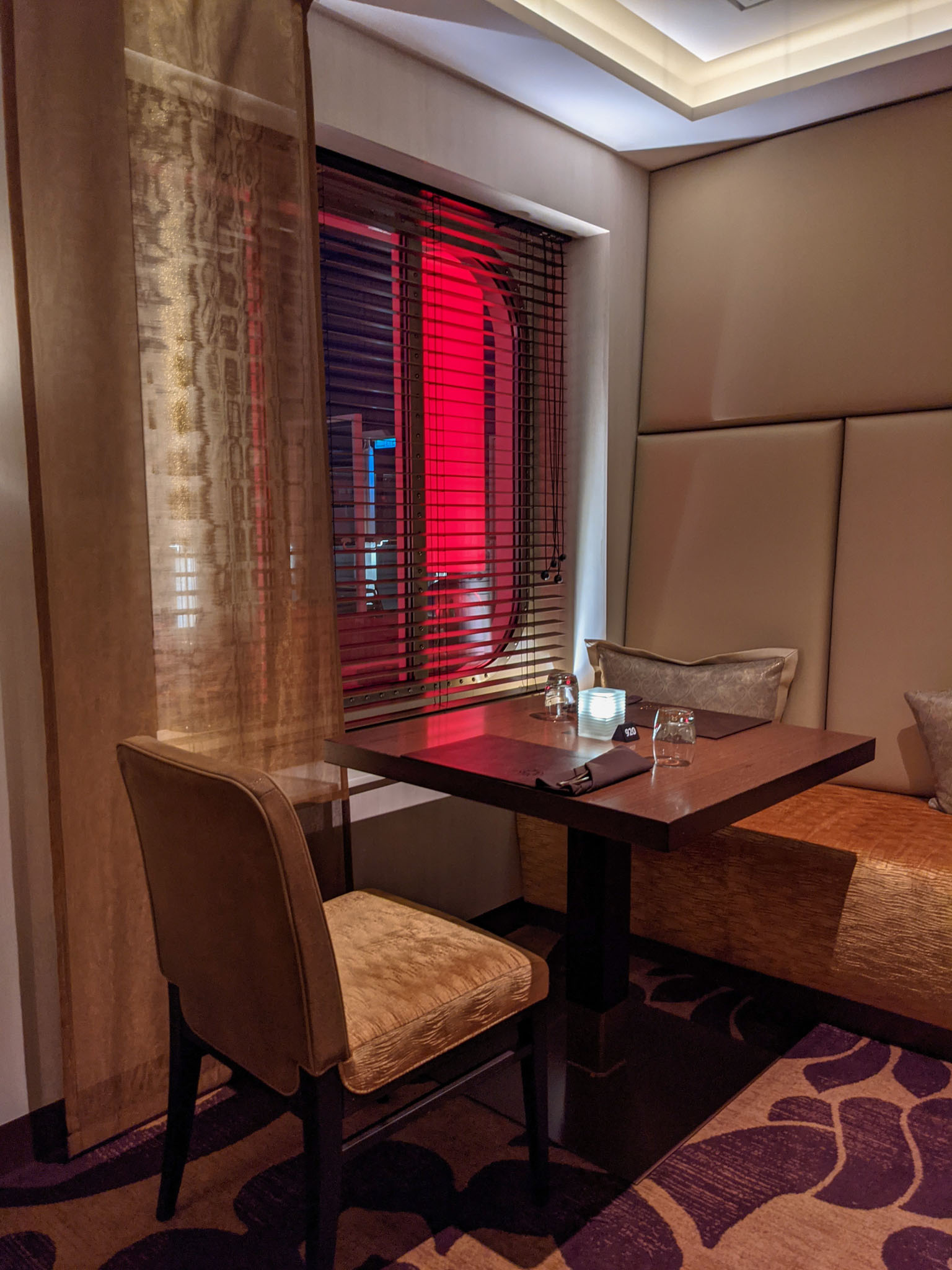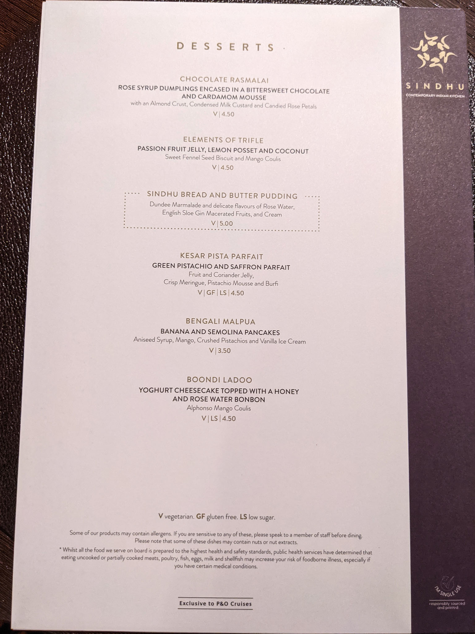 The first of our speciality dining reservations was for this first full day at sea on this cruise, and it was the one we’d been most keen to book simply because we’d never been able to do so on any previous cruise with P&O. This was Sindhu.