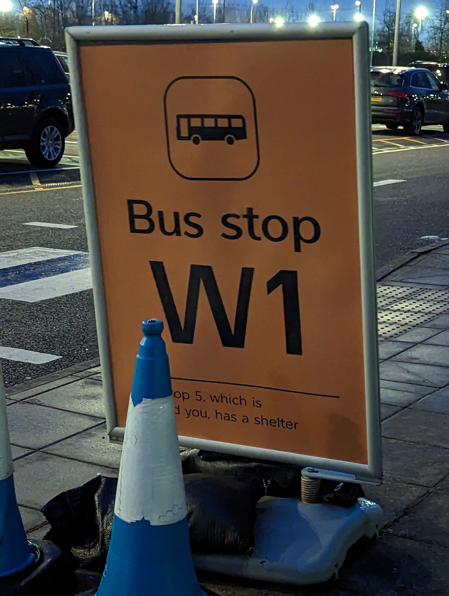 We actually ended up booking at the Hampton by Hilton hotel attached to Gatwick airport so that meant parking the night before instead of in the early hours. That removed one aspect of worry but still left the horrible situation of trying to park at Gatwick. Something about Gatwick airport’s parking you might not know is that it’s close to the airport – which is good – but so that it doesn’t distract pilots the lighting is very, very low. And if the sun’s not up that makes for stress all of its own. It took us so long to find the bus stop after we’d actually found a parking spot.