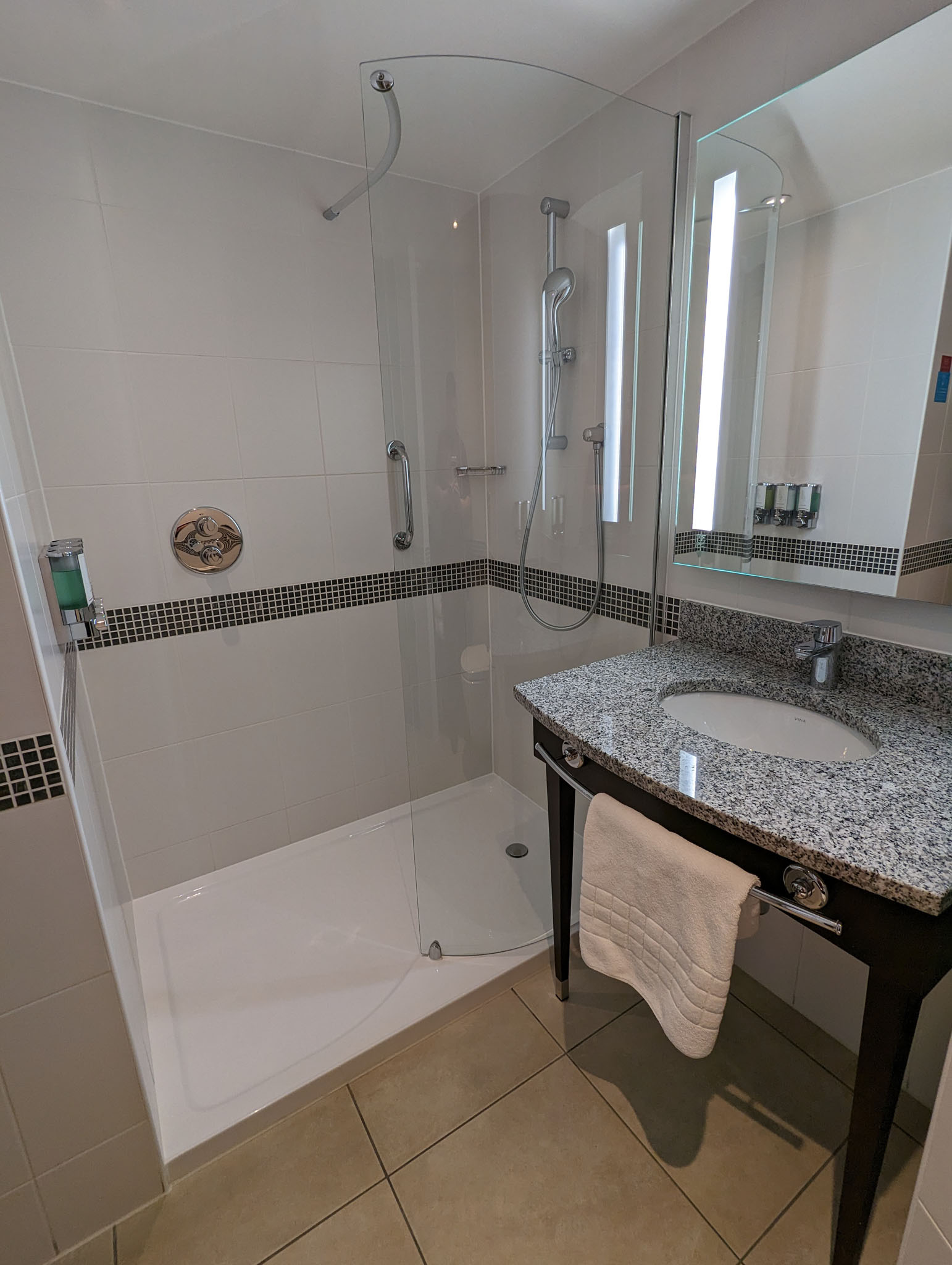 The hotel room was large, spacious, clean, perfectly adequate. It was also under two minutes’ walk from the check-in desks in the airport. In that respect: ideal. There will be people out there who want to see photos of the hotel bedroom and bathroom for some reason, and it’s not like I didn’t take photos for just those people so here they are.