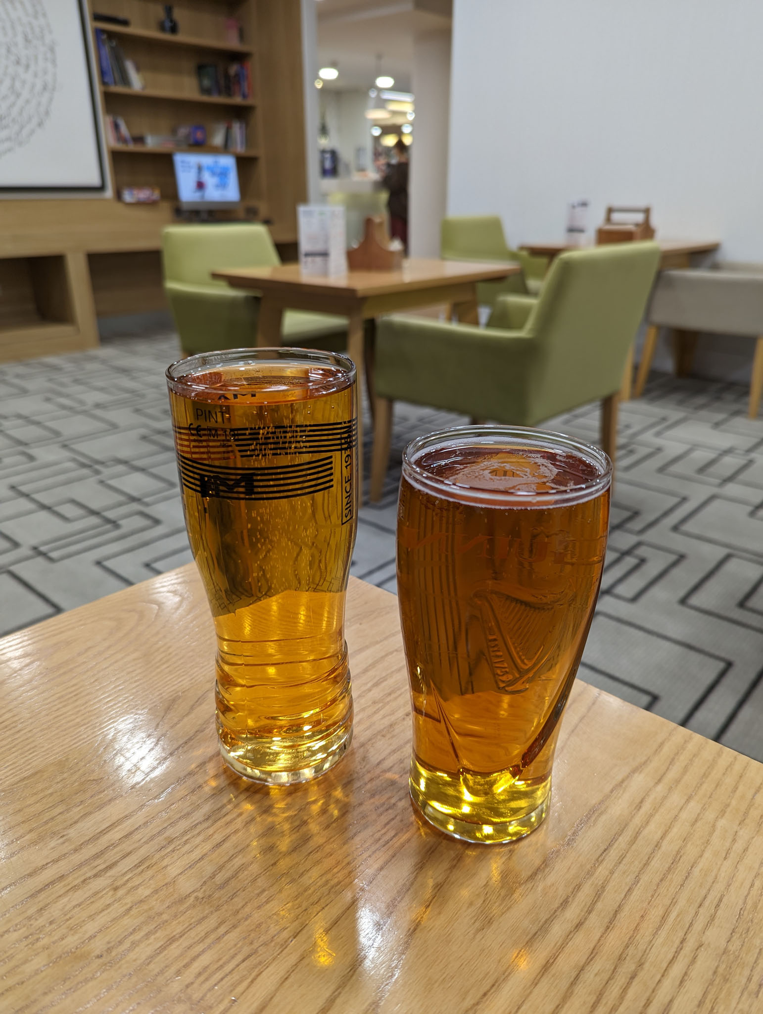 However, once the luggage was checked in and we were through security we made straight for the pub to have breakfast and a pre-flight drink. These are traditions and we follow them. Even though the pub in the airport is a Wetherspoon. It’s the only time we set foot in this chain of establishments and we only do it because we consider airports international territory celebrating connections to the wider world and therefore not bound by the right wing, Little England, xenophobic mentality to which the pubs, their obnoxious owner, and their clientele are otherwise associated.