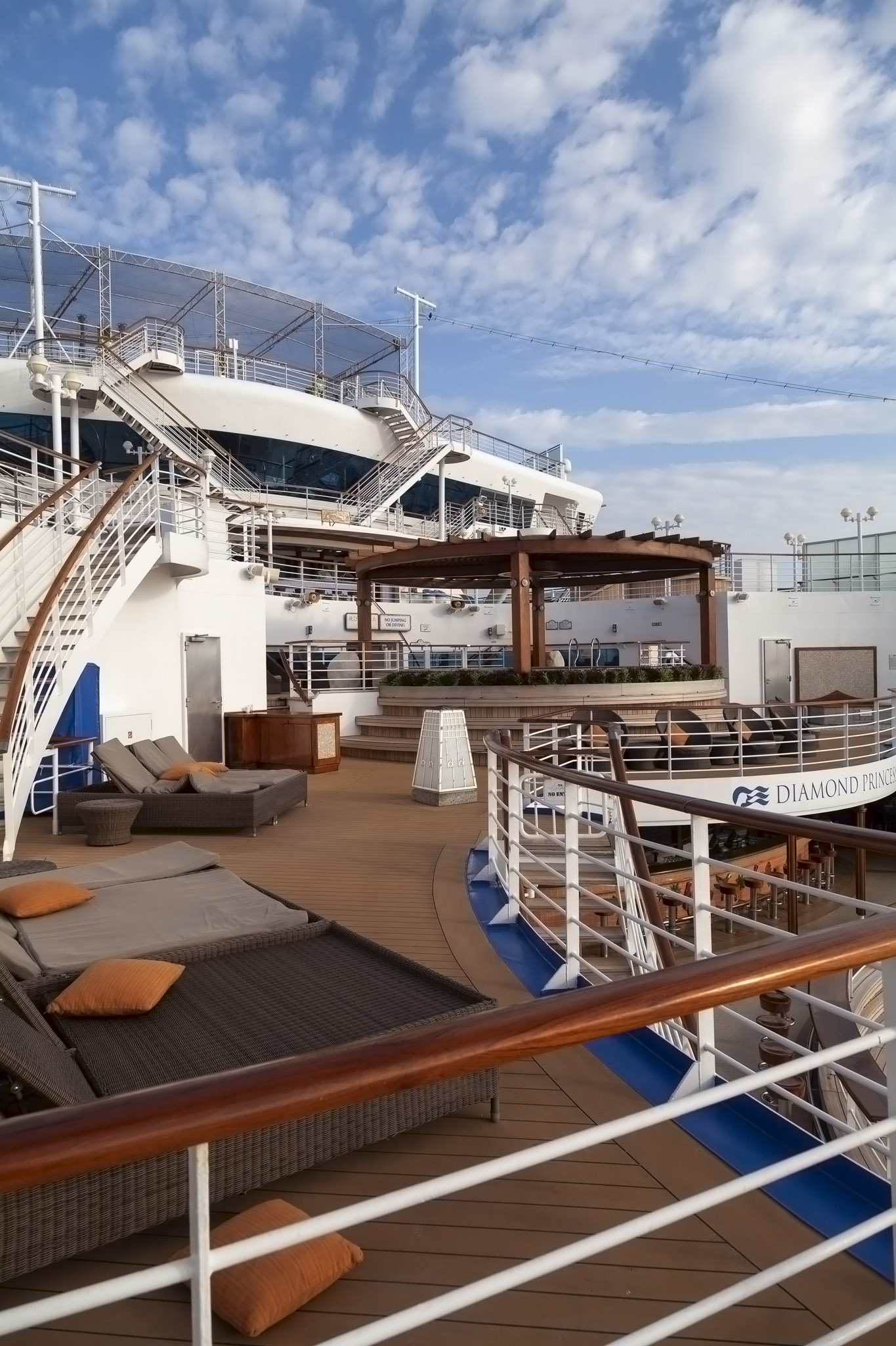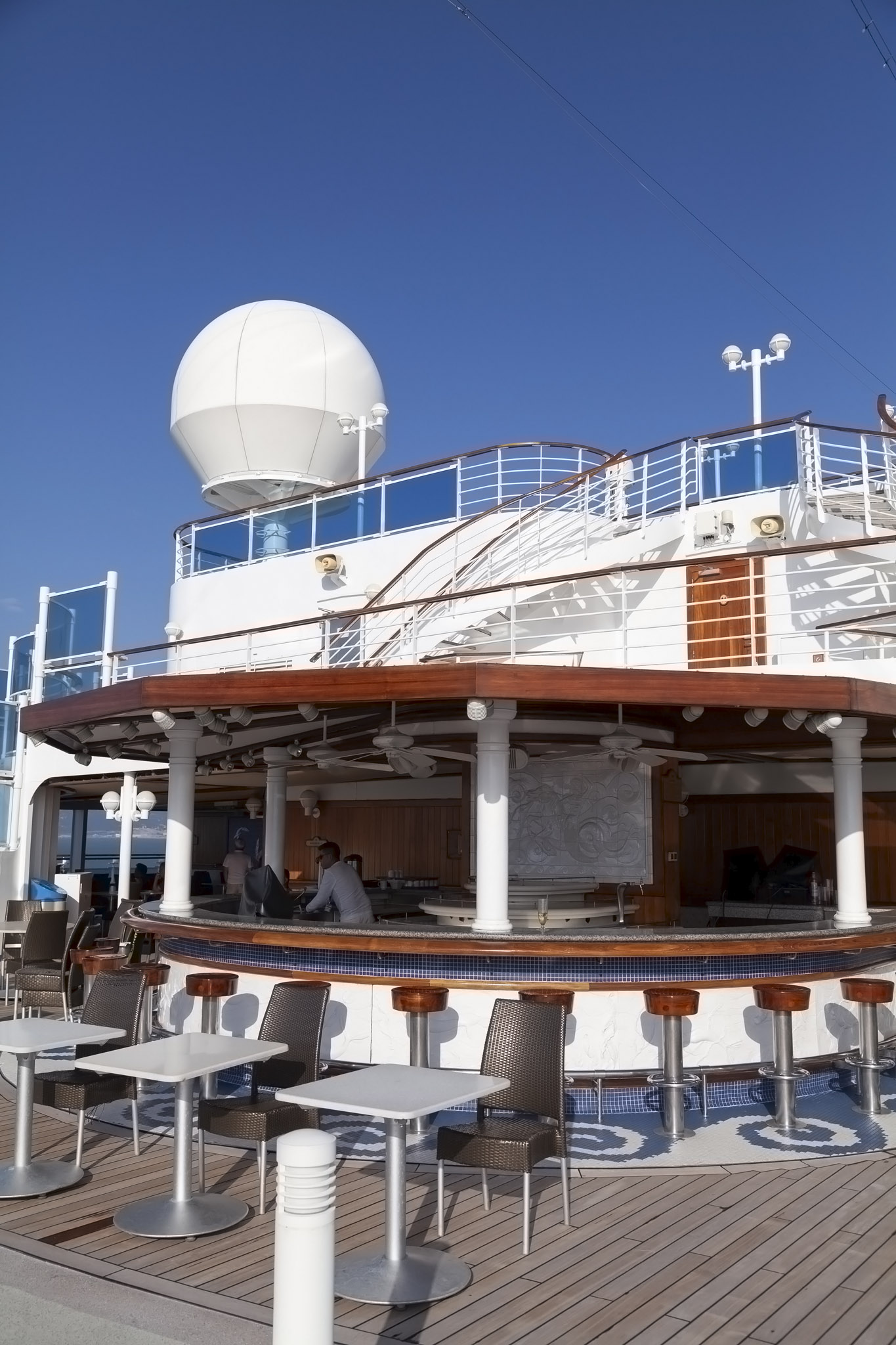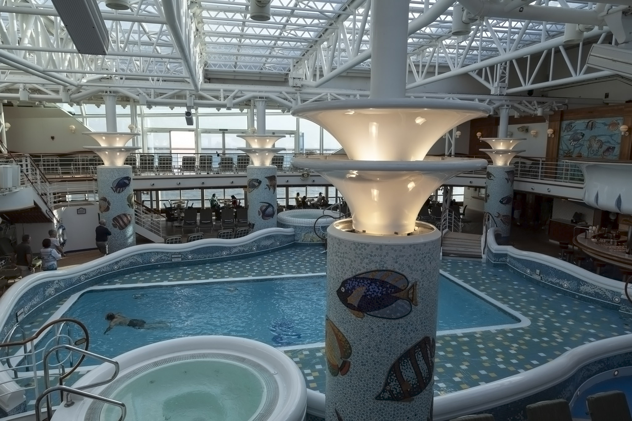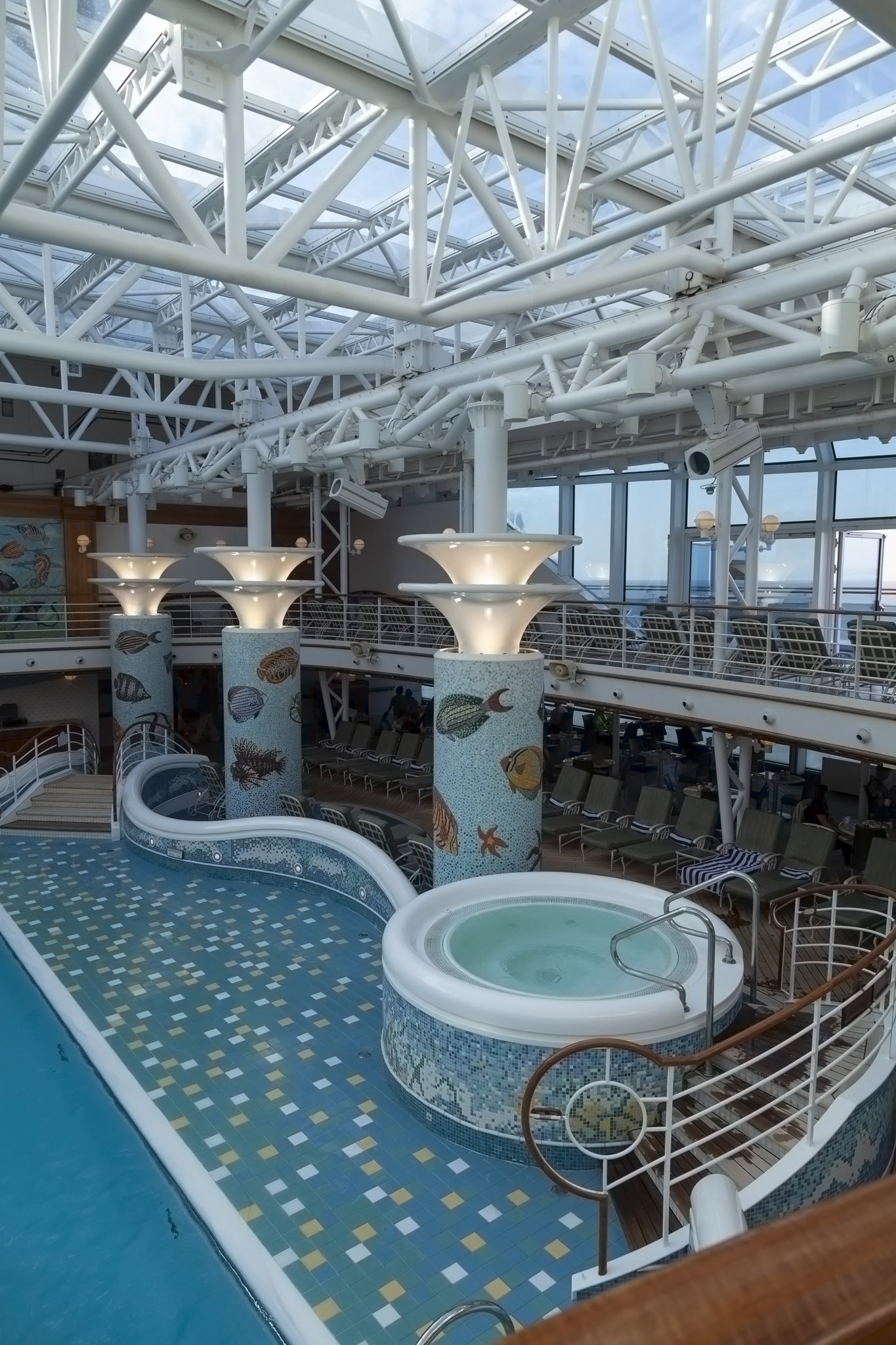 It wasn’t at all surprising to see the main swimming pool devoid of any people braving its frigid temperatures especially once we started to move from the open sea, passing Zhangzhou harbour on the port side and starting to follow the curve of Xiamen island clockwise. This had the effect of funnelling a pretty nippy north wind down the length of the ship which you’ll be able to hear in the video at the end of this post.