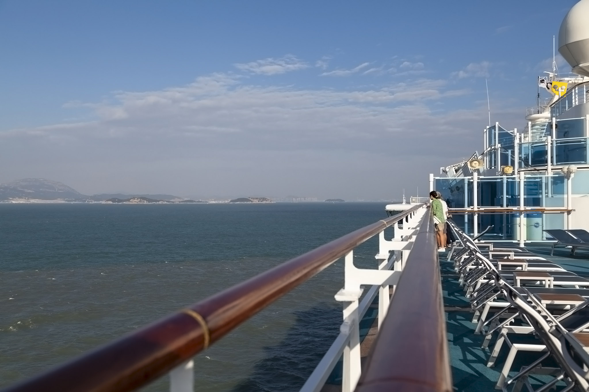 The next port of call was Xiamen in the Fujian province of China. Xiamen was a city we’d not heard anything about prior to booking the cruise and, indeed, didn’t really find out a whole lot about in the lead-up to it either. Arriving fairly early in the morning but still having trouble sleeping in because our body clocks weren’t adjusting very well to the initial long flight eastwards that had rapidly lost us hours followed by the cruising generally westwards that was now triggering time changes overnight and slowly gaining us hours, we had plenty of time to kill as we cruised towards the port. We had another wander around the ship, taking more photos, enjoying the warmth of the sunshine.