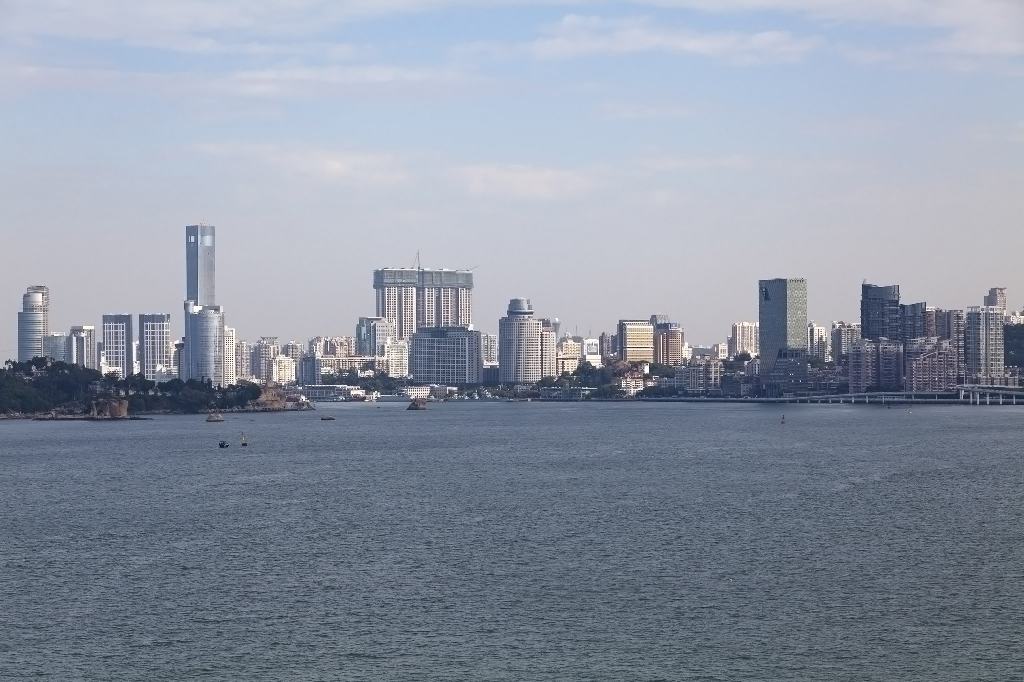 A pair of matching buildings were the most prominent sign of large construction as we cruised past the Xiagang residential district on our starboard side. When we’d been looking at maps of the city prior to our cruise this had been one area of interest on account of some interesting-sounding museums, historical and religious buildings, and even bars in close proximity. No tours or excursions went anywhere near here, though, and it was sufficiently far away and our time in the port was sufficiently limited that we weren’t quite confident enough we could get to it, do it justice, and get back to the ship. Were we to return and have more time in Xiamen this is part of the city that would definitely deserve more of a look around.