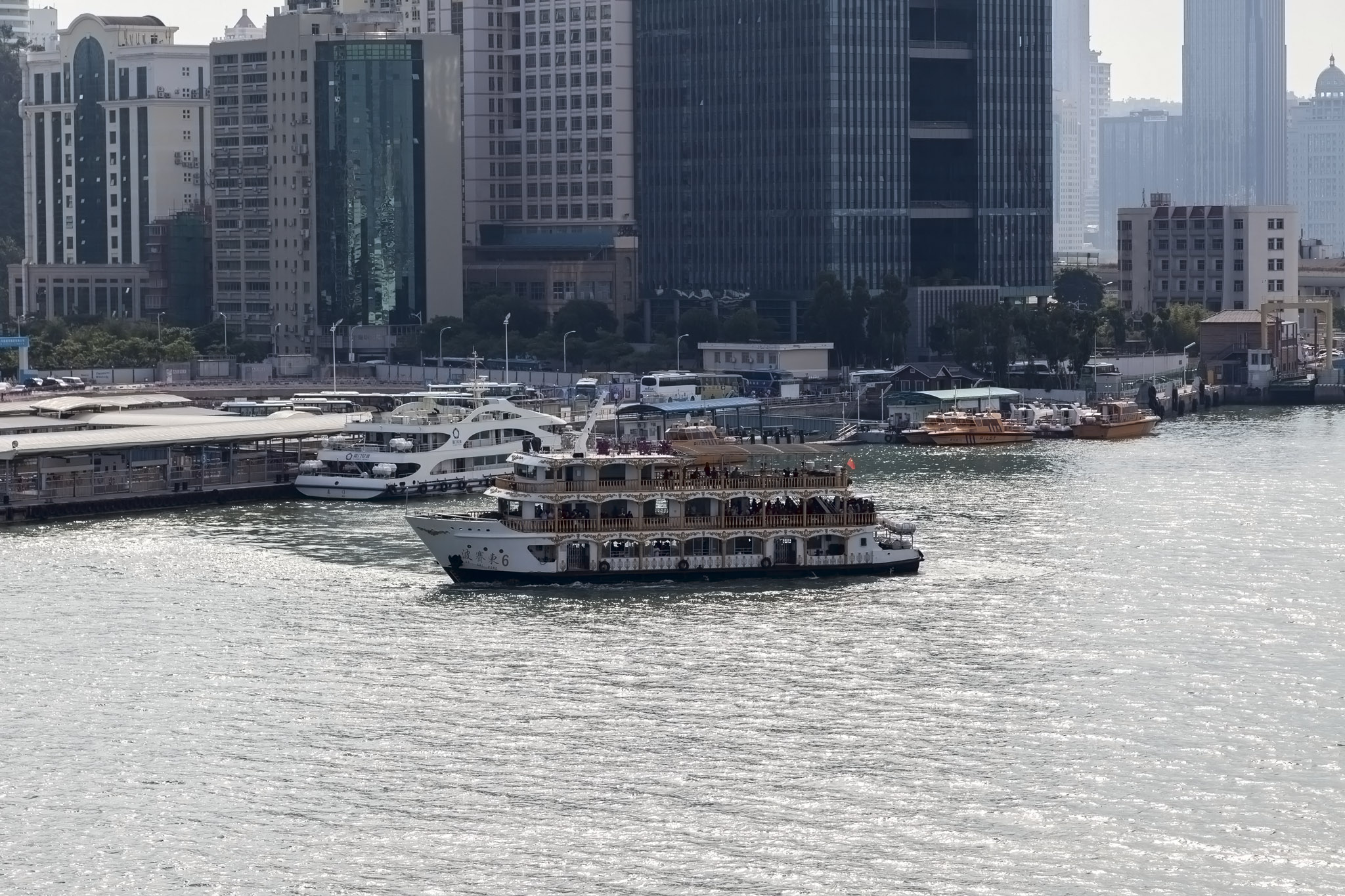 From there it was a slow but steady approach to Xiamen’s international cruise terminal taking us closer to the bulk of the modern buildings of the city’s Dongdu district.