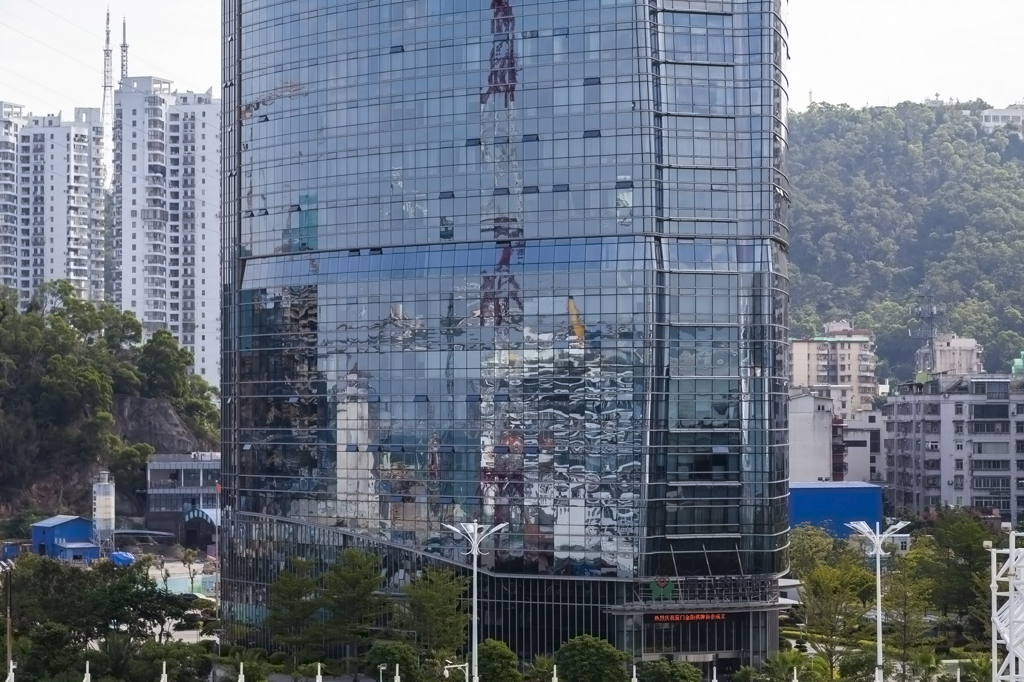 We decided to stay out on deck so that we could see any interesting elements on either the mainland or island rather than limiting ourselves to just what was visible from our balcony and we’re glad we did because there was some very odd-looking architecture on the port side, the Haicang district.