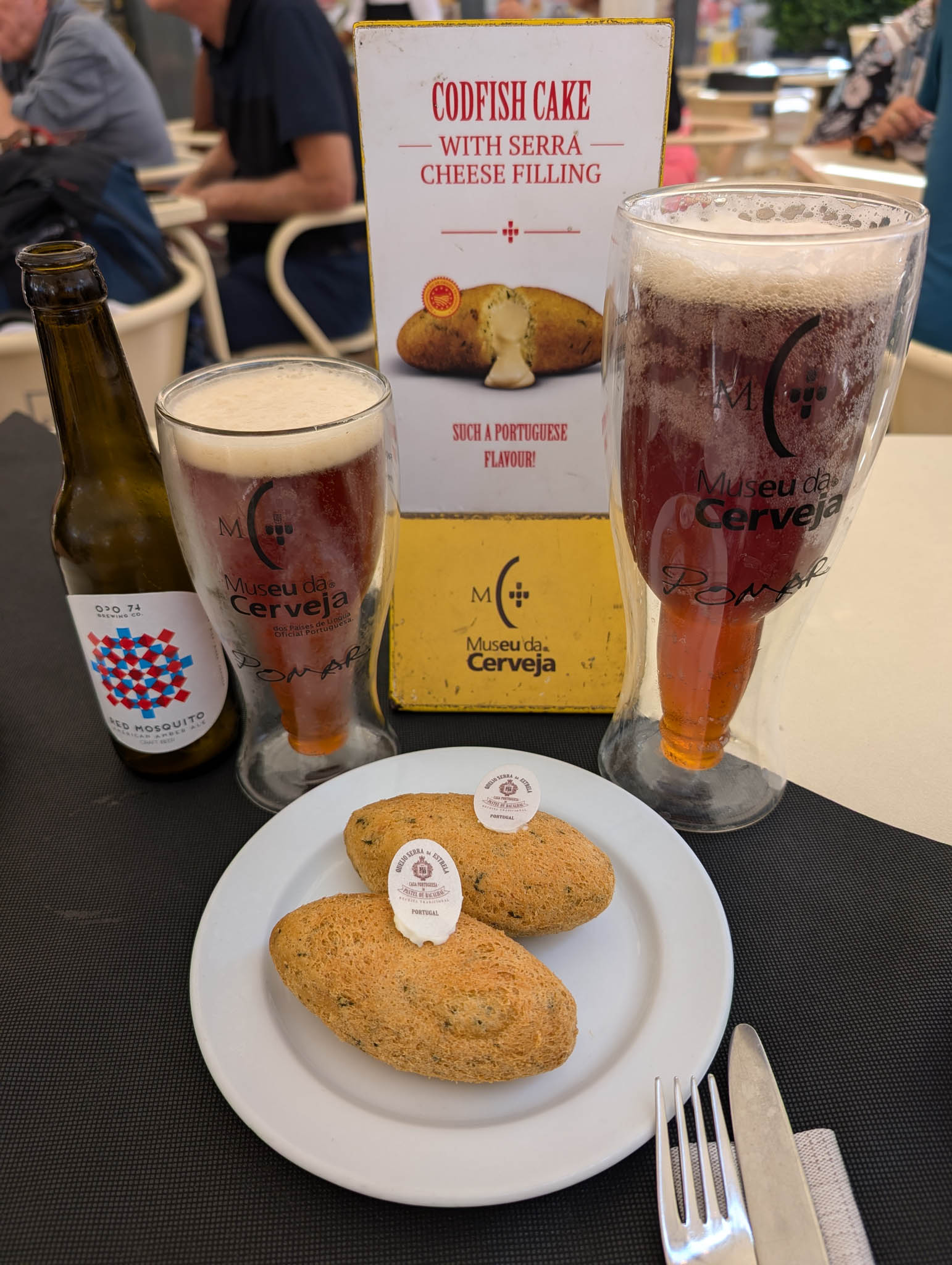 We were there for the beer, and we had several pints. They were very nice. And we also had codfish cake because sometimes we can be sensible. It’s apparently a traditional Portuguese thing. And very nice it was too.