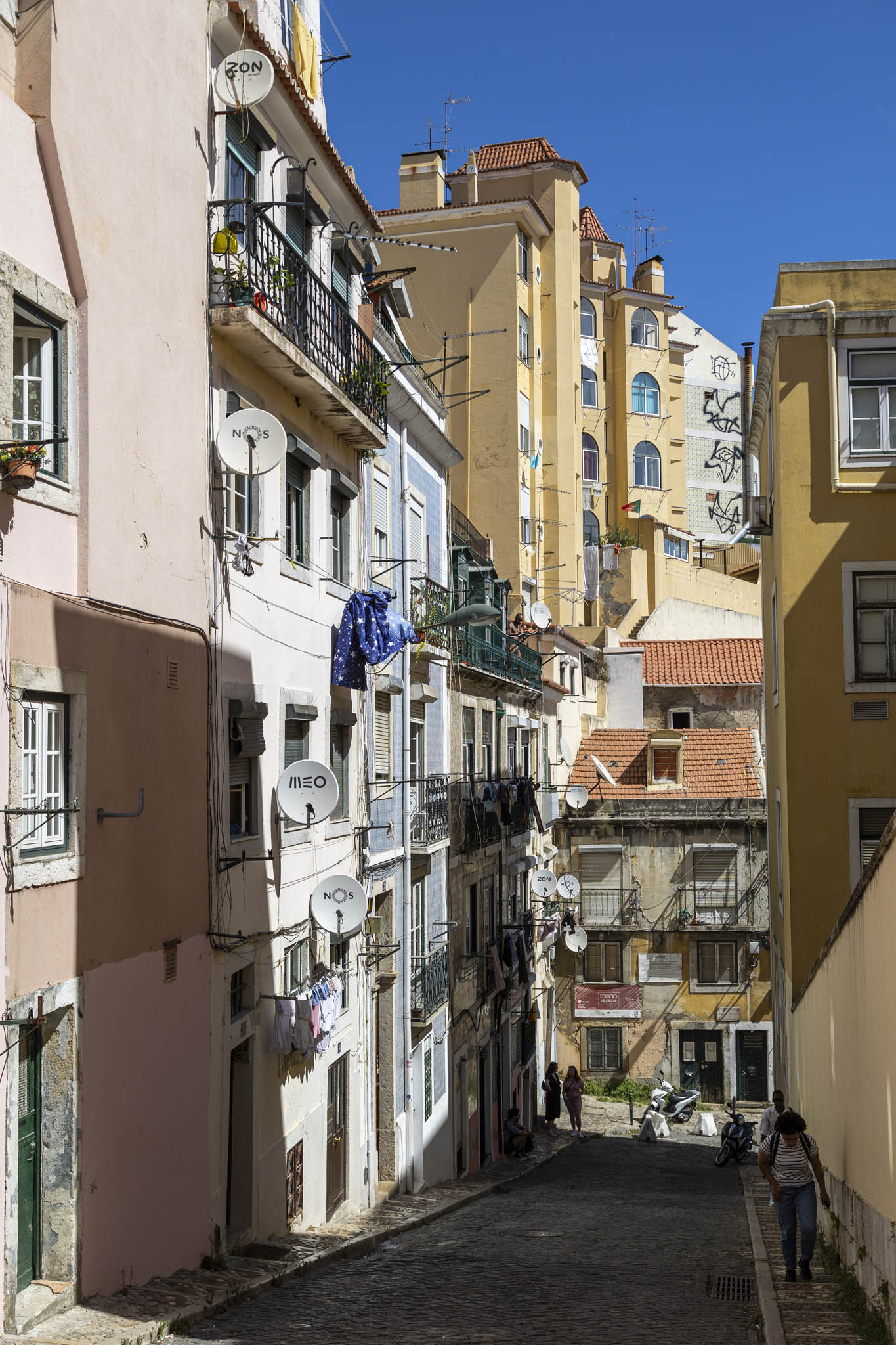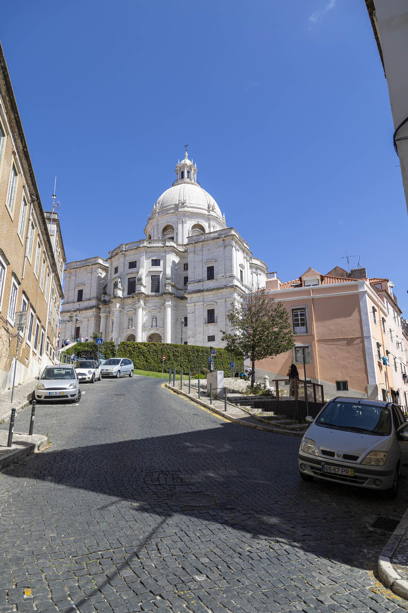 We’d had a lovely visit to the National Pantheon (once we’d got inside) and now decided we’d like to get something to drink before the late afternoon departure from the city, and we actually had a target in mind for this. First off we needed to get down from the hilly part of Lisbon’s Alfama district and that meant braving those terrifying tiled pavements again. In fact, thanks to there being very little traffic around we found it far safer to walk down the road instead.