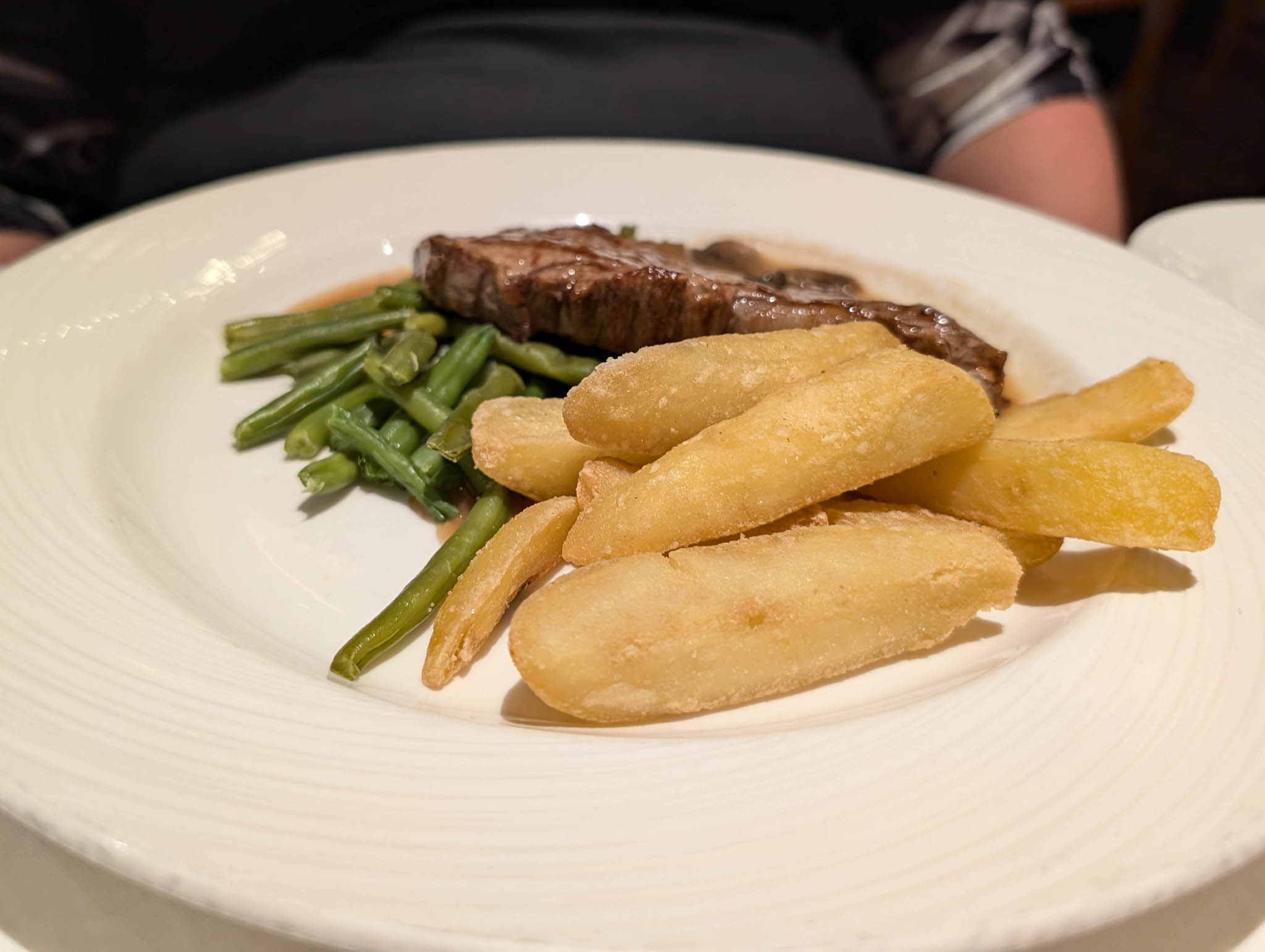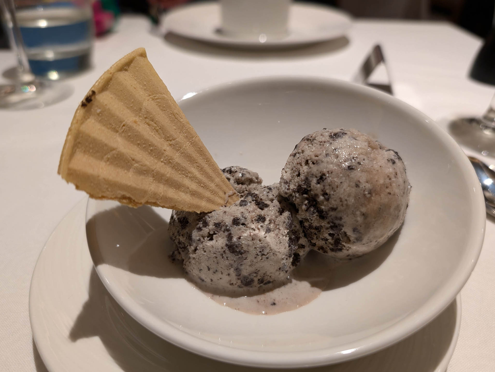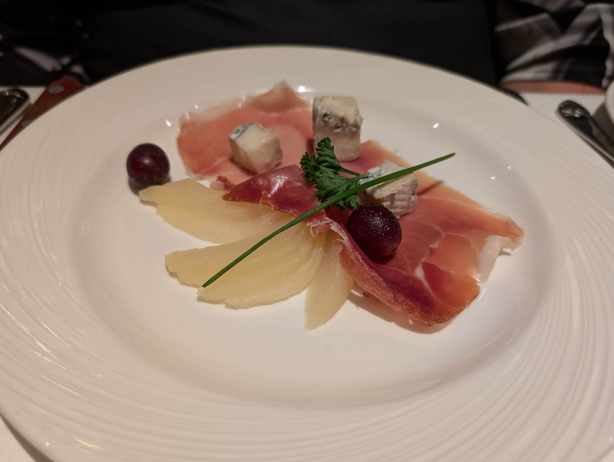 The evening aboard Ventura as we headed northwards was much like any other, involving food and drink and musical entertainment. The dinner we had in the main dining room that evening is below for fans of photos of plates of food.