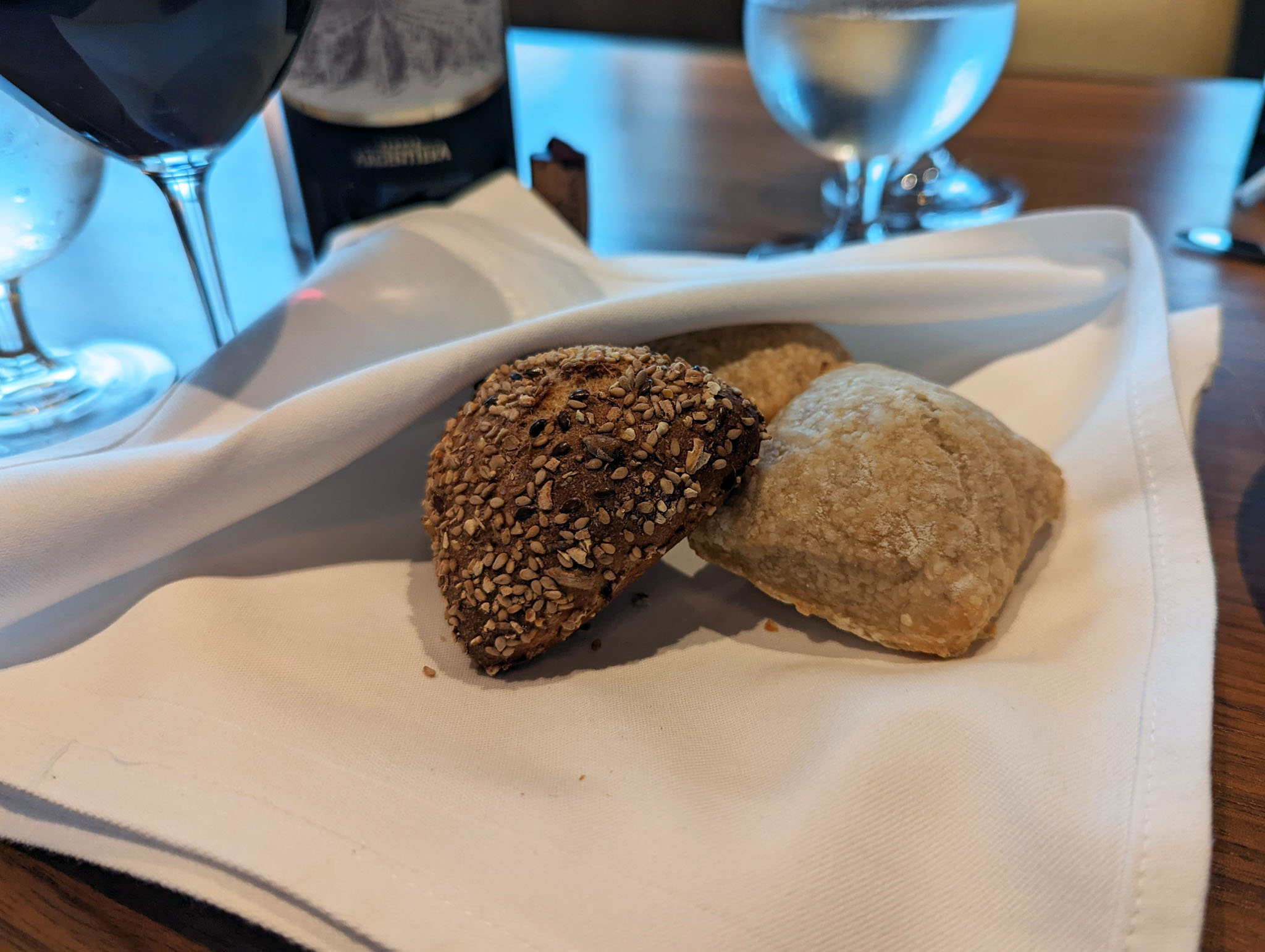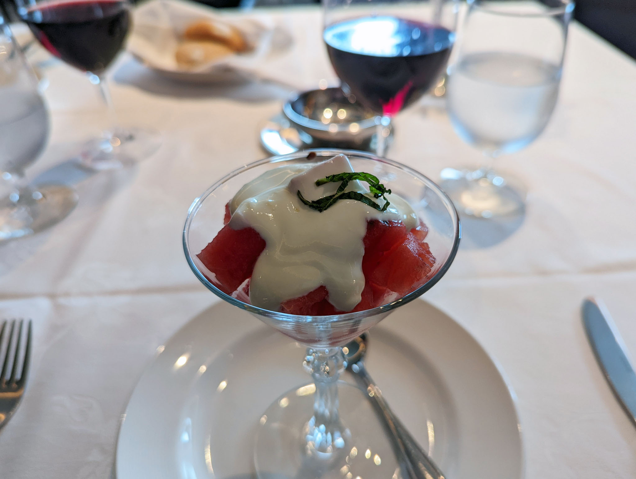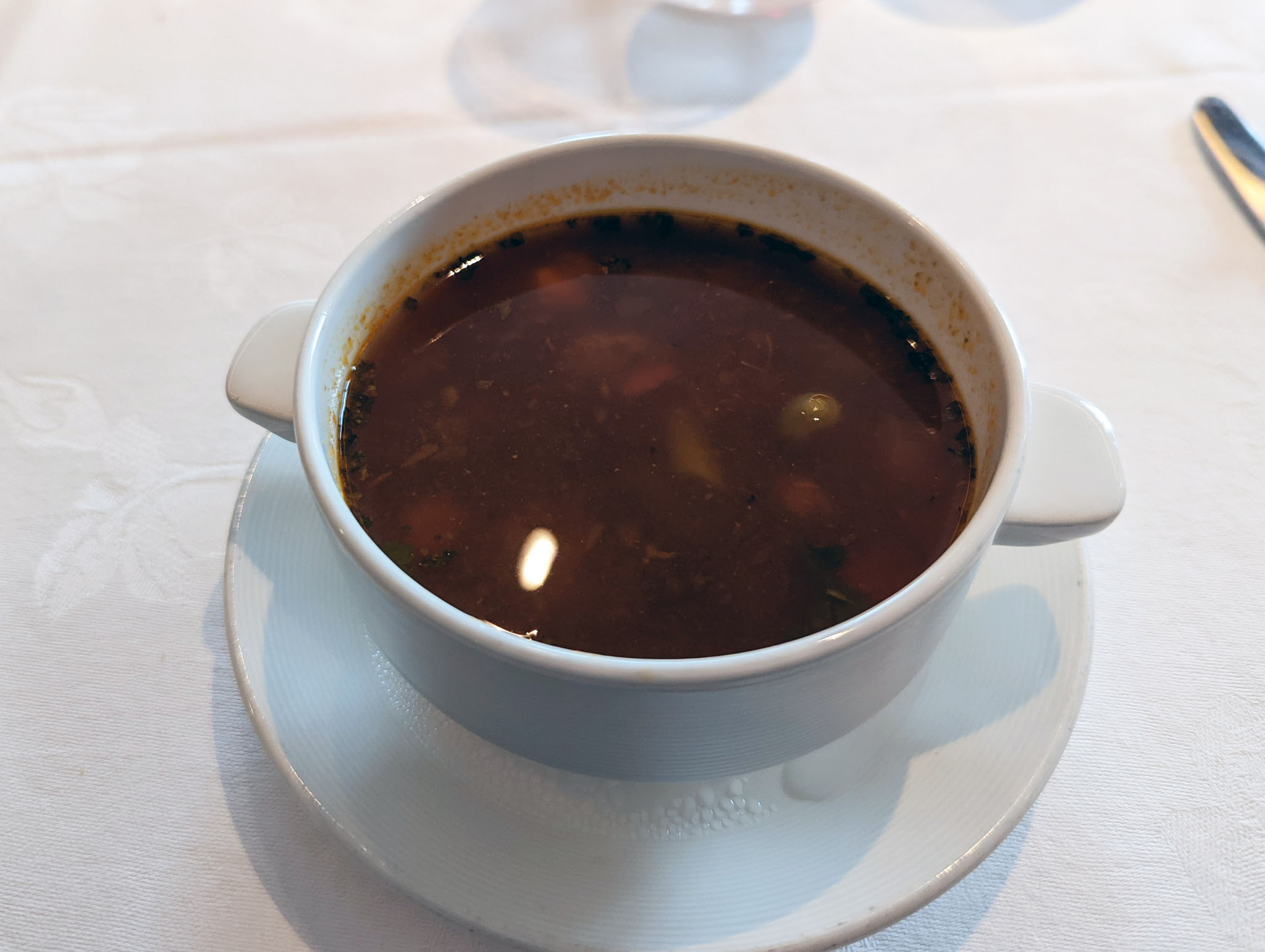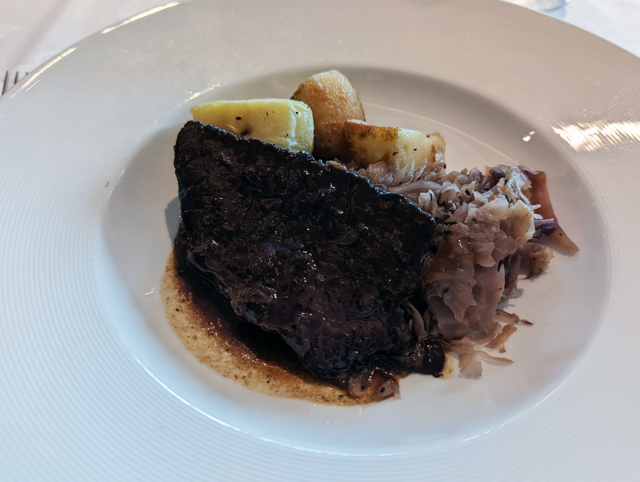 Now here are examples of the food we ate in the main dining room on Sky Princess (that’s the MDR to regular cruisers) and not only does it look great (to me), but it was great (to me). Don’t let that persuade you one way or the other, though, because you won’t be having the same chefs on the same ship on the same day, cooking in the same way, and presenting you with the same food as me unless you have access to one of those new-fangled personal temporal incursion devices that are all the rage. If they’re not all the rage when you’re reading this then oops, someone went and changed something in the past again.