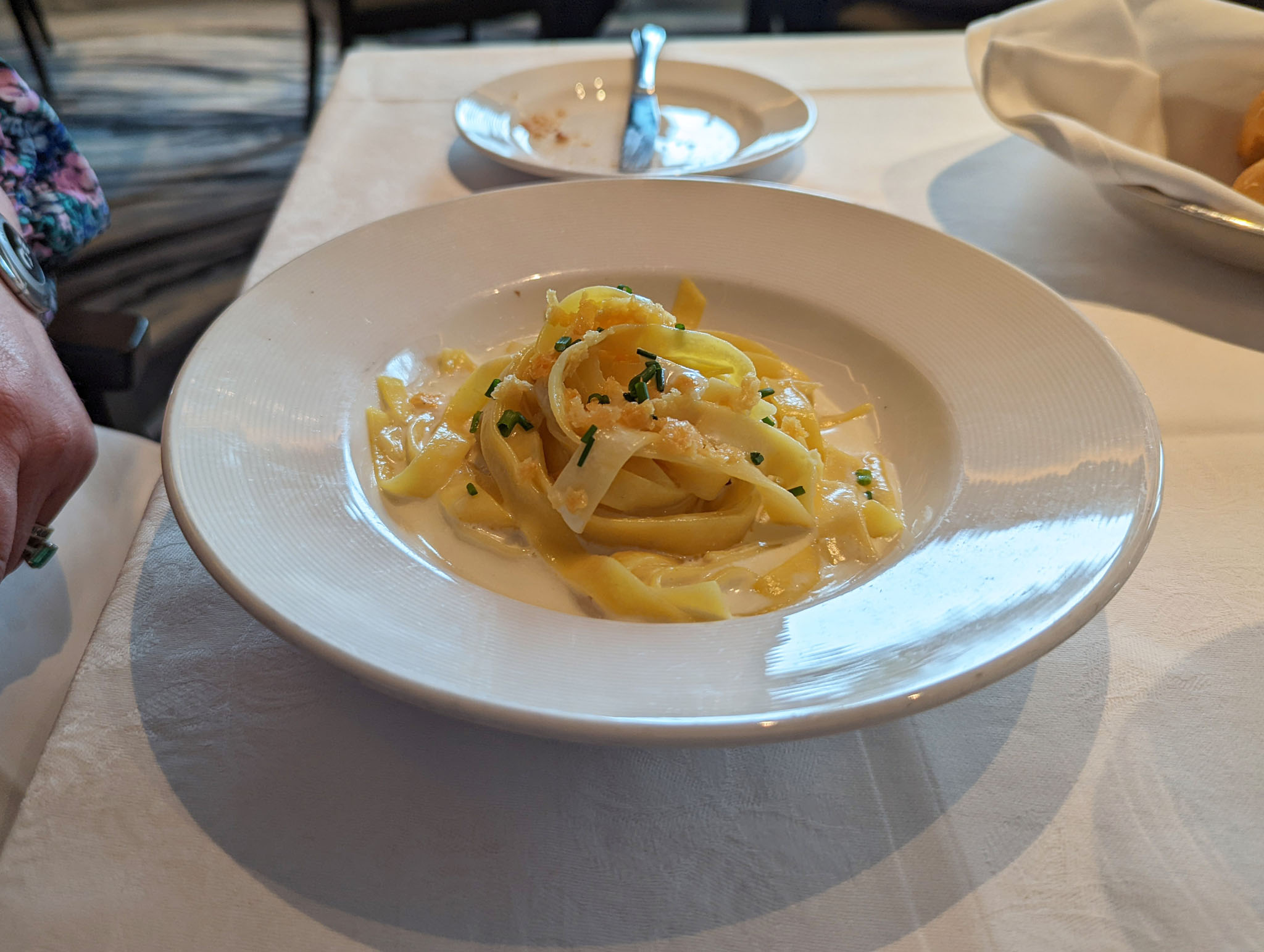 The food in the main dining room was of great quality on Sky Princess but that didn’t stop us splashing out on some speciality dining in Sabatini’s Italian Trattoria. It’s because we like Sabatini’s. We know what we’re getting here in general.