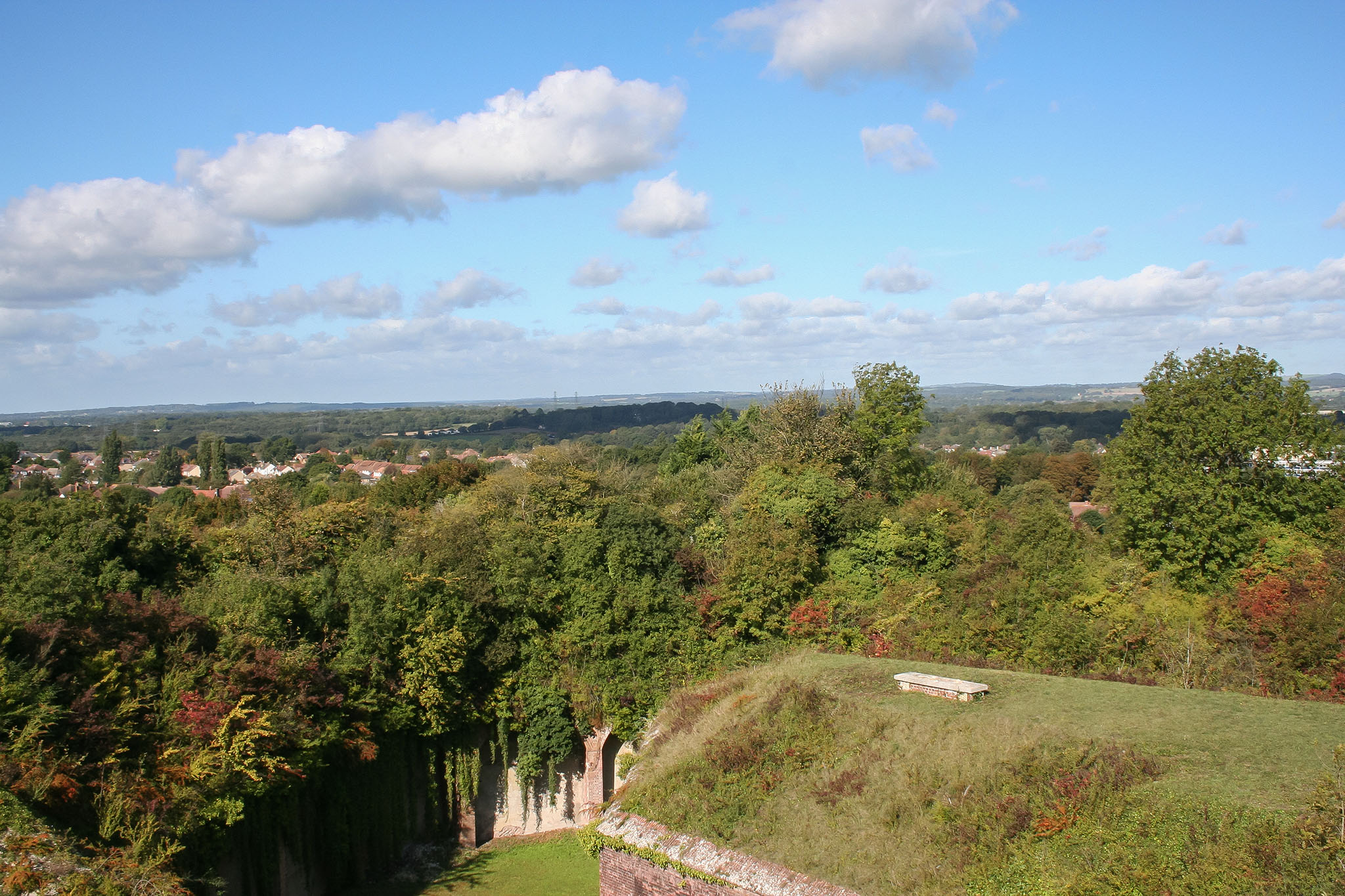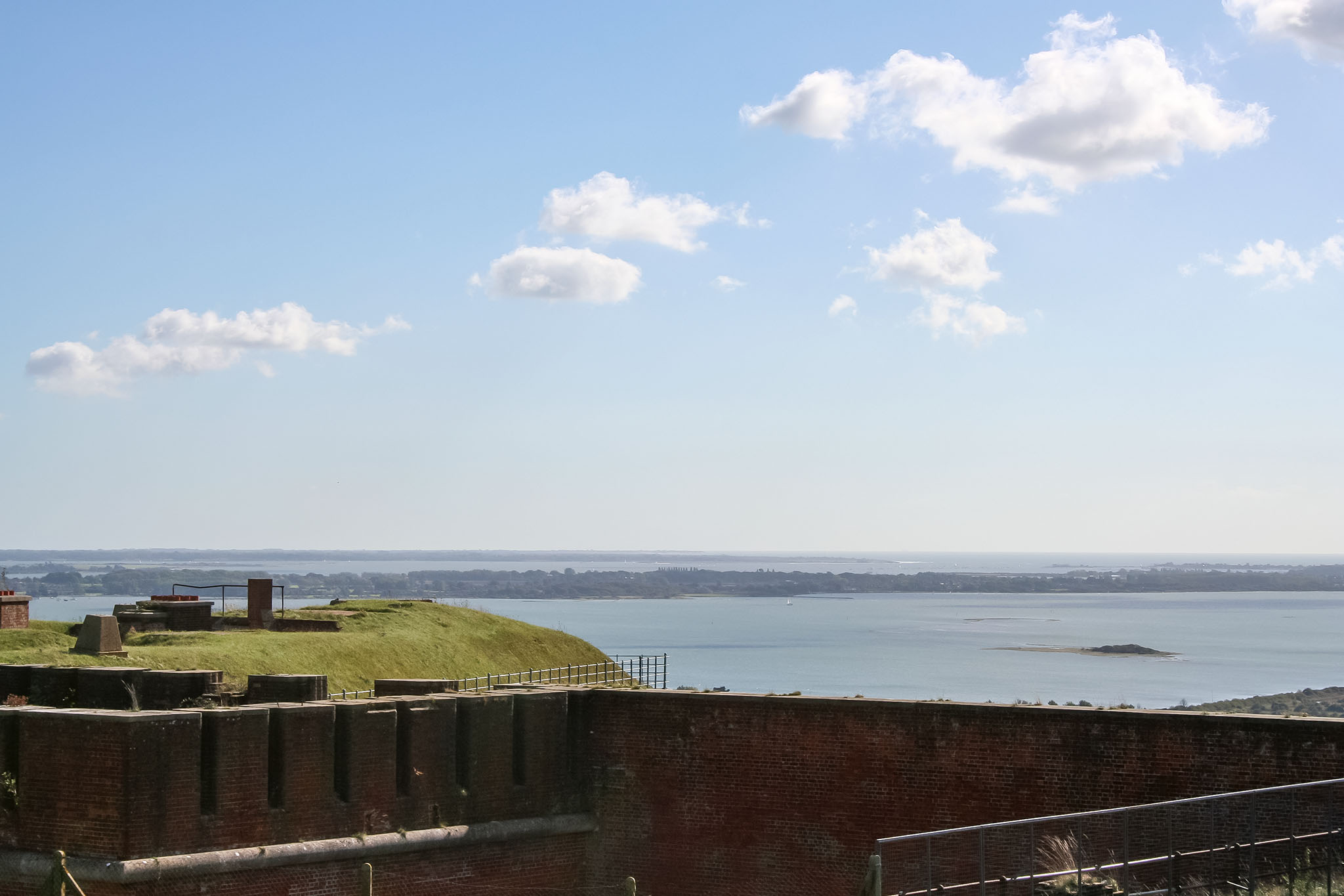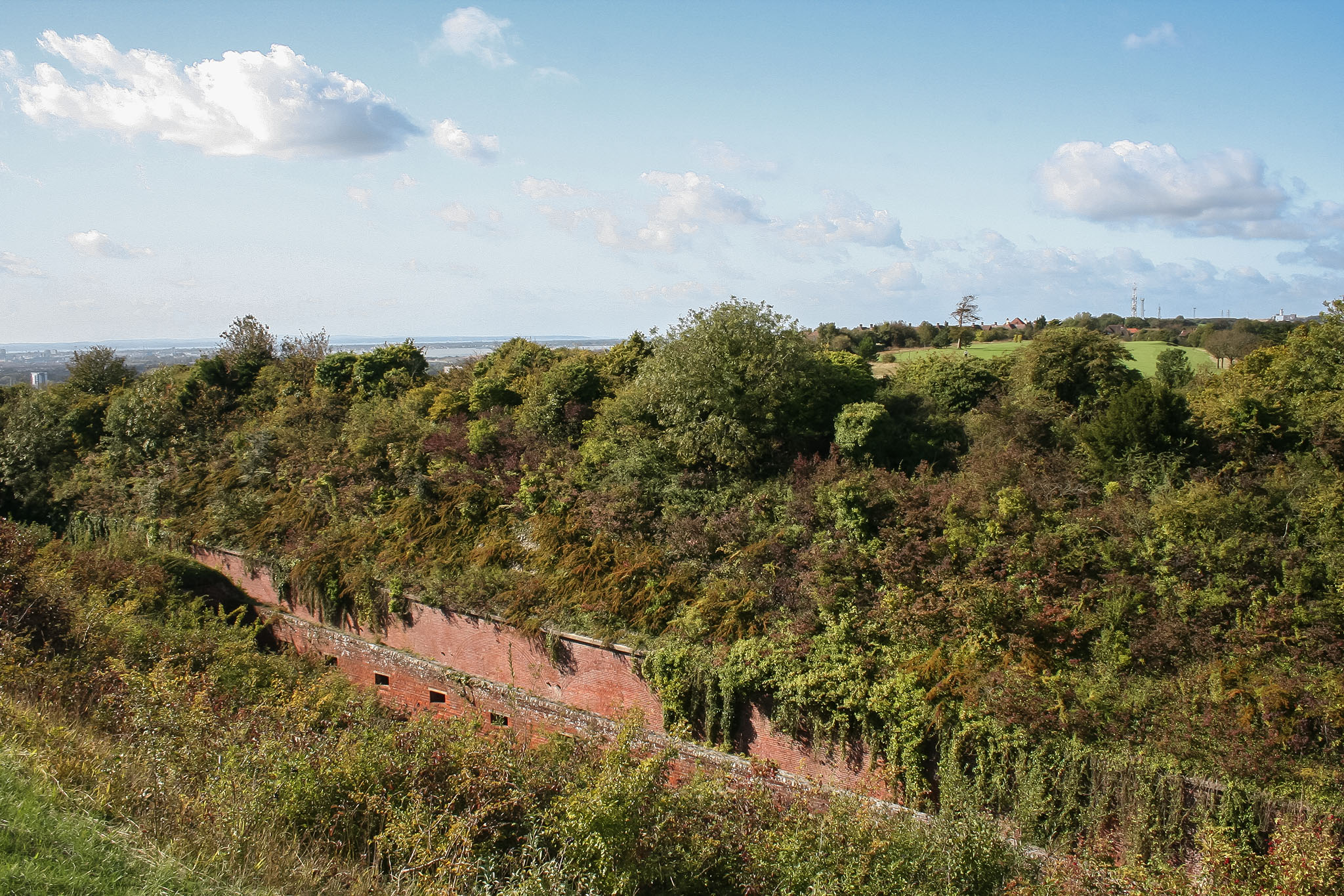 The use of Portsmouth as a naval port, however, has also necessitated man-made defences to further protect the city in the past, and in the latter half of the nineteenth century the Palmerston Forts were constructed. The forts were never used as intended as the threat from France dissipated soon after the ring of defensive fortifications was completed but anti-aircraft emplacements were added during World War II and some of the forts were given over to secure bunkers during the Cold War. The eastmost of the forts, Fort Purbrook, is often used as a location for craft fairs these days and it was to one of these that we went in October 2006 during which the following photos were taken looking in all directions from the brick walls.