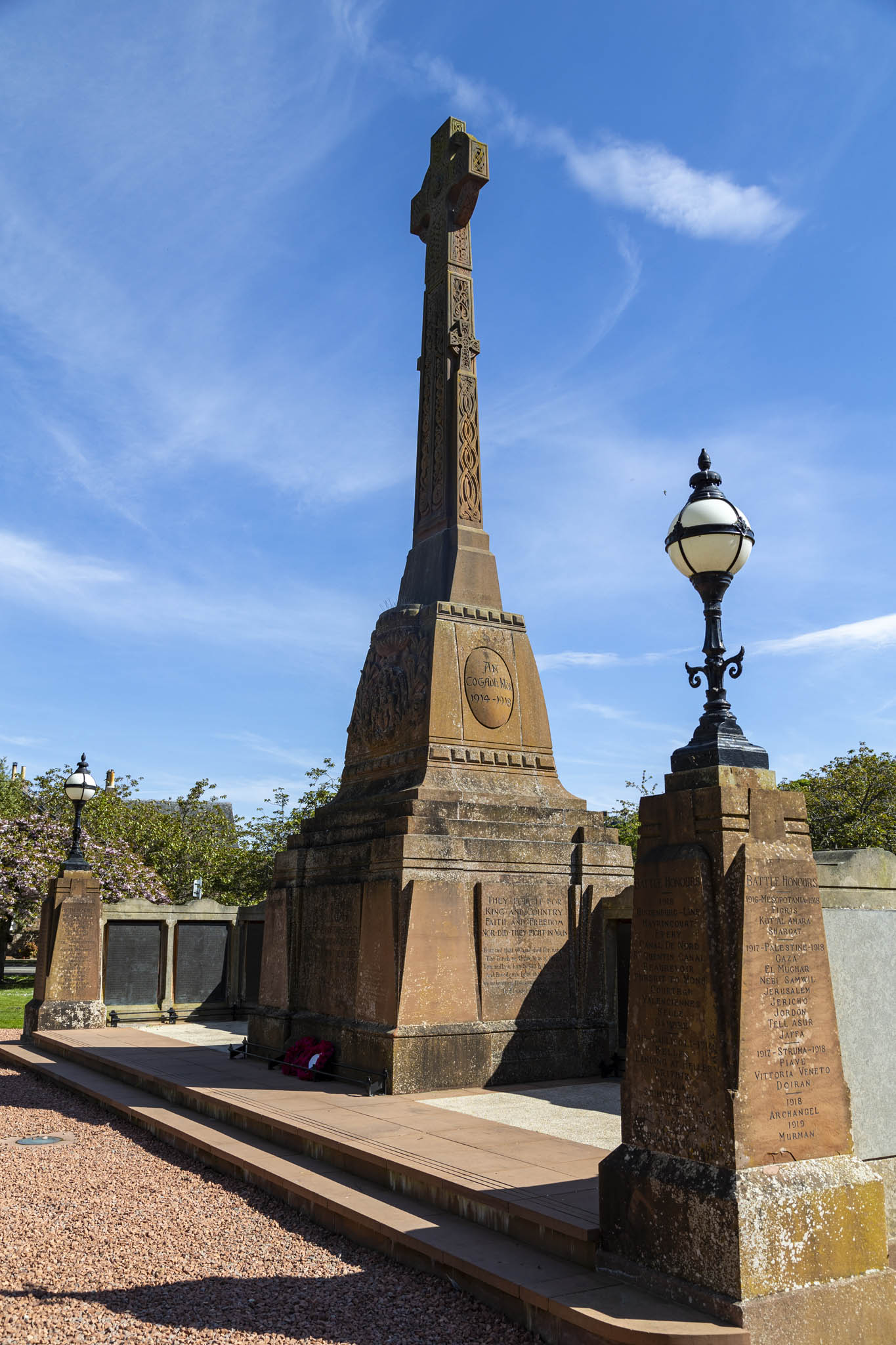 A little further along the riverside walk we reached the bronze and red and yellow sandstone war memorial, erected originally in 1922 to commemorate those lost in World War I but later rededicated to include those from later conflicts.
