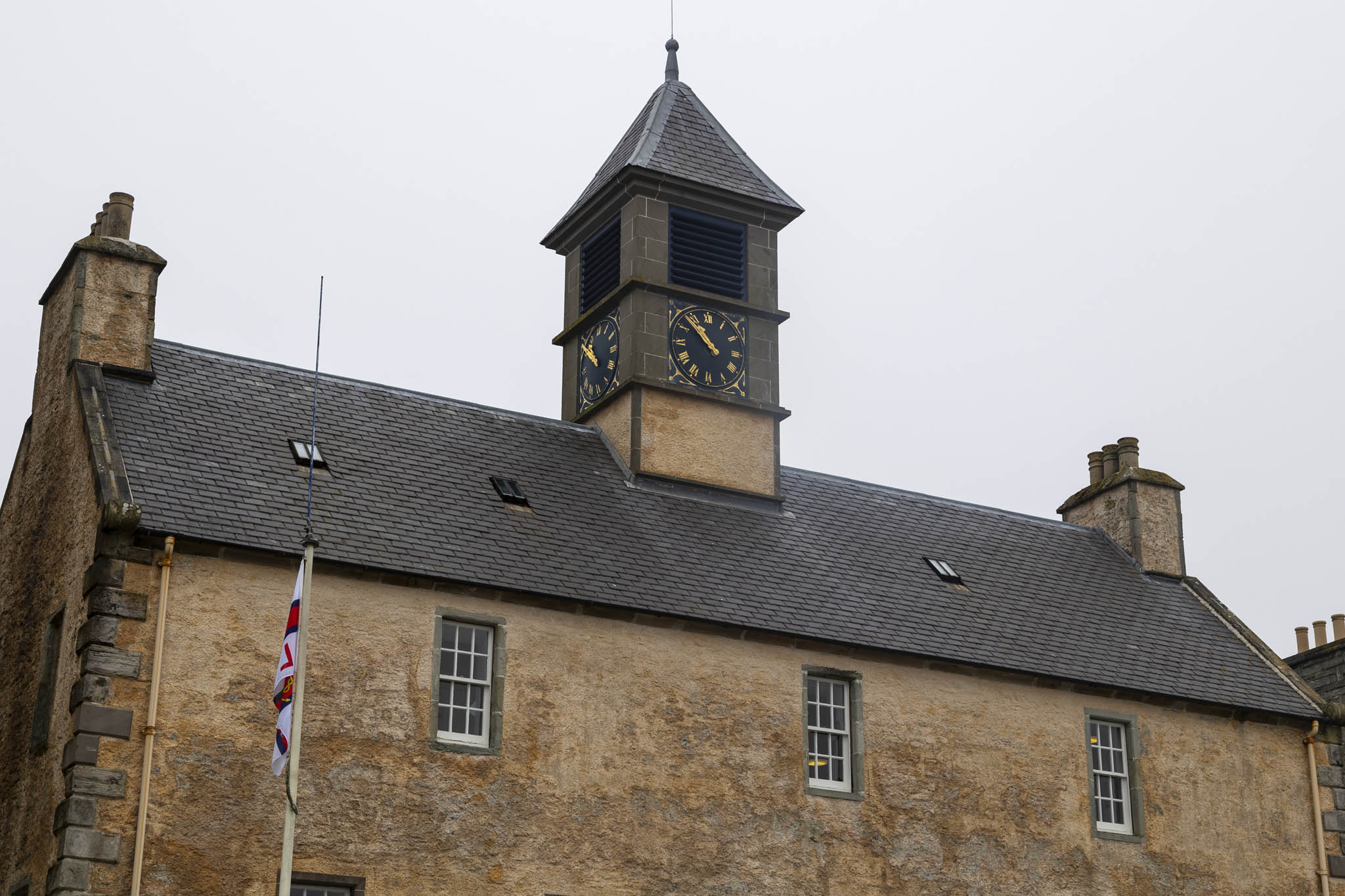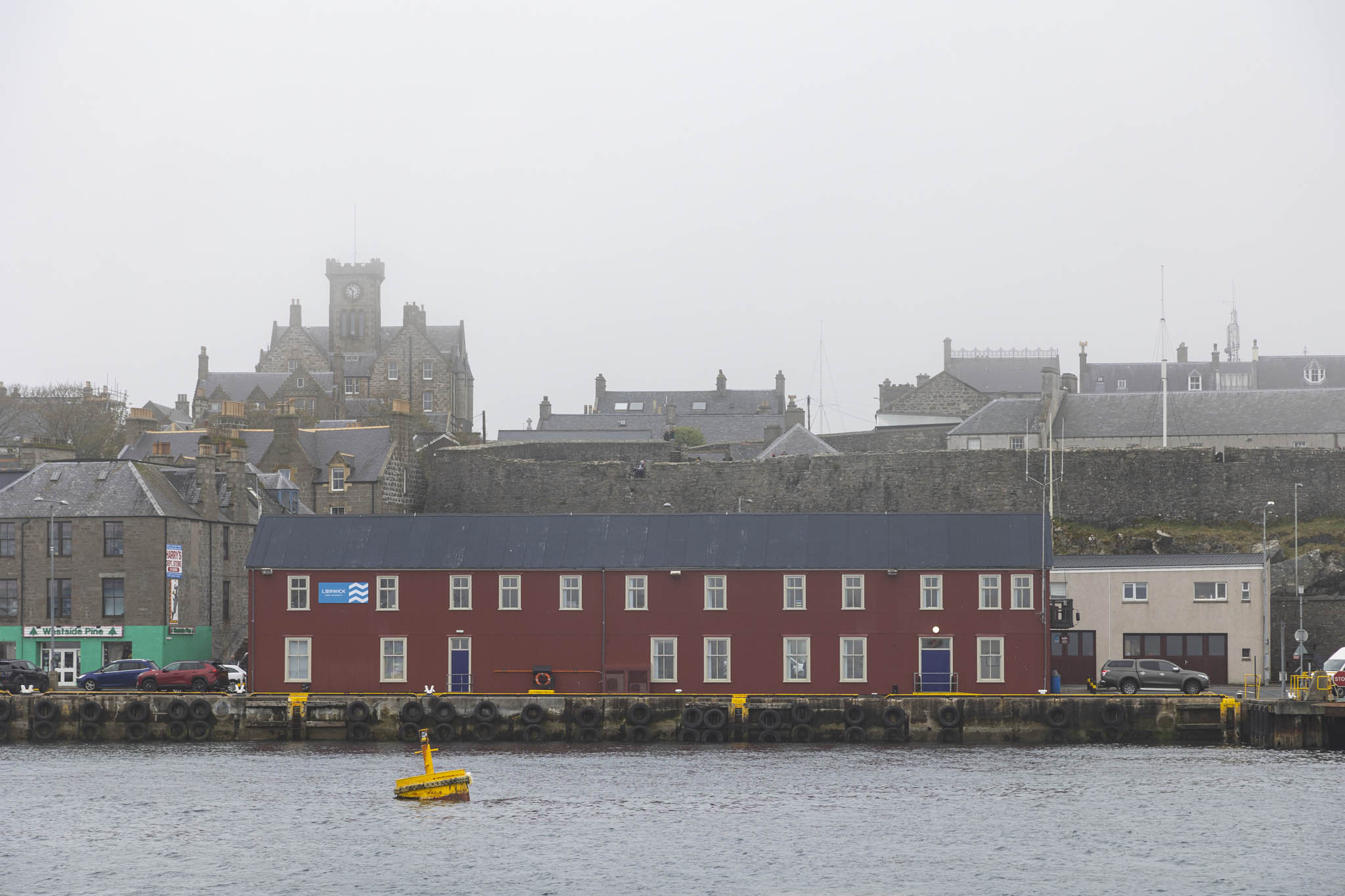 We awoke to thick fog around Lerwick. This was such a joy for us. Had the boat not developed a fault then we’d likely have been out on the cold water for several hours with visibility in the tens of metres. Instead, we were greeted by some atmospheric views of the town before we needed to tender ashore.