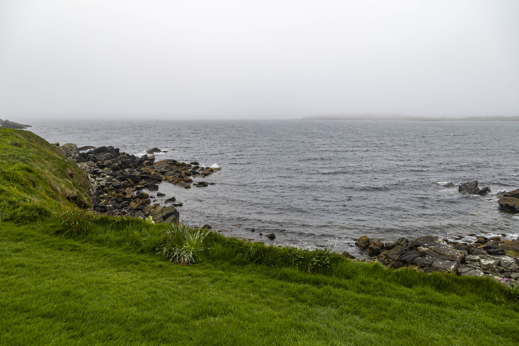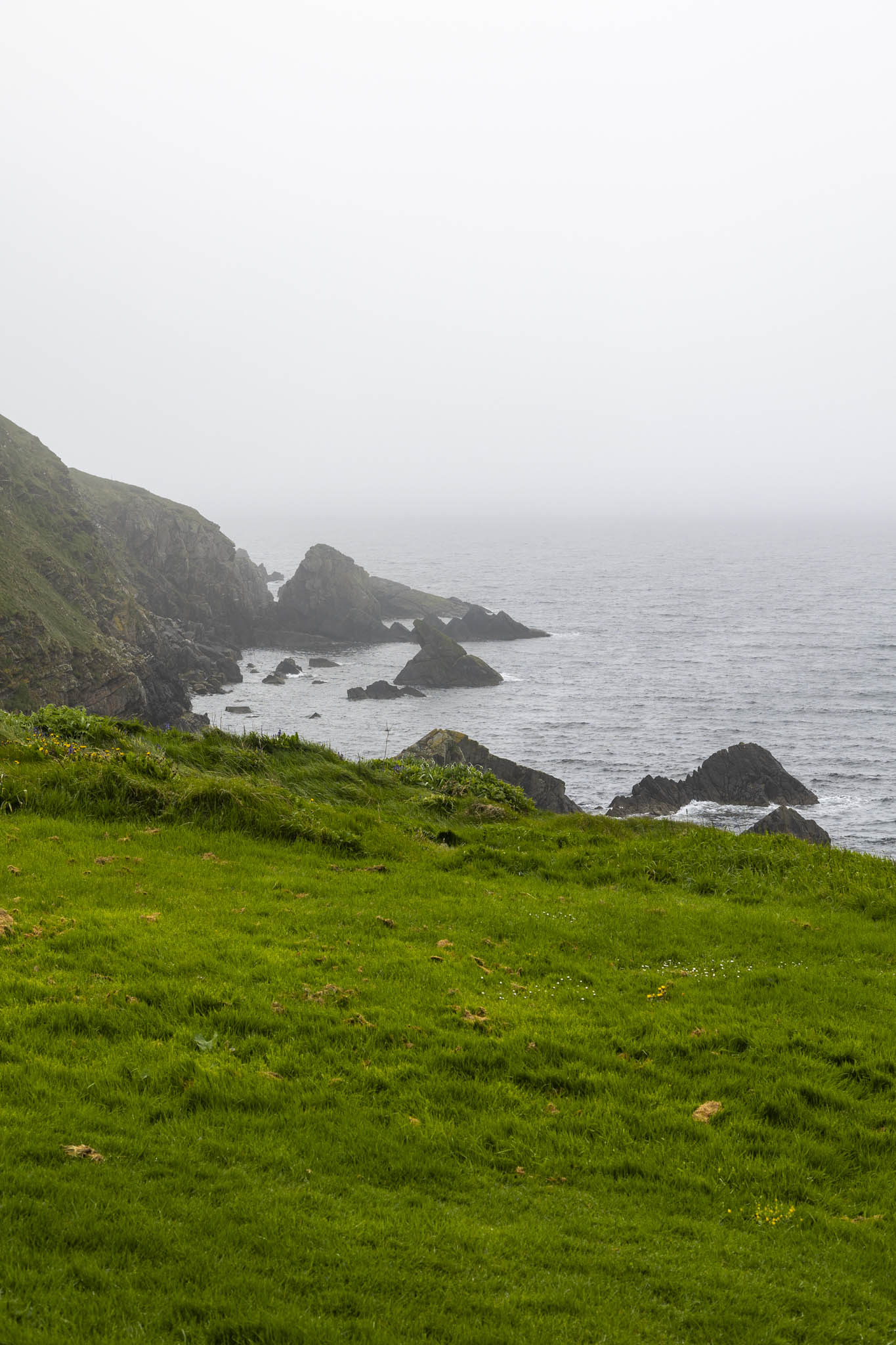 Suitably recovered we headed on our way, now hugging the coastline in a westerly direction. The views were moody and the going was far more level now making for a far more pleasant stroll. This coastline is known as Da Sletts.