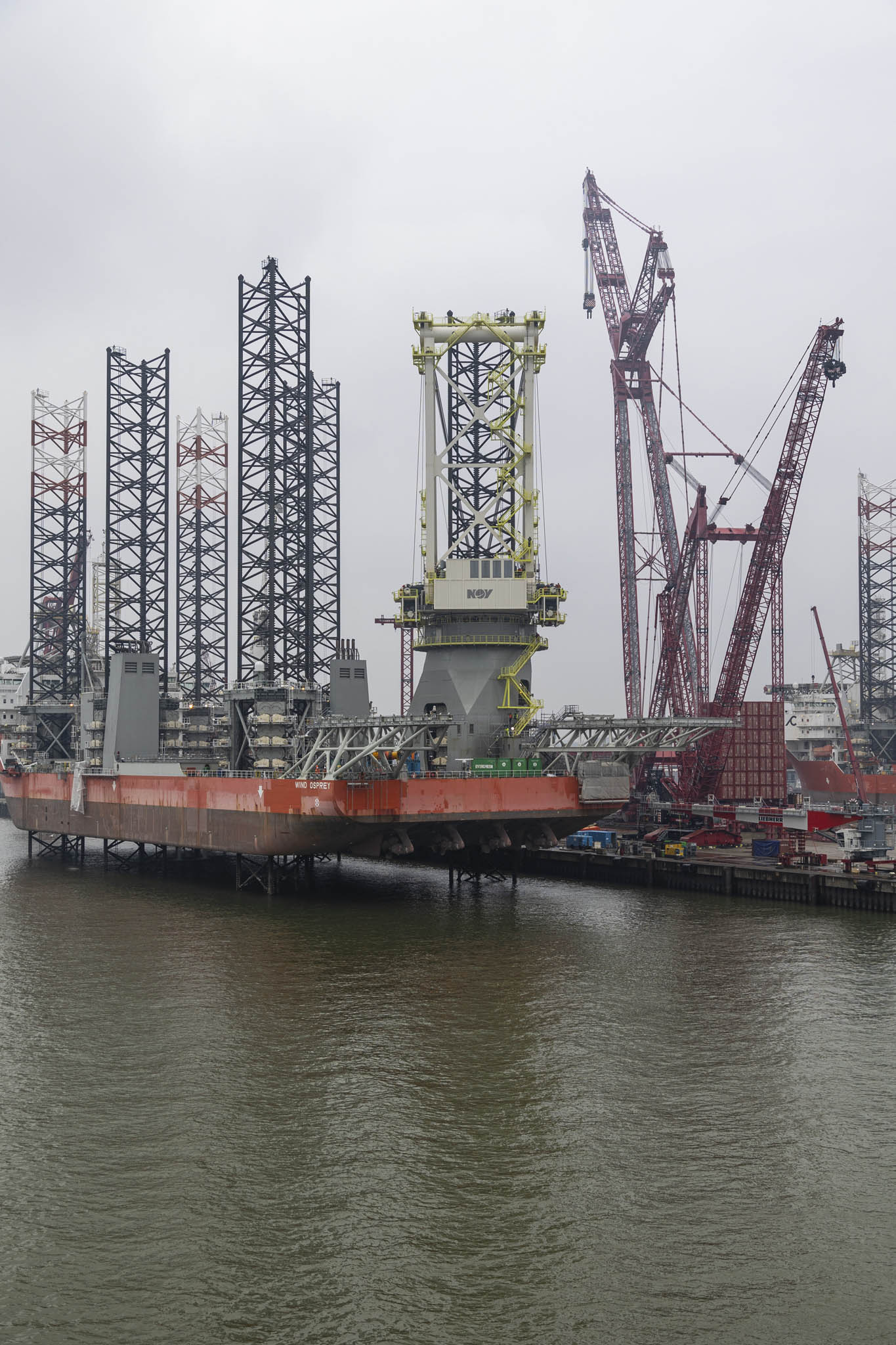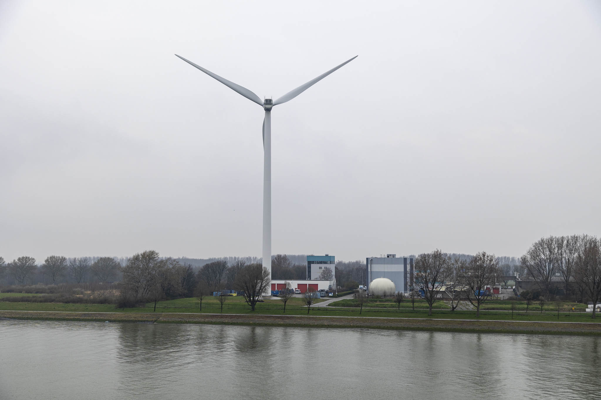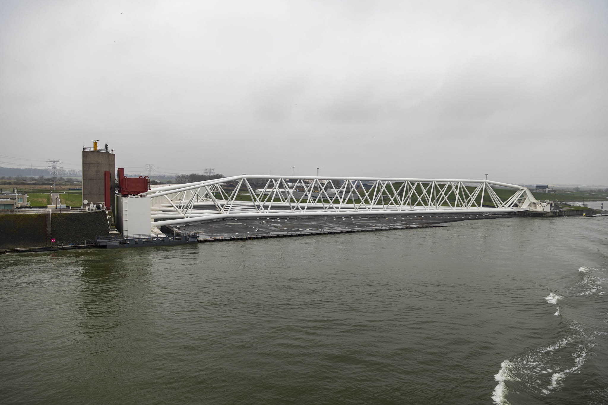 The white bridge-like structure in the photo below is one of a matching pair of storm surge barriers on either side of the Nieuwe Maas.