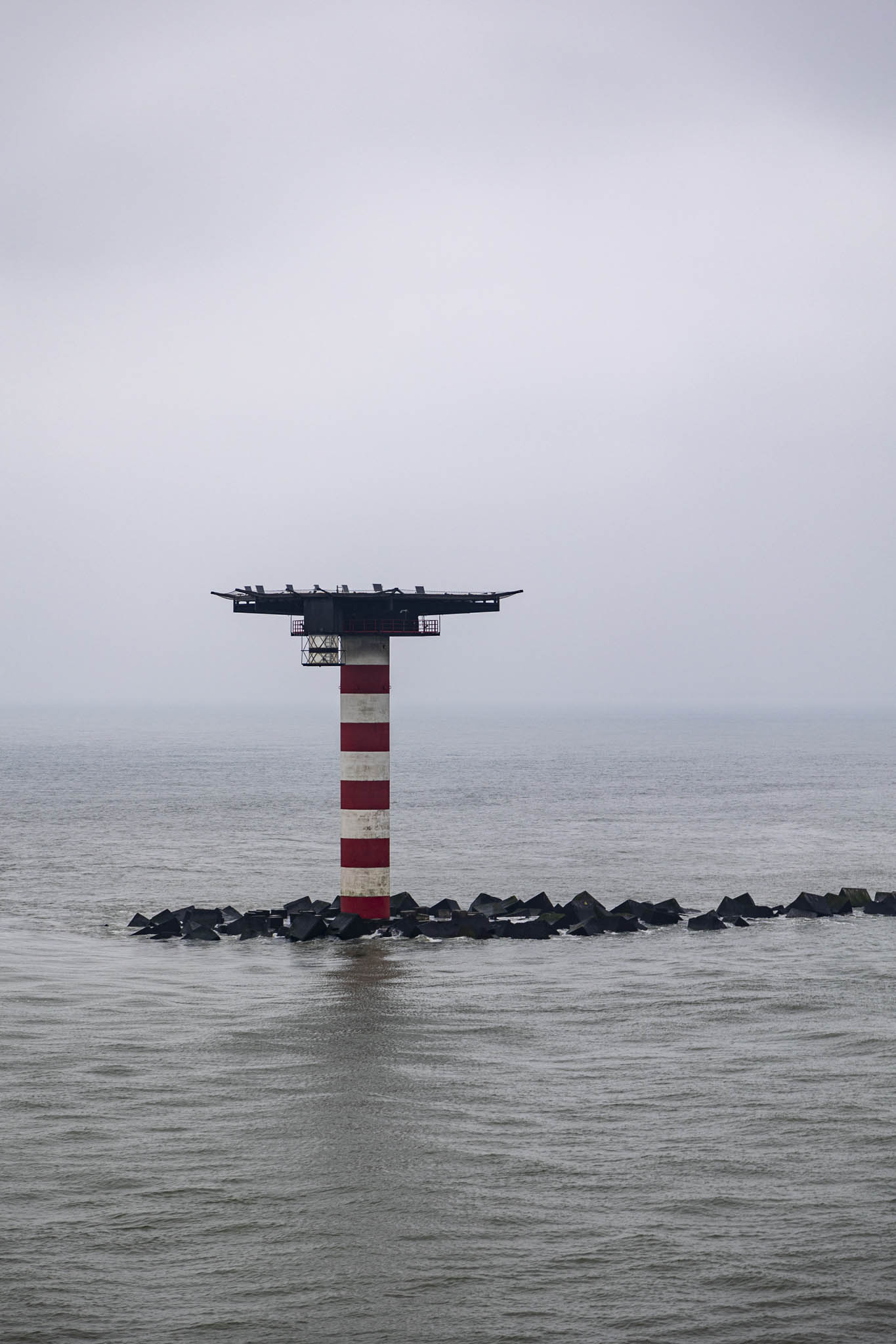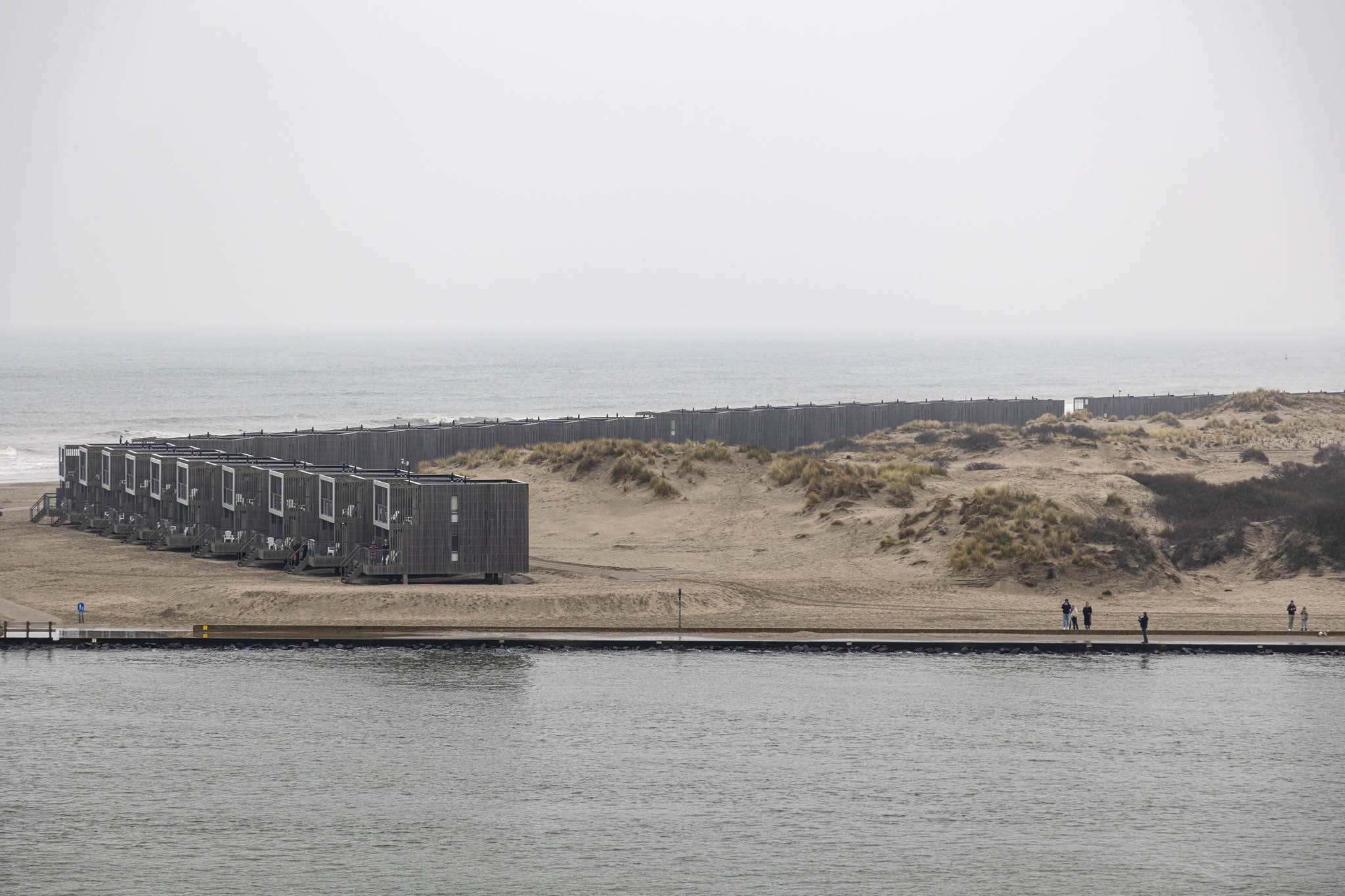 The cuboid buildings on the sands at the exit to the North Sea which look a little bit like they might have been used in World War II as defensive fortifications are actually beach villas. Cruising past them in March probably didn’t present them in their best light.
