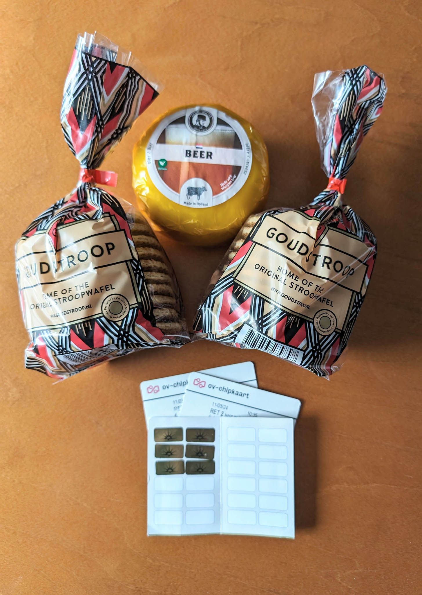 We picked up some beer cheese (for my wife) and some stroopwafel (for us and for my in-laws), with the latter being something we always bring back from trips to the Netherlands now. You can also see below our train tickets and the cruise prize book with winning stickers in it that we’d be able to exchange for a gift later in the day (a leather effect notebook), and if there’s a reason that I placed them all together for a photo then that reason is now lost in the mists of time.