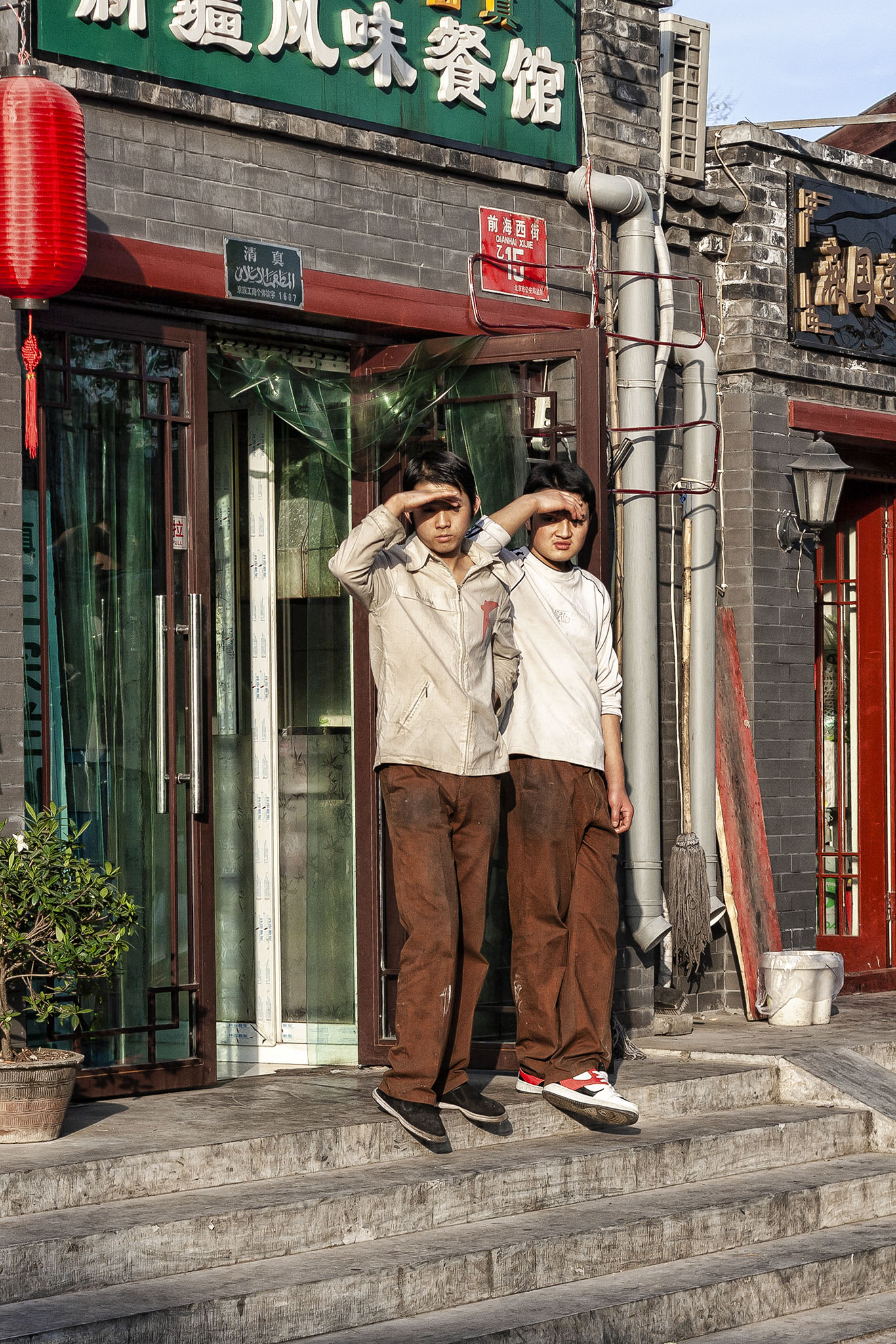 As explained in that post, this was taken at the conclusion of our trip to the old area of the Chinese capital, as our pedicab driver began to pedal us back towards the bus that would take us back to the hotel. It was late evening and the sun was low in the sky behind us. Two employees of the building outside which they stood – we assume it was a café but don’t know for certain – shielded their eyes from the glare of the sun, and in their similar (not not quite uniform) clothing they almost appeared to be military of some fashion, saluting us. I mean, sure, I’d like to think we’re important too but we’re not that important.