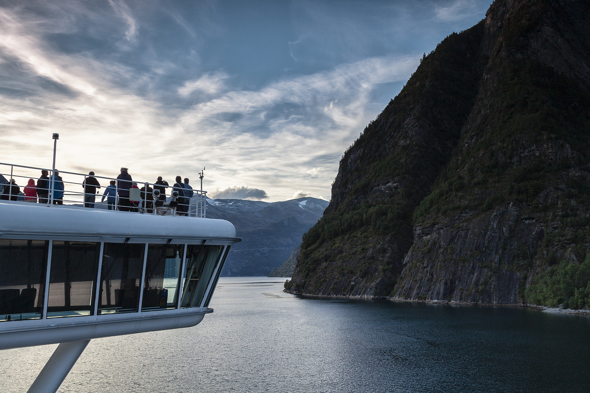 The picture was taken on our 2013 cruise aboard Crown Princess to Norway and, specifically, it was taken in the evening as we headed along Geirangerfjord. You can read about what we got up to on that day (a hike and a wander behind a waterfall feature) and see which pictures made the cut here: Geiranger, Norwegian Fjords. There were two problems with the picture I’d originally taken.