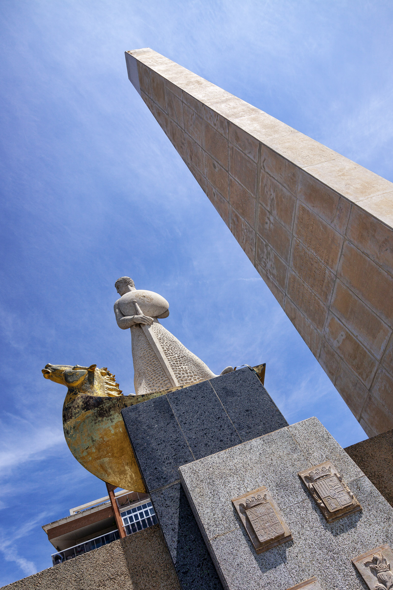 Vibrancy, contrast, and slight detail enhancement was added then this result was overlaid over the original image twice, once in Soft Light and once in Lighten, both with under half-opacity. This gave the basic colours a punch and brought out more from the shaded stone of the obelisk and the darker parts of the horse element of the monument.