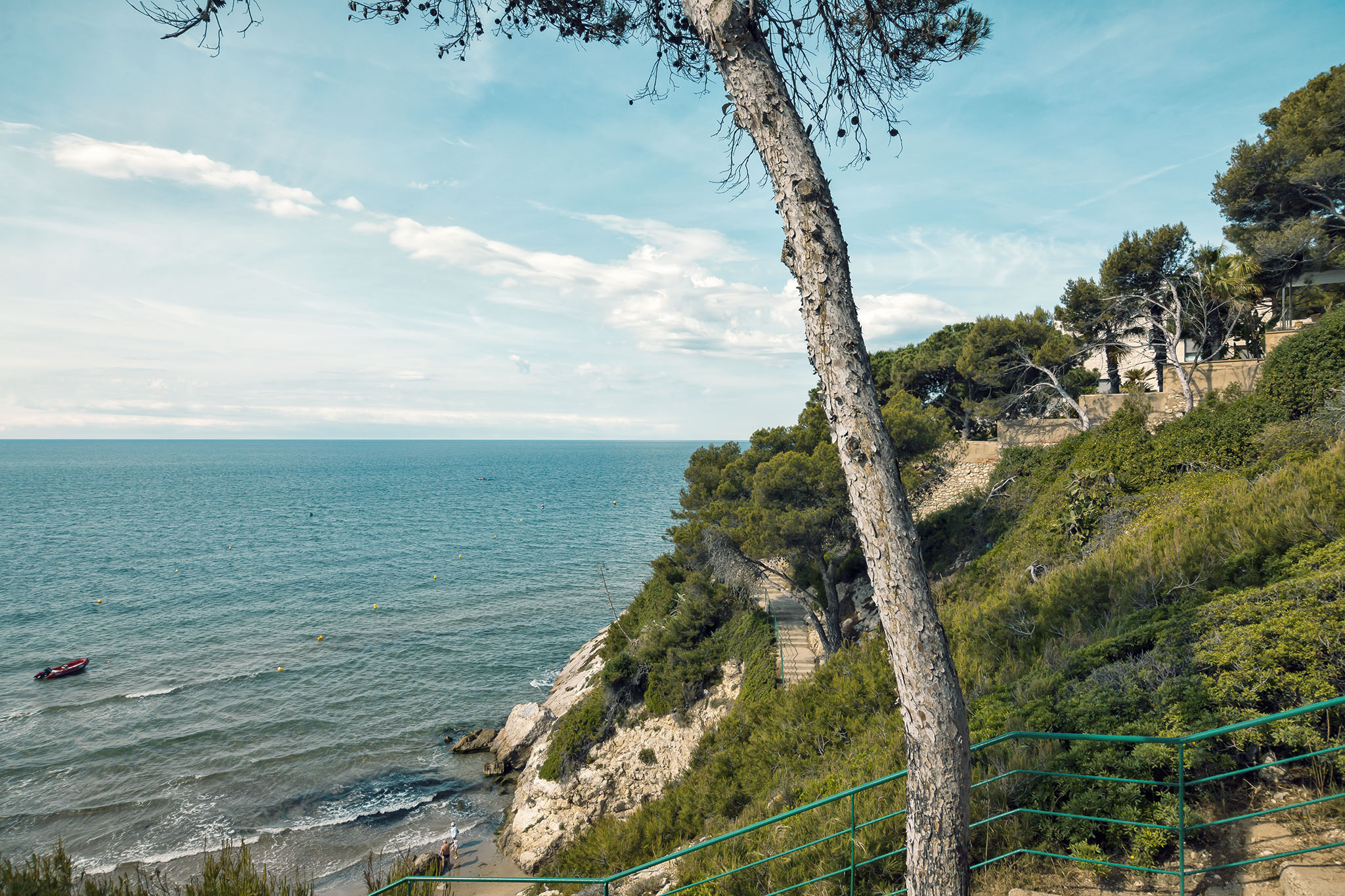 The original photo was taken on a walk we undertook along the Salou coastline although you won’t find this photo on that post (at time of writing this) as I initially created it when I was more discerning regarding the number of photos uploaded on any post. From our hotel there was a very pleasant clifftop and beachfront walk to the main part of town if you didn’t want to wait for the bus and we rarely want to wait for the bus if there’s a chance to get out and point the camera at anything of interest. There’s not a lot to say about this photo that isn’t immediately evident: there’s a small bay surrounded by low, rocky cliffs and steps leading down into it as well as a path around the top. We would take the path on this occasion although we did venture down into the bay on a couple of days during our stay in Salou as it provided a more pleasant environment for a swim than the more accessible but more packed beaches elsewhere along this stretch of the coast.