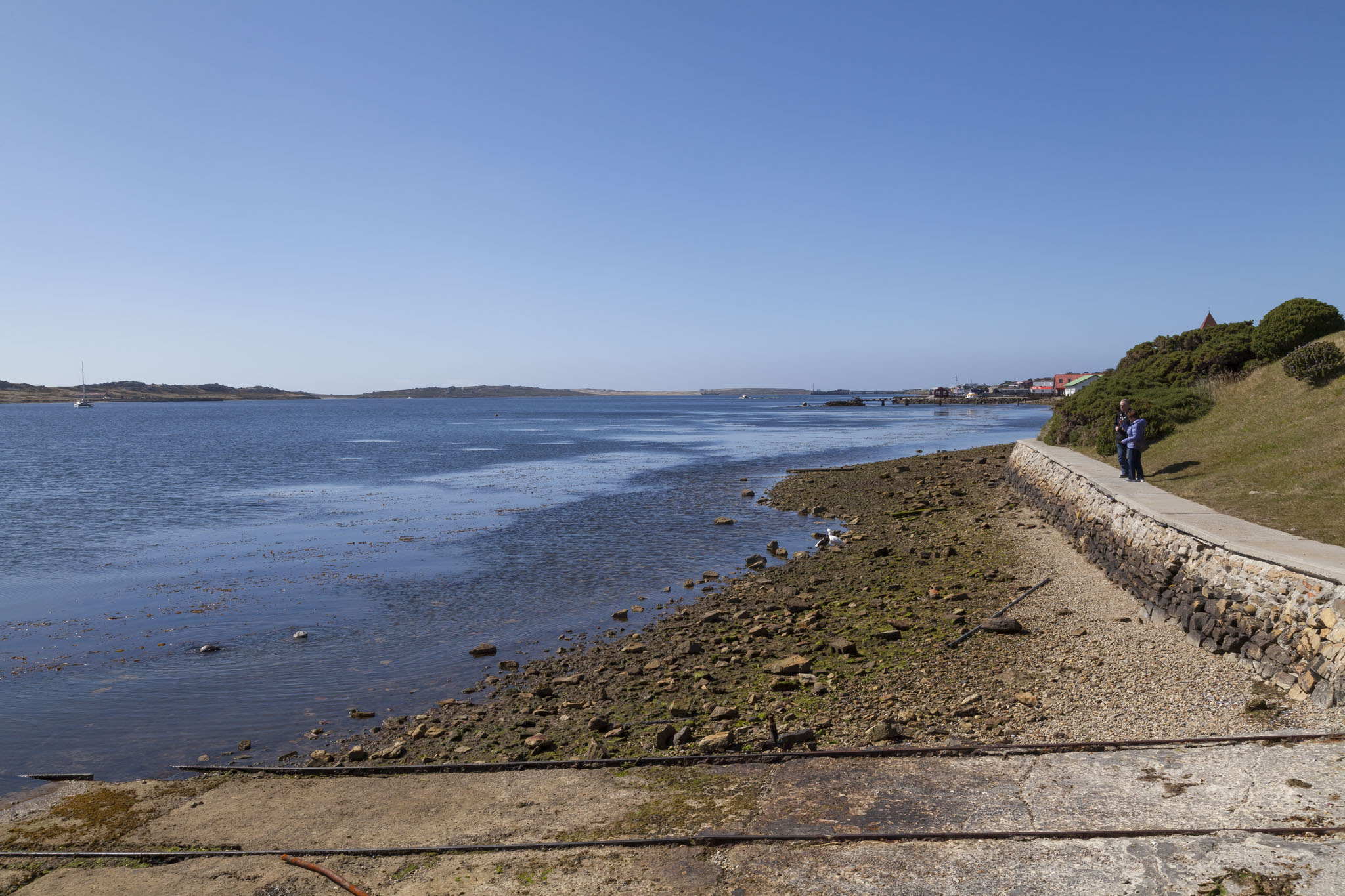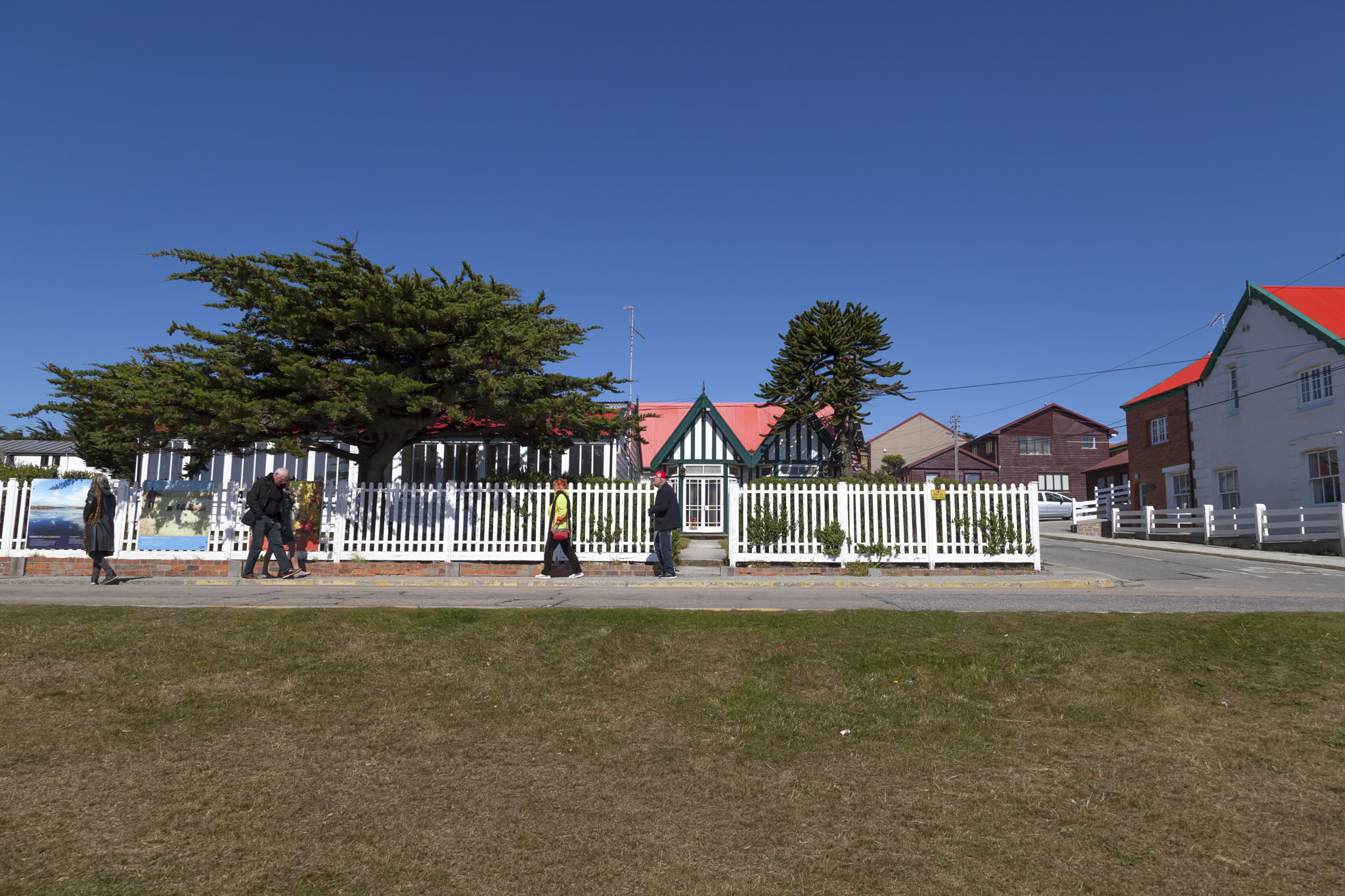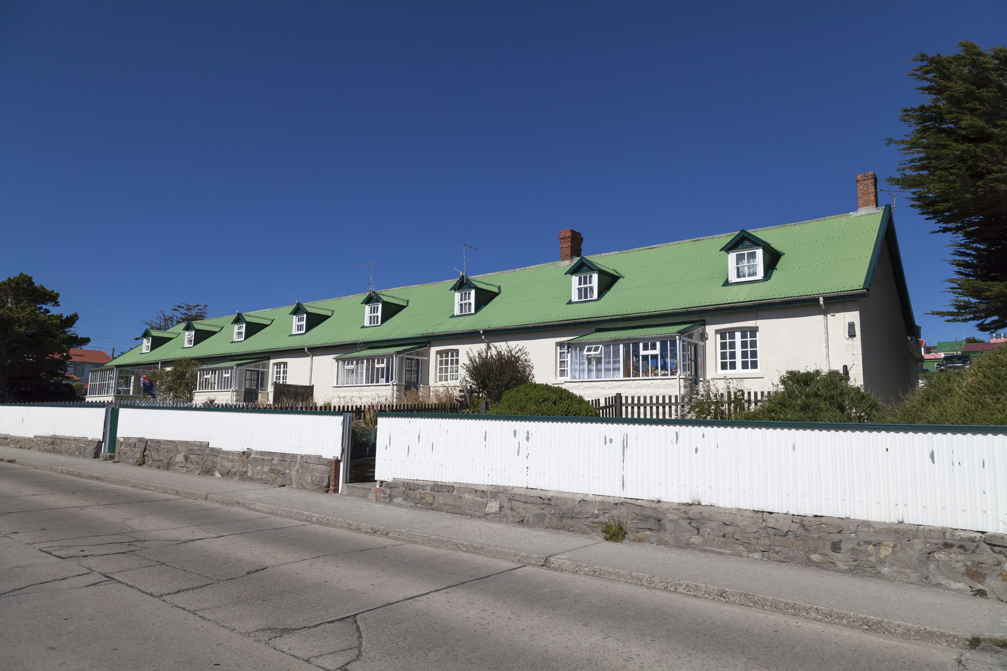 After the final part of our tour of the Falklands War battlefields at Mount Harriet we were dropped off back at Stanley close to Memorial Park. From here we would have plenty of time to be able to talk a walk around the capital of the Falklands with camera in hand and to check off a goal of ours, that being to have a drink in a pub of some description. There were barely any clouds in the sky and with the low volume of traffic on the islands the level of pollution in the atmosphere was noticeable by its absence. The sky was incredibly, almost painfully blue and we were warned that we should be careful with exposure to the sun. We ignored it and got a little bit burnt. That’s so us.