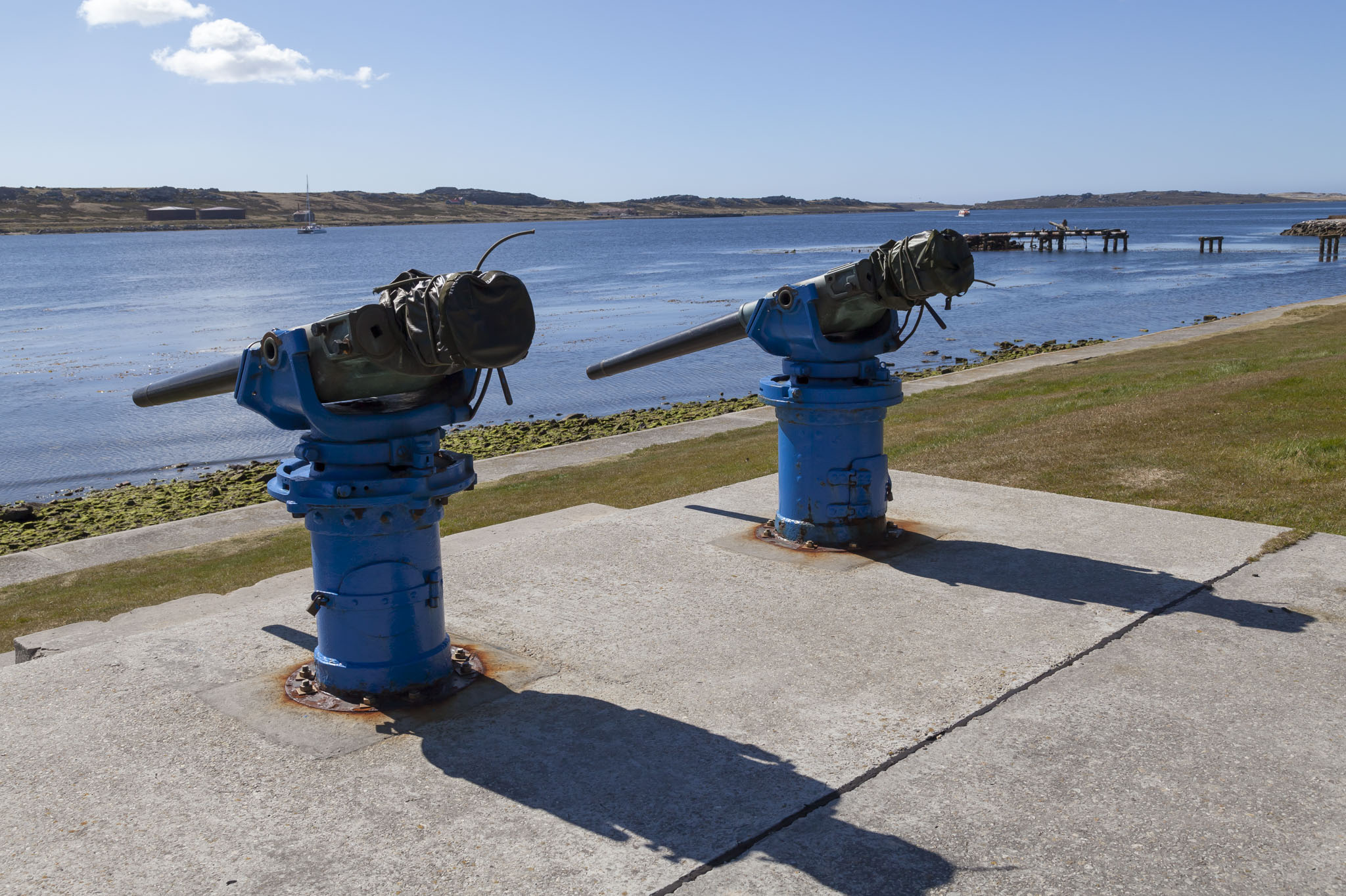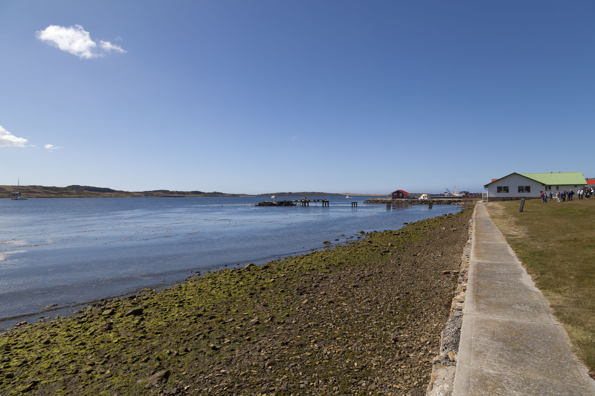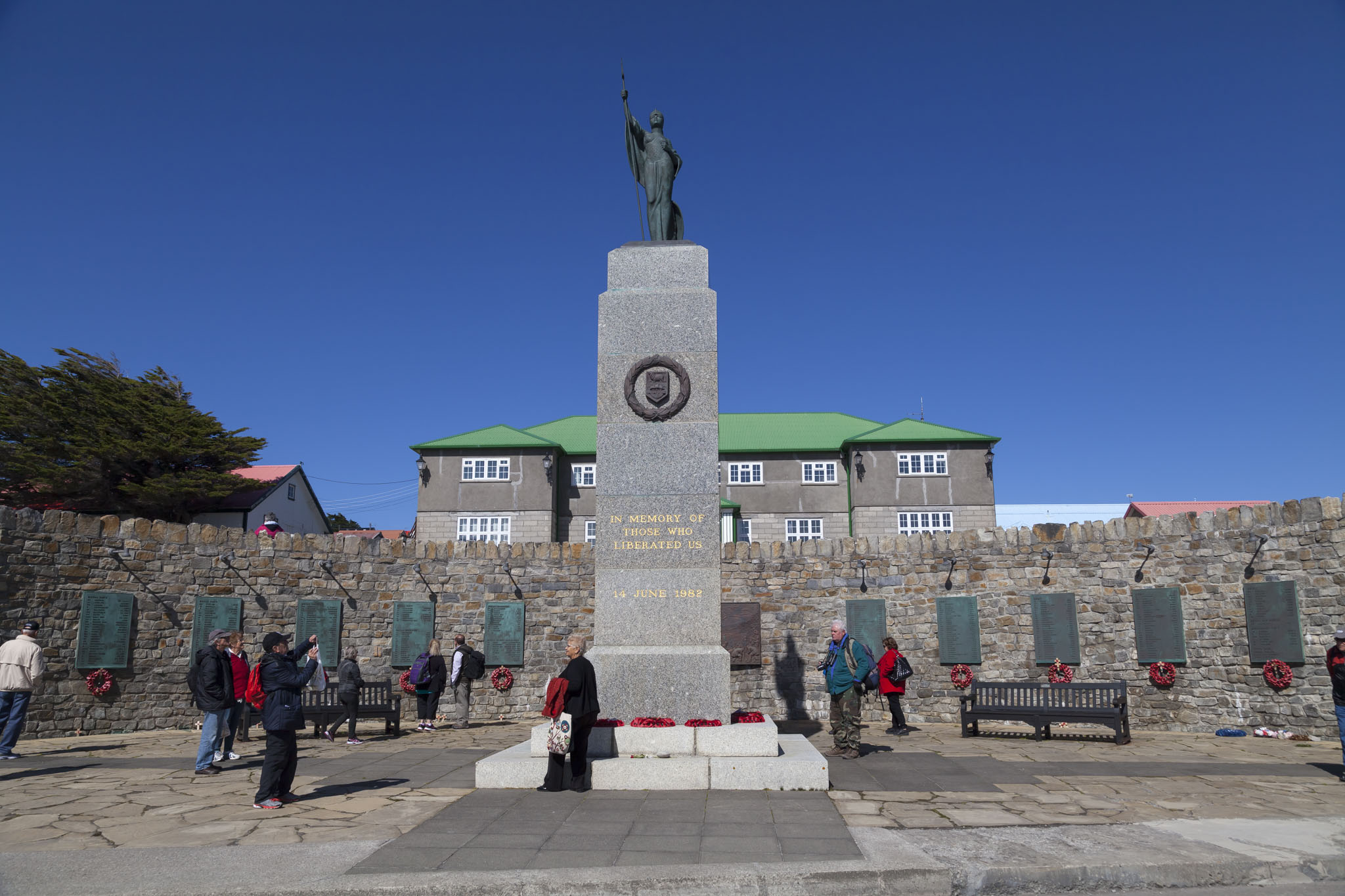 After the final part of our tour of the Falklands War battlefields at Mount Harriet we were dropped off back at Stanley close to Memorial Park. From here we would have plenty of time to be able to talk a walk around the capital of the Falklands with camera in hand and to check off a goal of ours, that being to have a drink in a pub of some description. There were barely any clouds in the sky and with the low volume of traffic on the islands the level of pollution in the atmosphere was noticeable by its absence. The sky was incredibly, almost painfully blue and we were warned that we should be careful with exposure to the sun. We ignored it and got a little bit burnt. That’s so us.