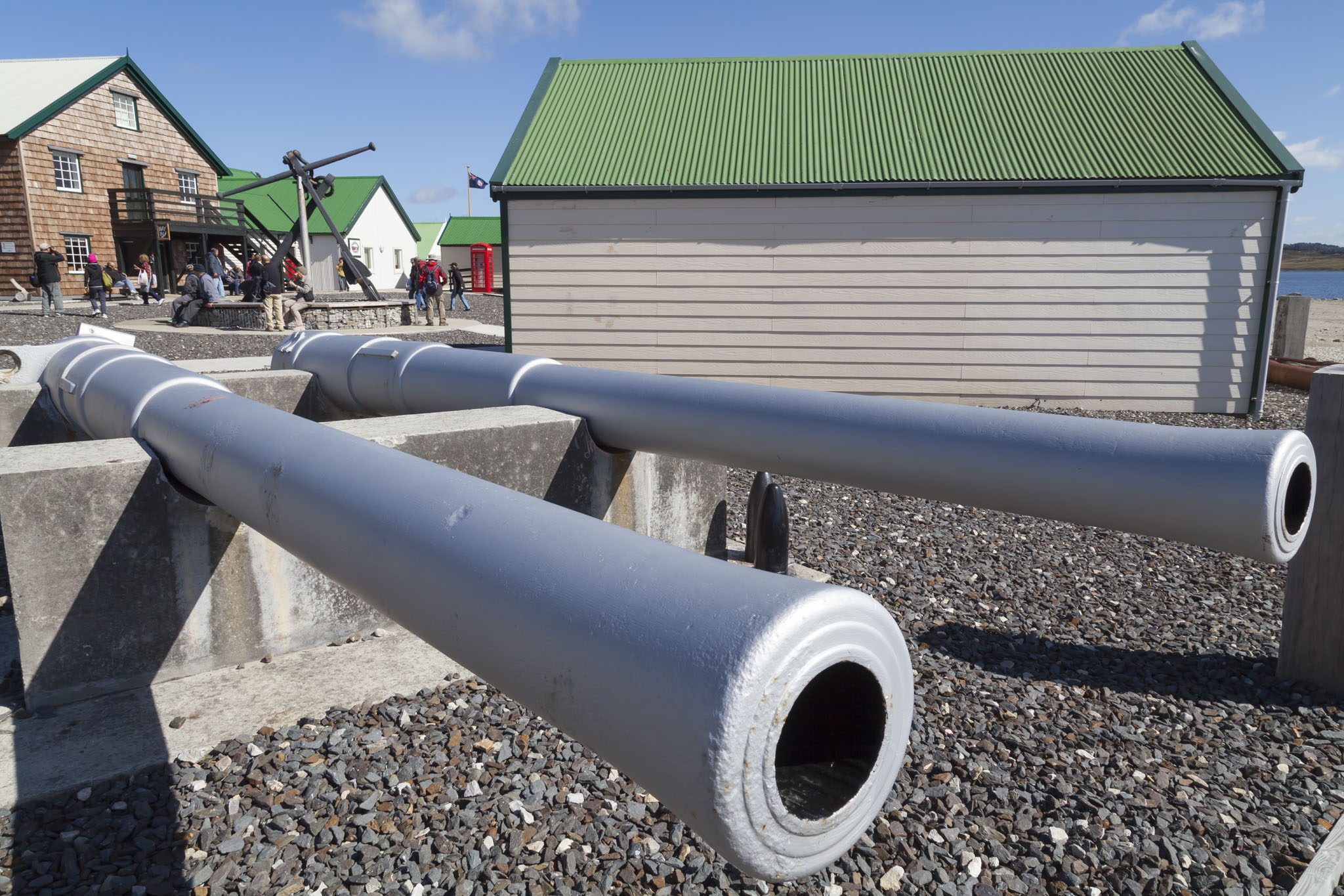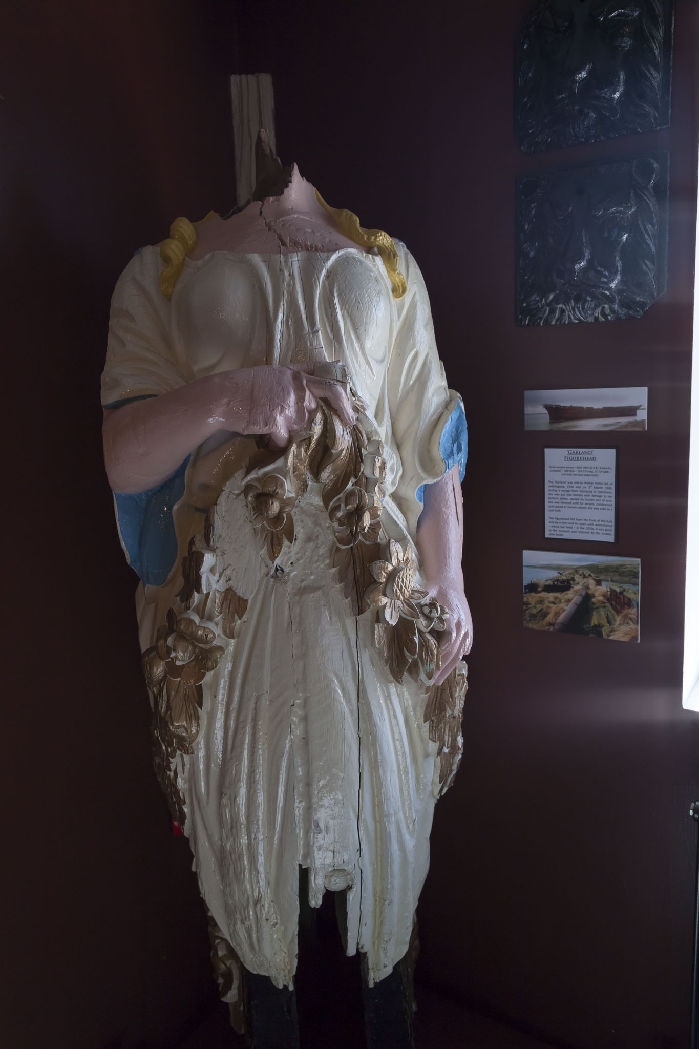 There were a smattering of military and maritime exhibits outside the museum with some lovely views across the harbour but it was inside that we wanted to visit. We entered and saw what looked like a ticket desk only for the woman behind to smile and gesture for us to step through and look around without paying. We thought that was odd but did so and came to wonder as we wandered around whether she had mistaken us as part of a tour group who were also exploring since we were still wearing our excursion stickers from the completed battlefields tour. We shrugged and agreed that the museum would do alright out of us anyway as we’d seen they had a shop and we had every intention of spending cash there as we’d been too impatient to wait in the souvenir shop. For the record we followed through on our intention, bought loads of little things, and even got some Falkland Islands change for our holiday money collection.