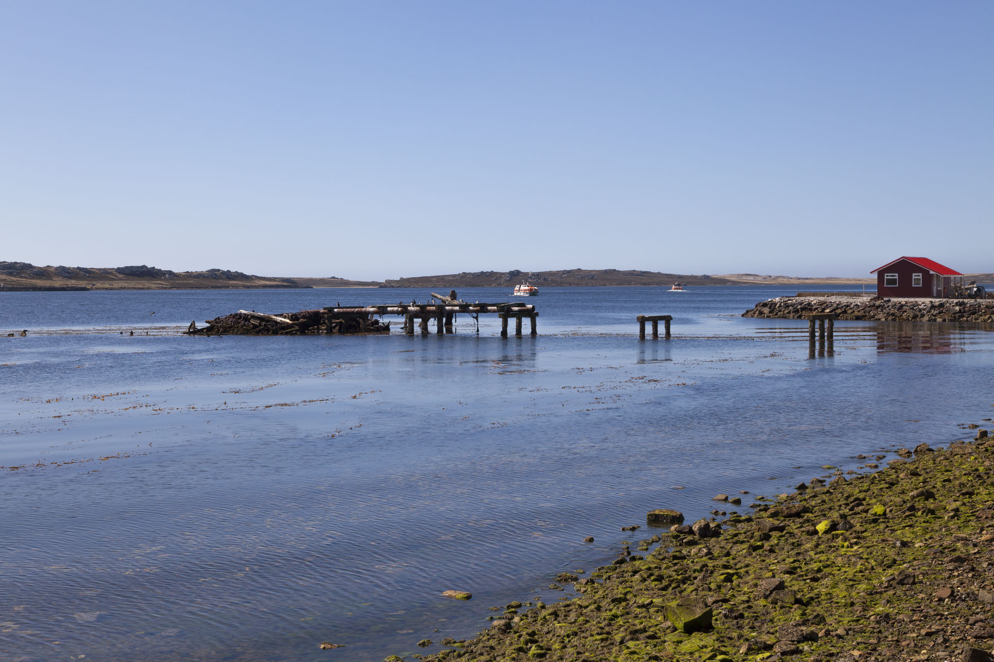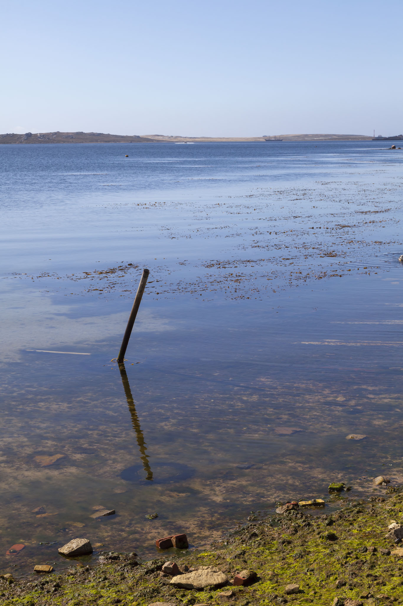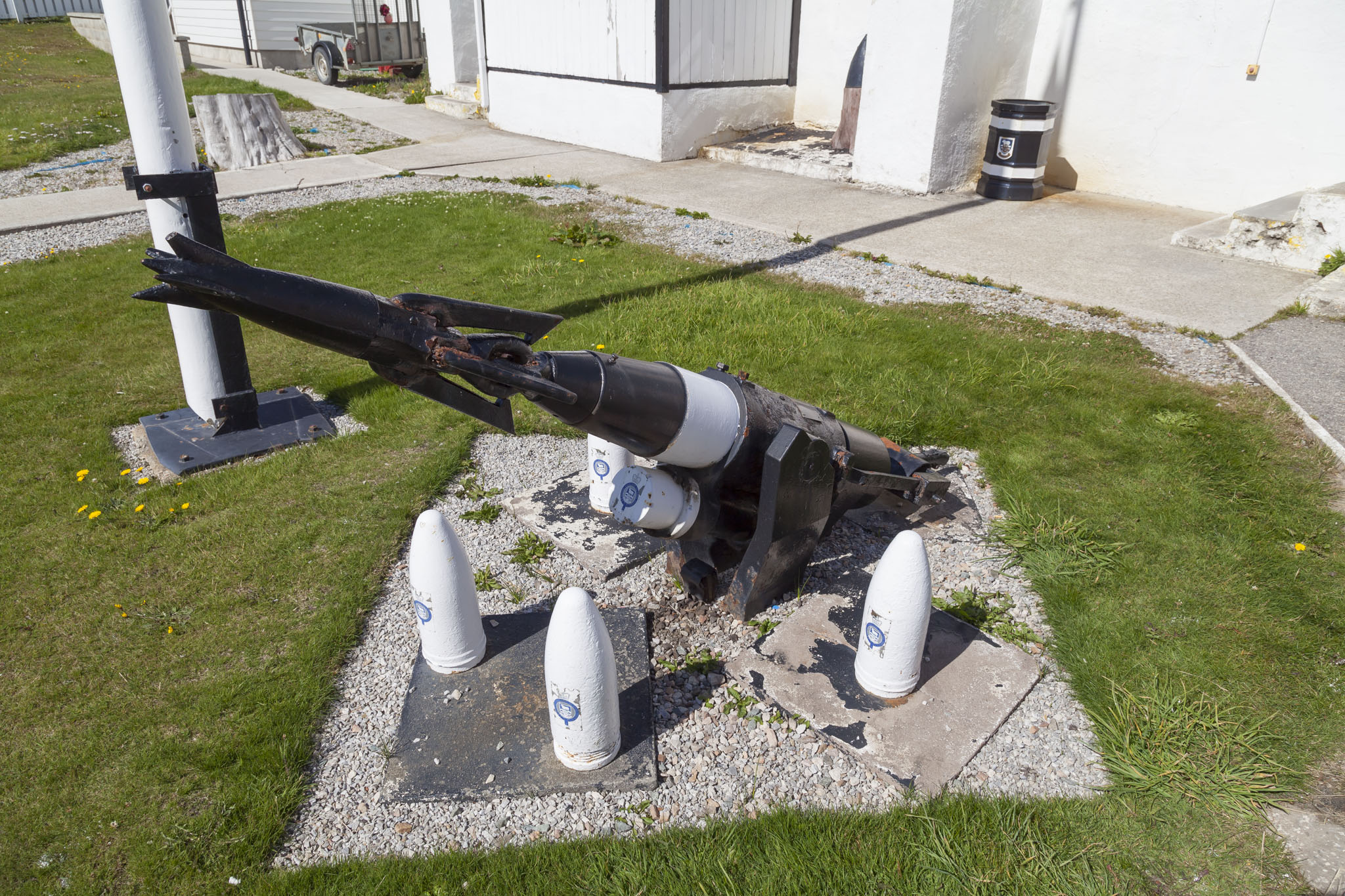 We carried on along Ross Road which runs along the harbour front in Stanley passing many buildings built in the style typical for the islands: white with coloured roofs, usually red or green. We also passed the mizzen mast of the SS Great Britain which had been damaged in a gale around Cape Horn in 1886.