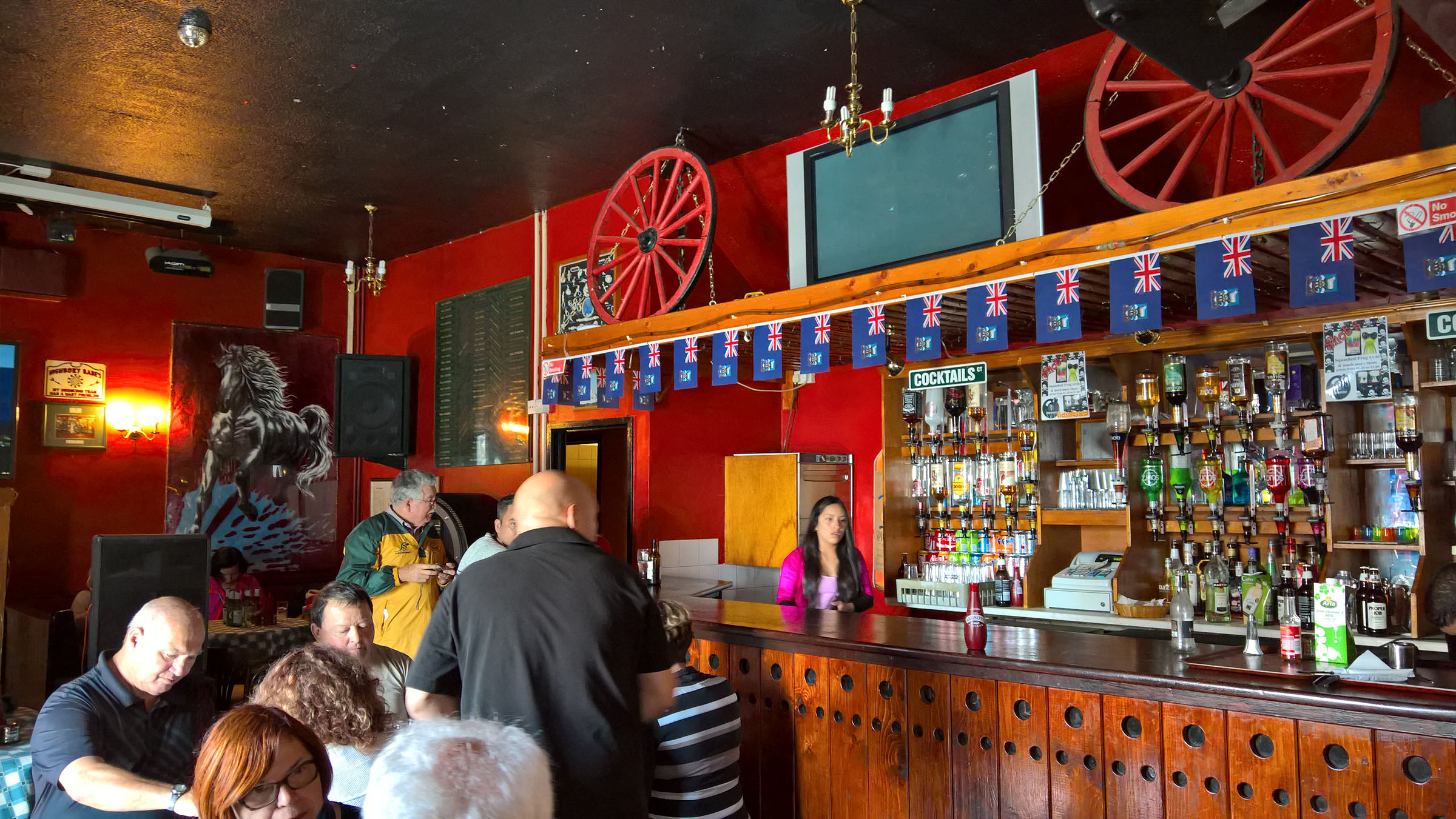 This concluded our exploration of the interesting parts of Stanley on the Falkland Islands but did not conclude our time. We wanted to say we’d had a drink in a bar on the Falklands and just around the corner from the cathedral we spotted a gathering of like-minded people at the Globe Tavern. We initially thought everyone there would be from our cruise ship as it was the only one out in Blanco Bay and we could see nothing else in the harbour but this turned out not to be true.