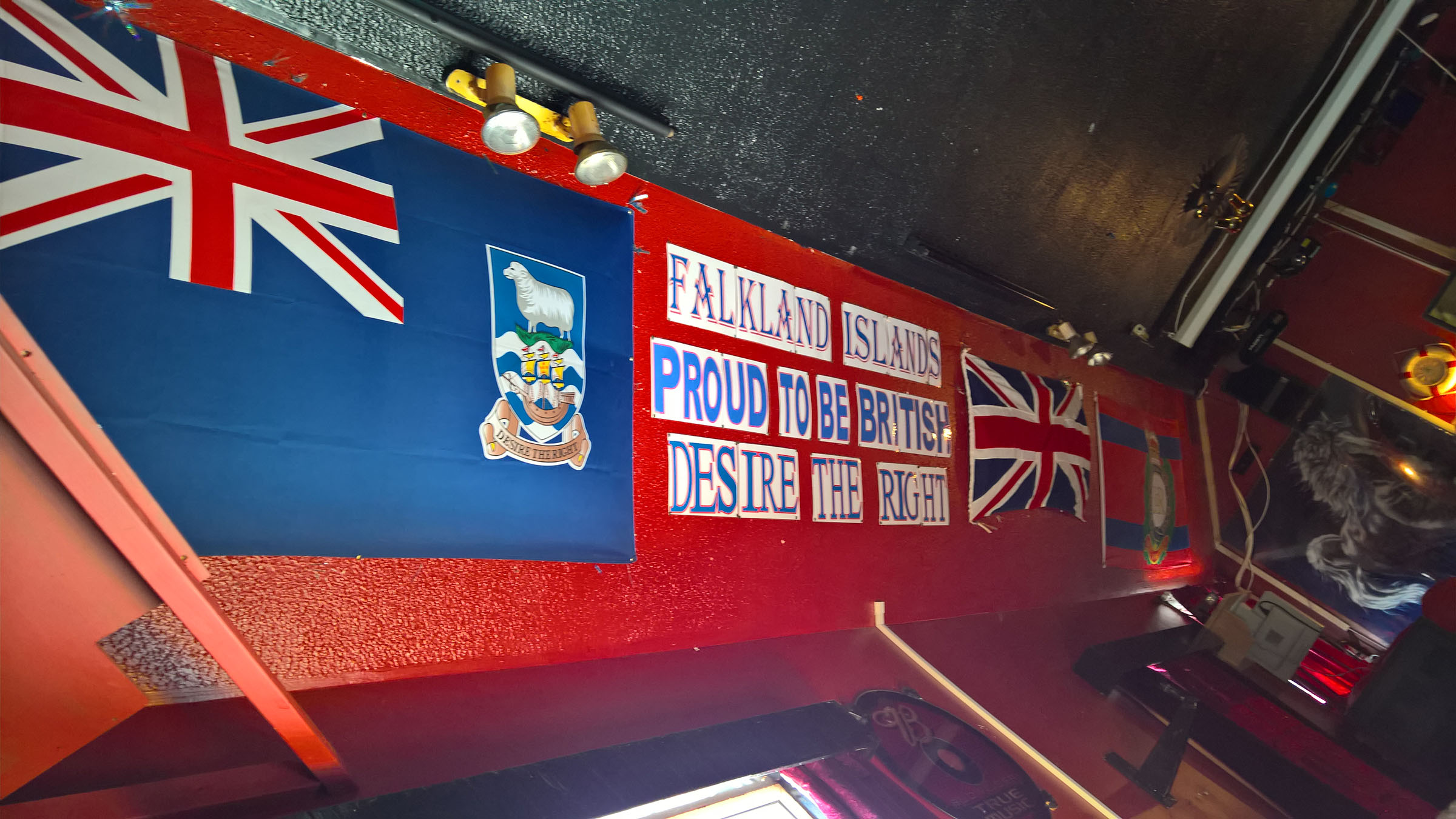 Our tour guide had told us that many Argentinian people visited the islands (something we found surprising) and this was the case with a sizeable number of patrons in the bar clearly from the closest mainland. Indeed, the staff and possibly owner too were also all Argentinian. Despite this and despite the very pro-British sentiment displayed prominently there seemed no issues with anyone. Smiles and close proximity to a family of Argentinian tourists led to me being asked to take their photos and I happily obliged. Our tour of the battlefields and its reminder of reasonably recent warfare between our two nations contrasted nicely with the pleasant, joint effort of ordinary people to make a living and run businesses.