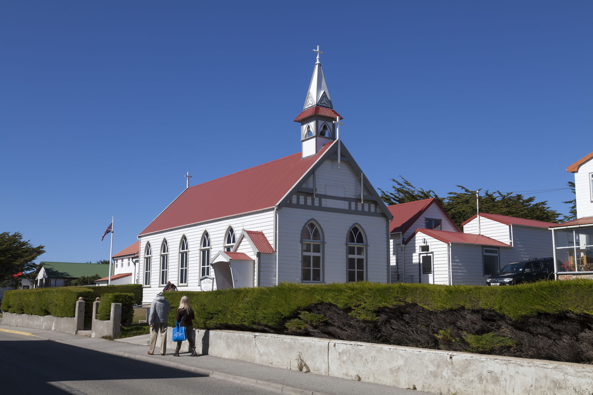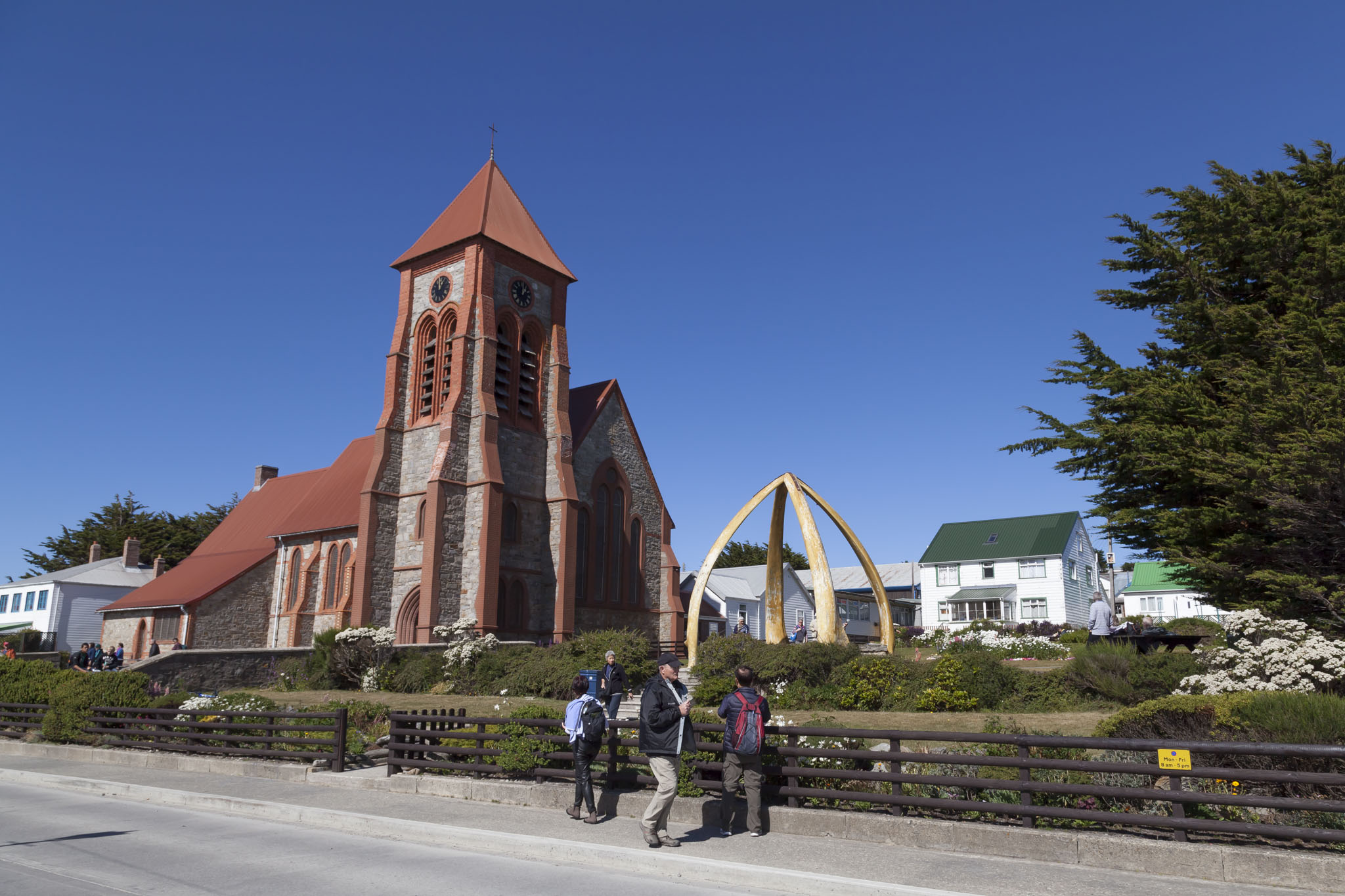 The next place we came upon was Christ Church Cathedral, famous in many pictures of the Falkland Islands because of the whalebone arch that decorates its entrance. The bones are from the jaws of two blue whales and the monument was put up in 1933 for the centenary of British rule and if you find yourself visiting Stanley on the Falkland Islands then there’s a very strong possibility that you’ll end up taking photos like this too. You won’t be able to help yourself.