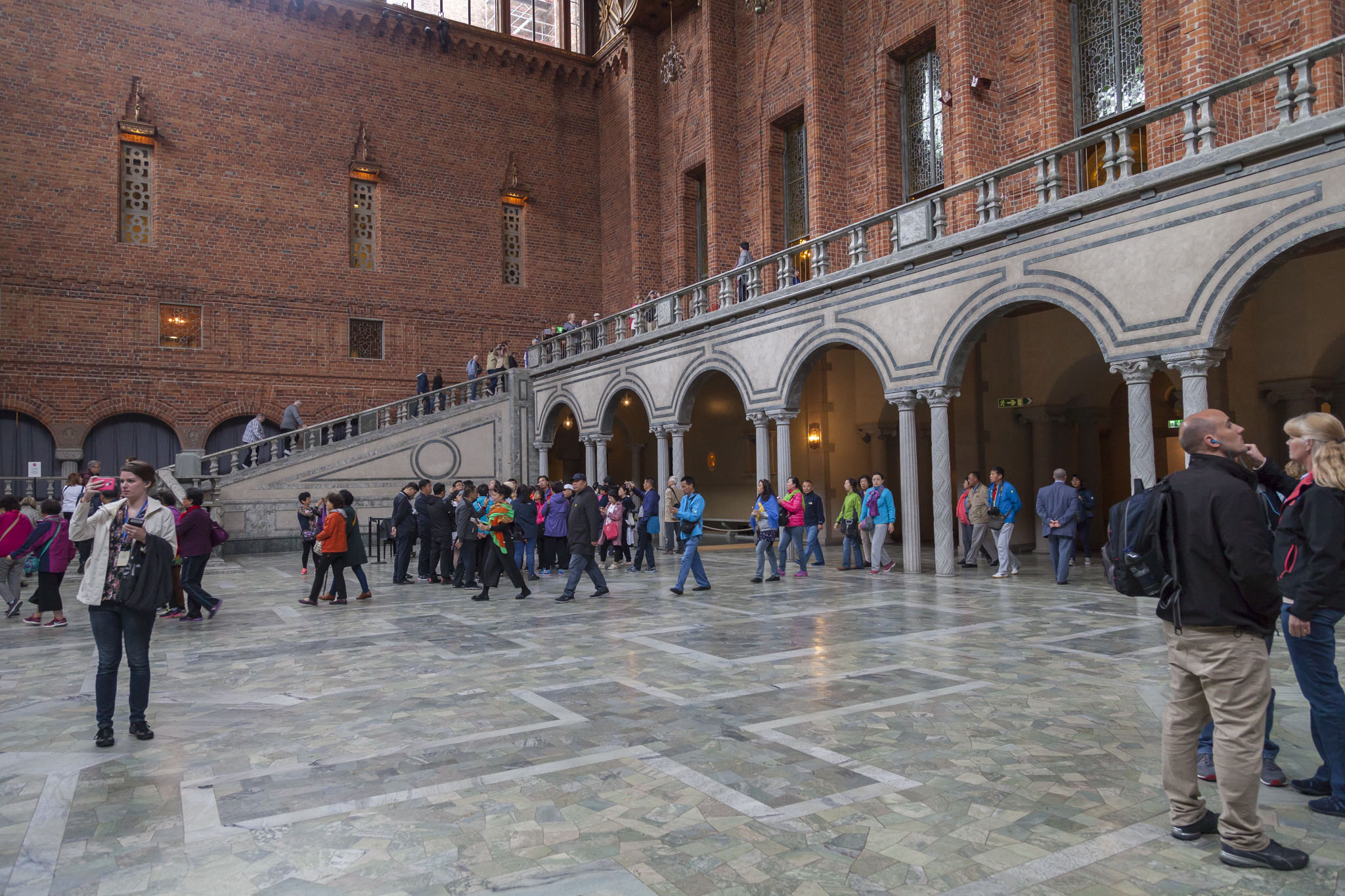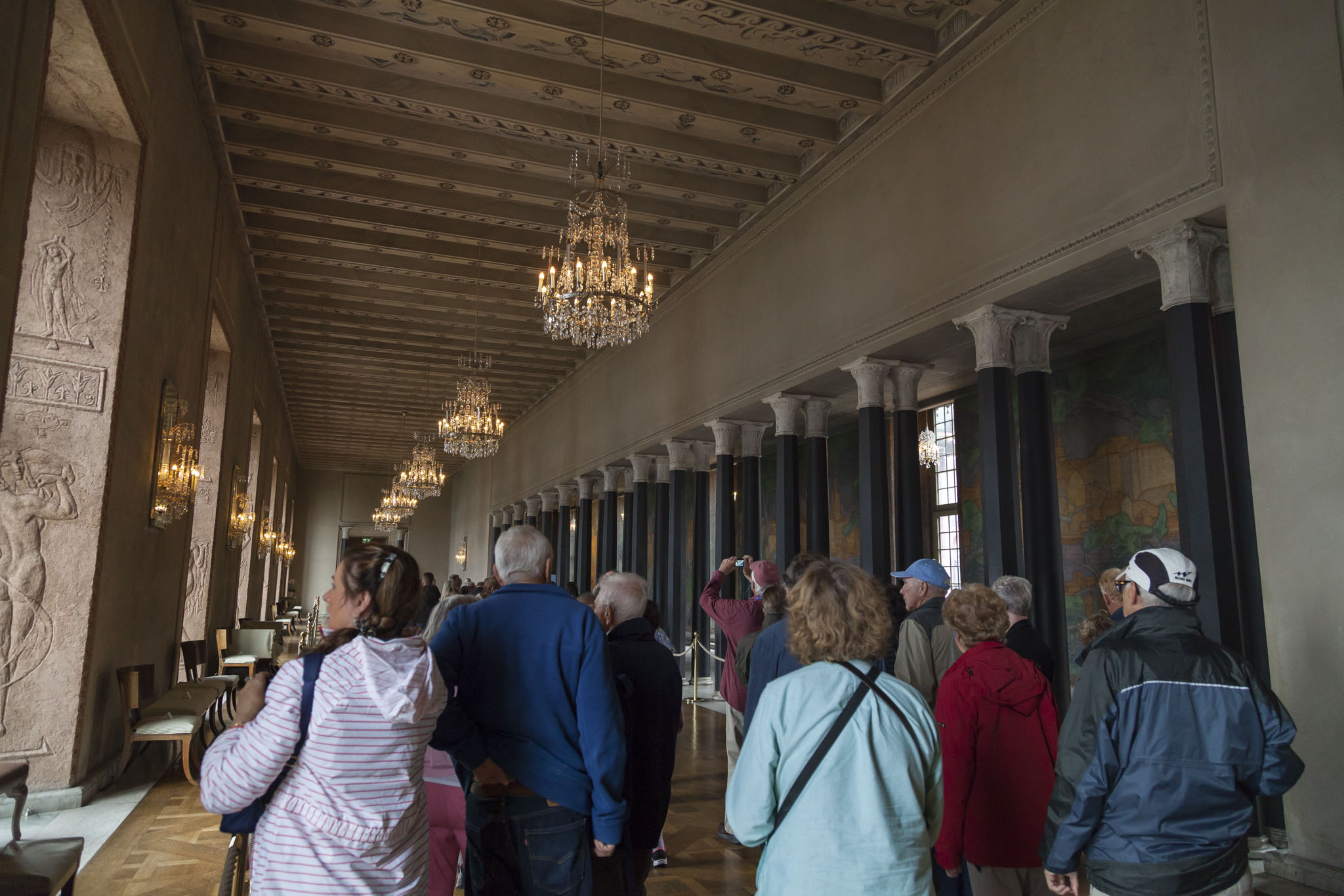 Our first stop in Sweden‘s capital city, Stockholm, was at the popular tourist destination of the City Hall. While it’s possible to visit City Hall on your own you can’t tour the building alone and must either be part of a public tour group or a private one. We had a private tour as part of our excursion and because any groups of more than ten people are required to go privately.