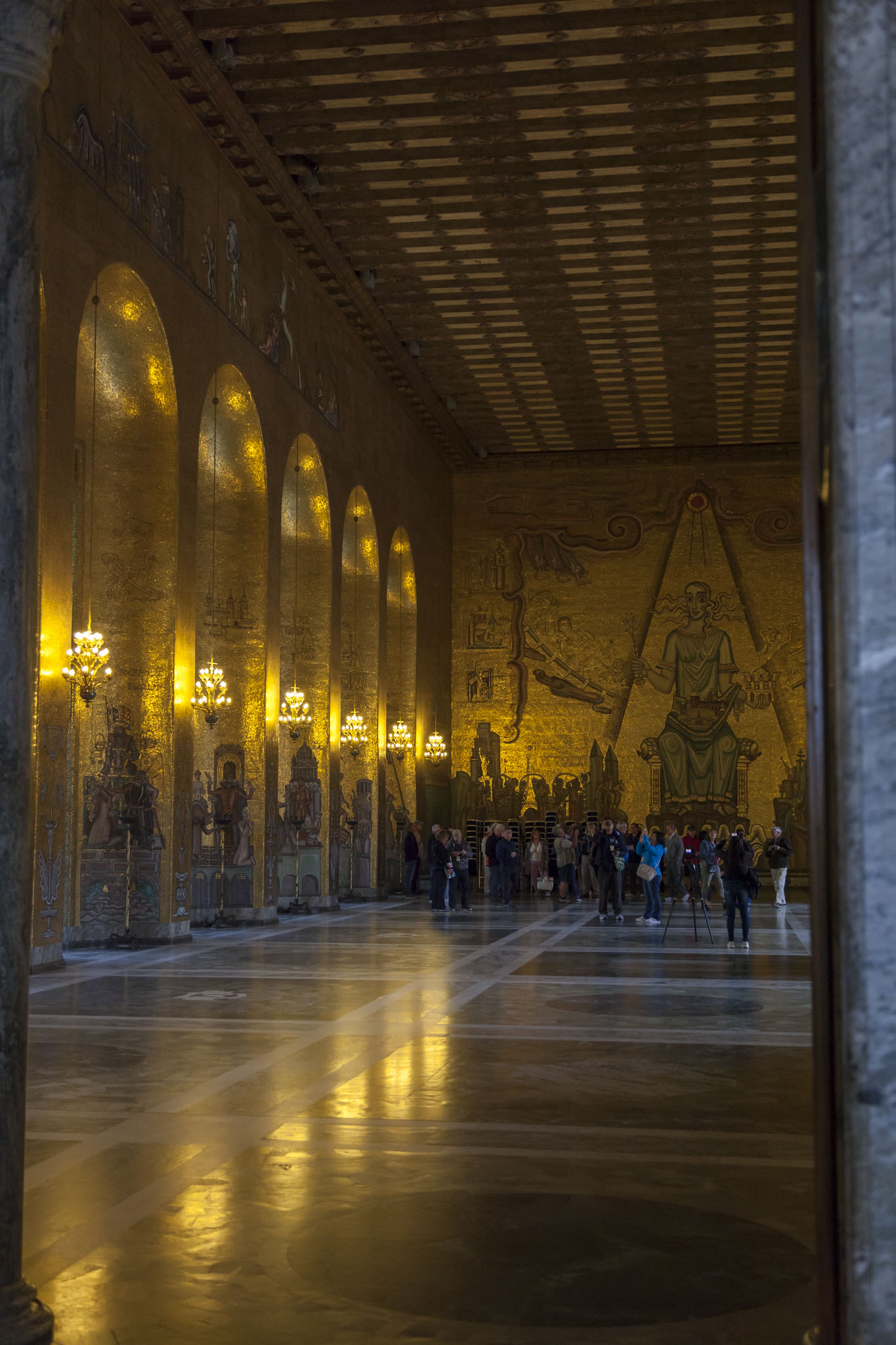 Clearly the most impressive of the large spaces in City Hall was the Golden Hall. Following the Nobel Prize banquet each year a ball is hosted in this huge room. Mosaic design covers every surface, made from over 18 million pieces of gold and glass.