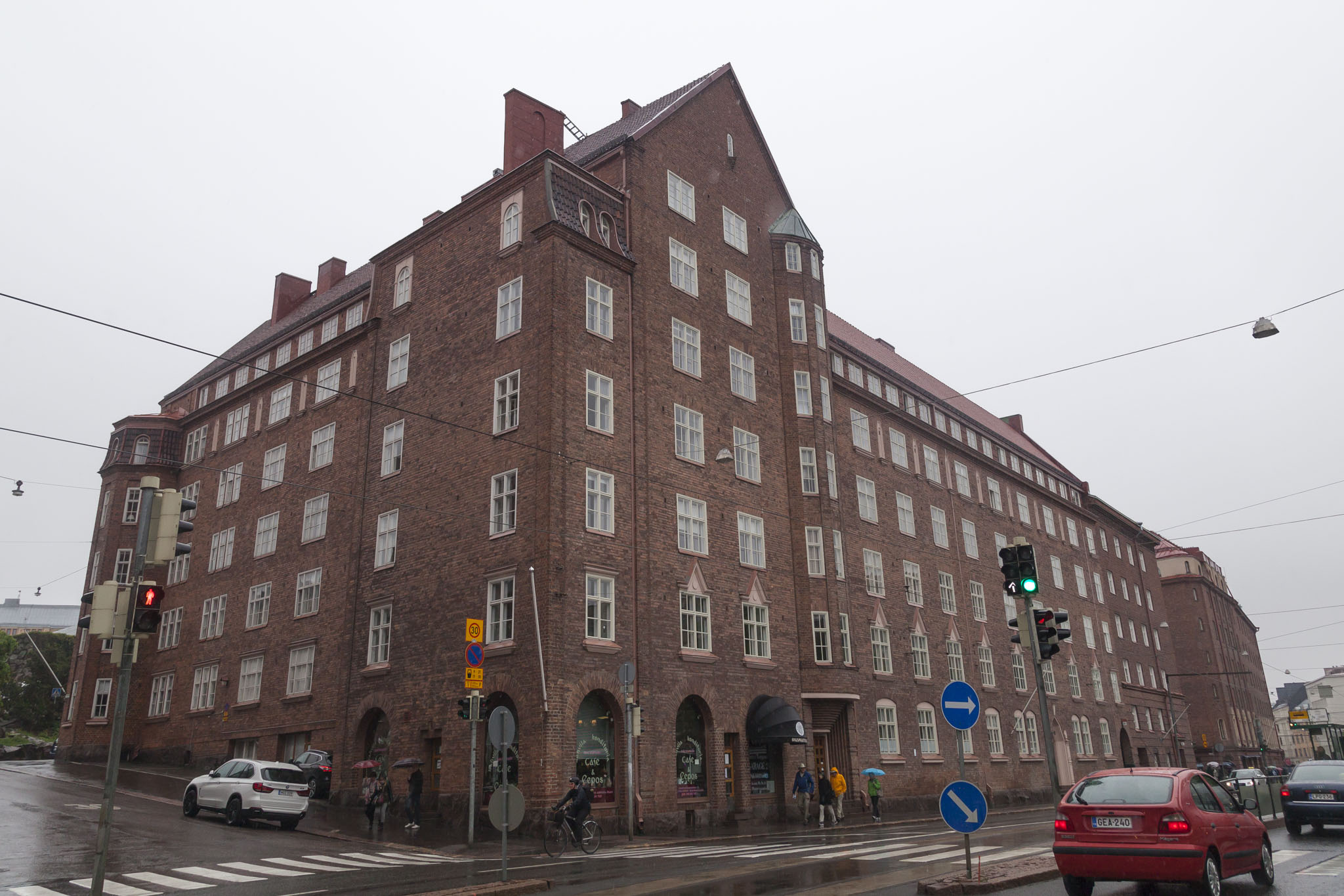 Our coach parked up along Runeberginkatu which left a fairly straightforward walk of a few hundred metres before crossing the road and heading up a short sloped road on the left to the church. Why am I telling you this? Well, partly because it might help to know that there’s a short walk with a bit of an incline if you’re on the same sort of excursion we were on, and partly because… well, that will become clear at the end of this account of our visit. I grabbed a few photos on the way but the weather and general architecture were both pretty miserable.