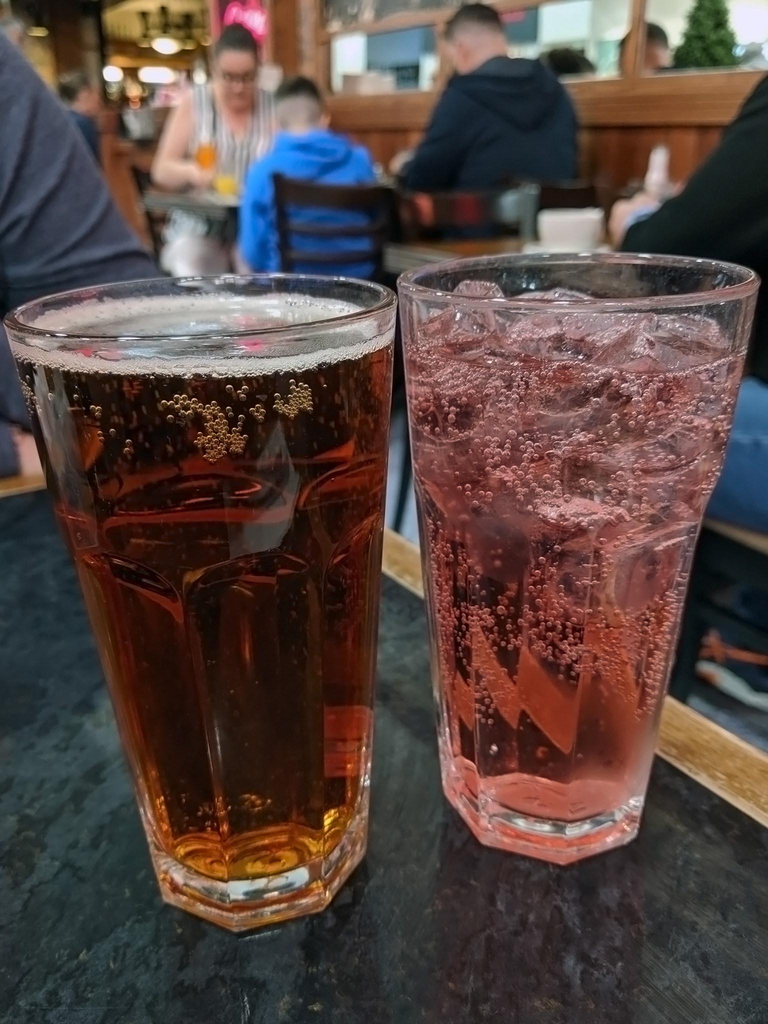There weren’t many options for breakfast in the airport and the size of the queues made our minds up for us: Frankie and Benny’s won out the day. Beer and cider before eight in the morning? You bet! We were on holiday!