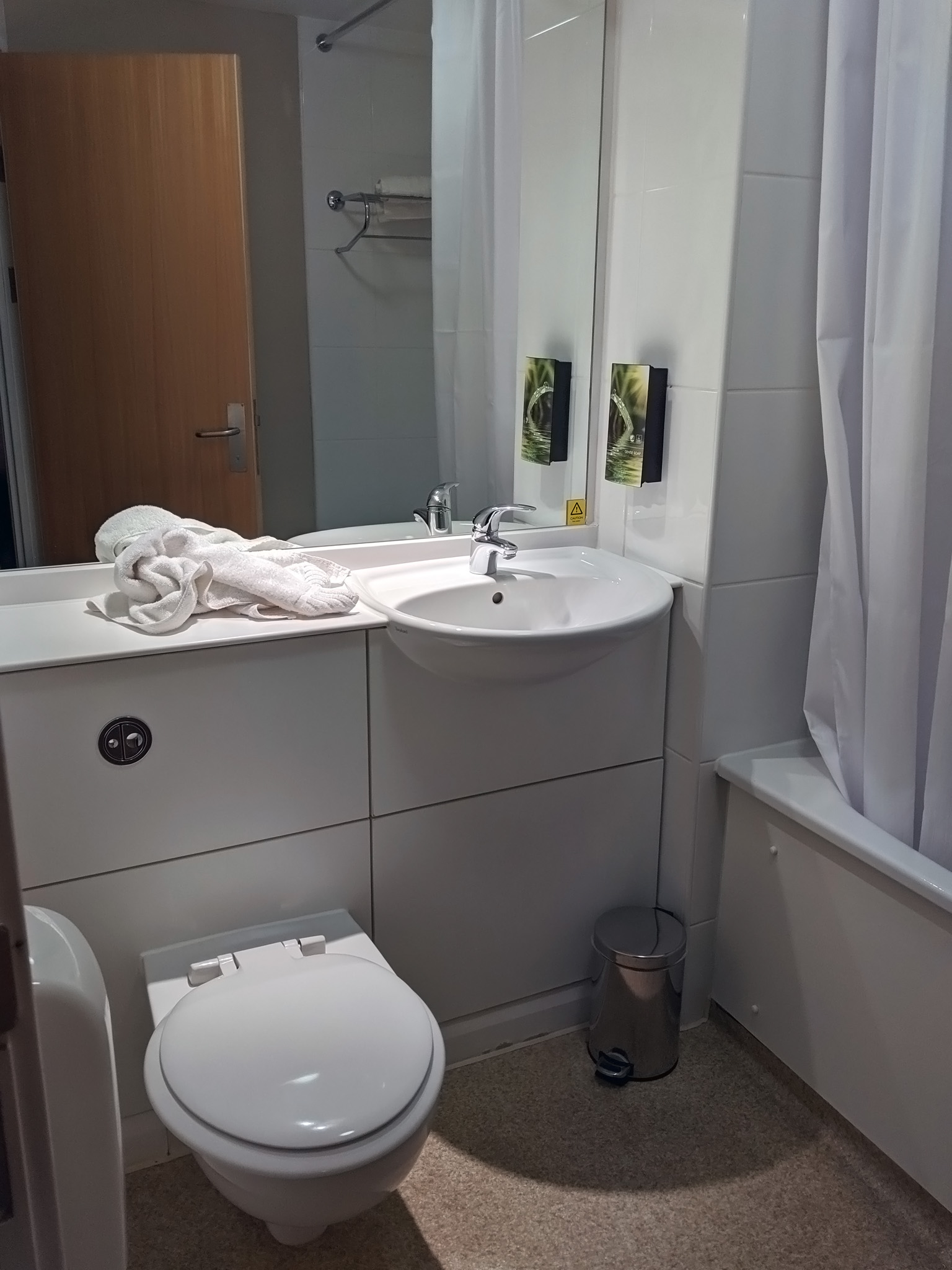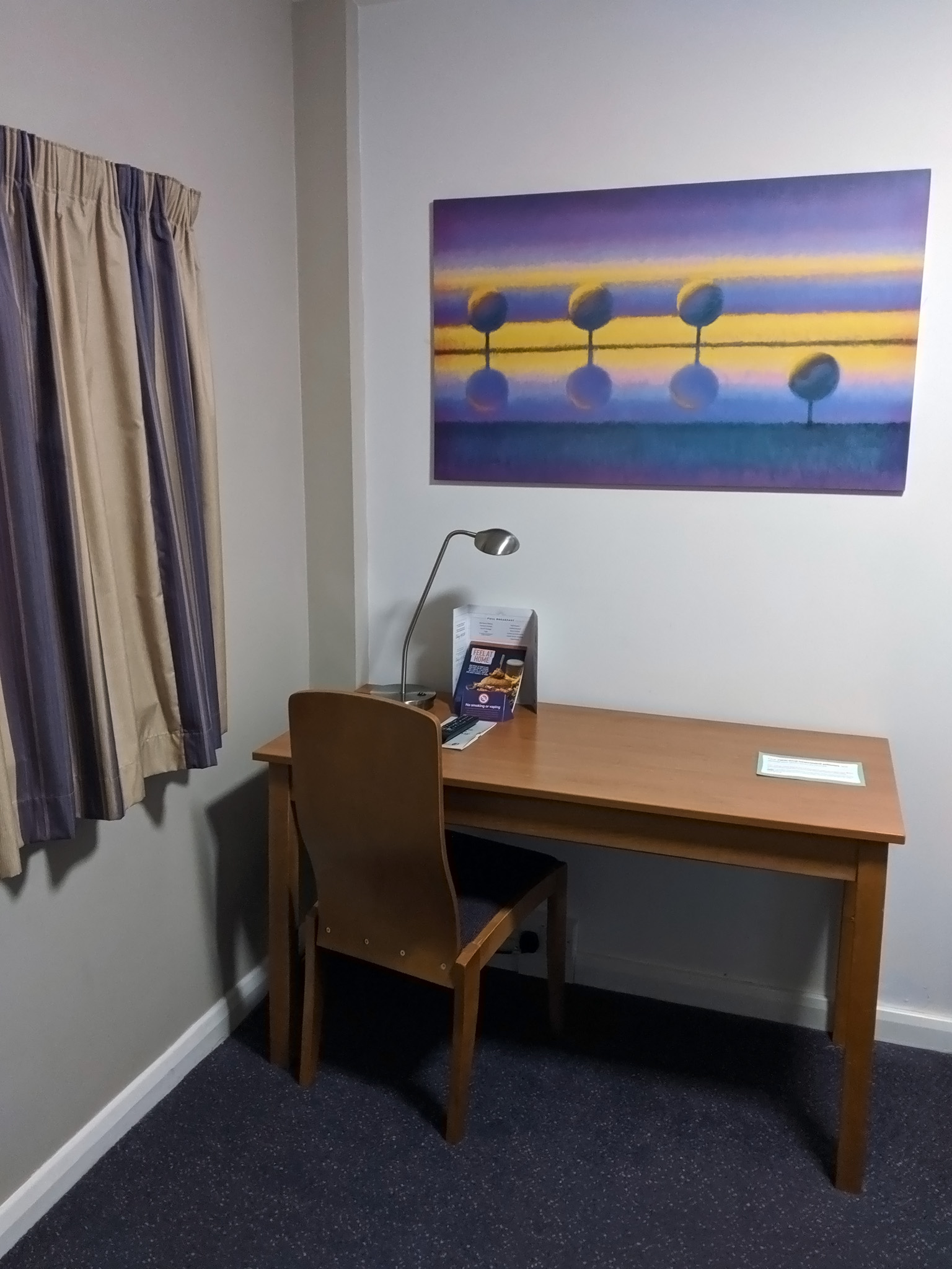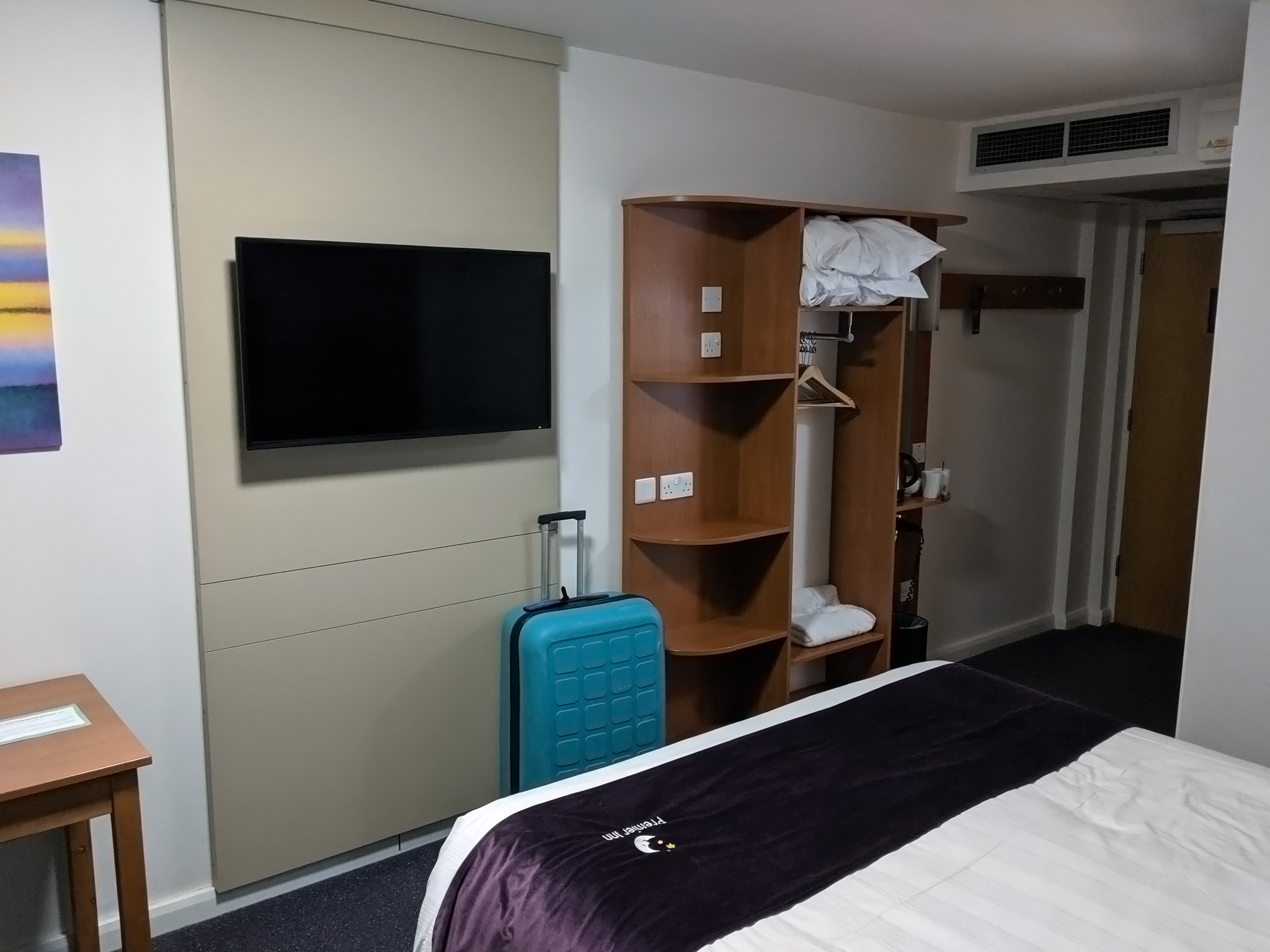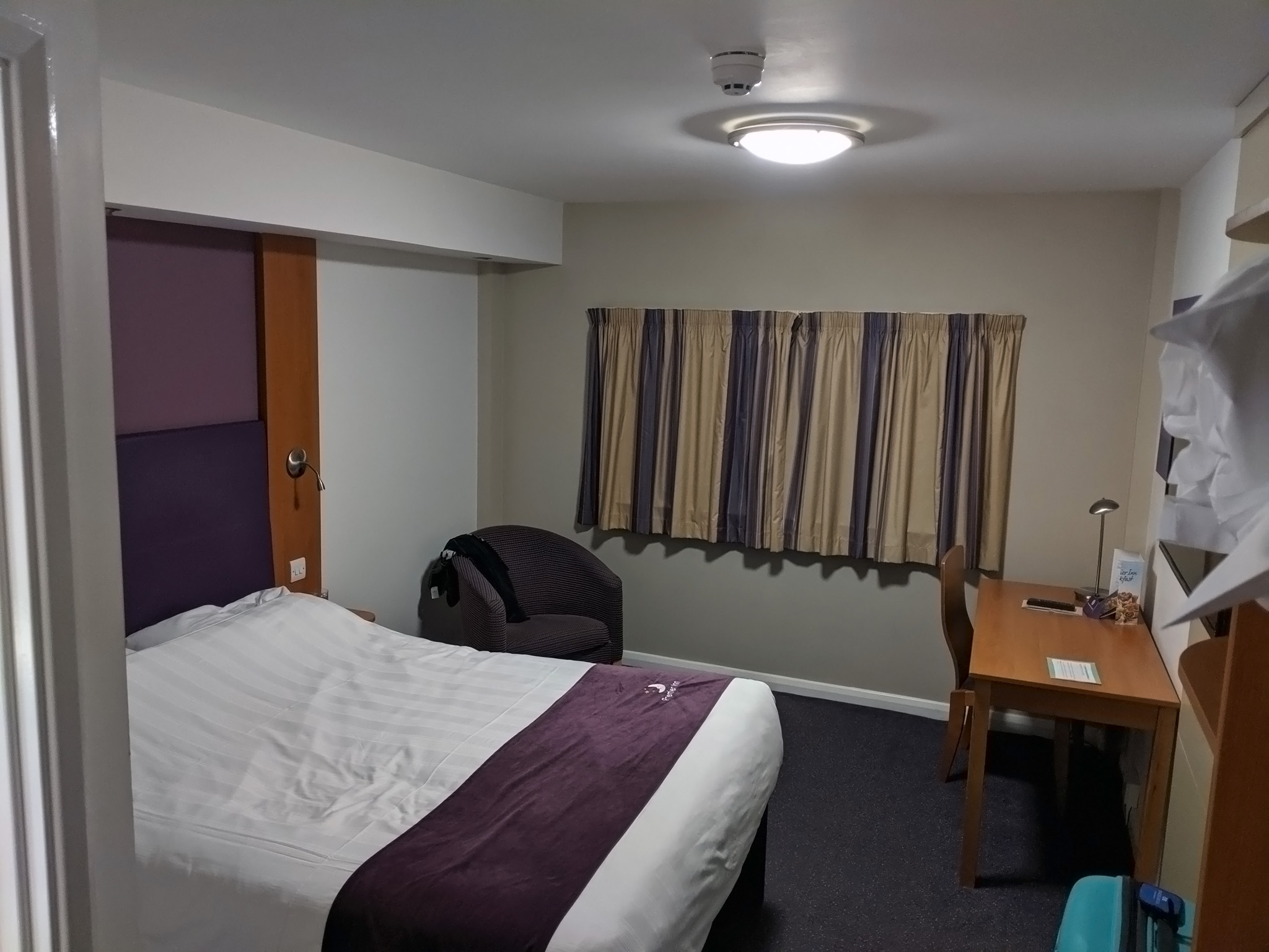 Checking in was simple enough although the machines to allow you to generate your own key card to the room didn’t have the ability to add on car parking so that had to be done in person at a nearby desk. After a close-to-five hours drive up from the south coast (with a short service station break after Oxford for a bite to eat) it was good to stretch our legs, throw the cases down, freshen up a bit, let Facebook friends and family know we’d arrived in The North safely, and snap a few photos of the room just in case nobody else on the internet has ever posted a photo of a Premier Inn hotel room before. I’m not even going to check; I’m just going to assume I’m the first person to do this.