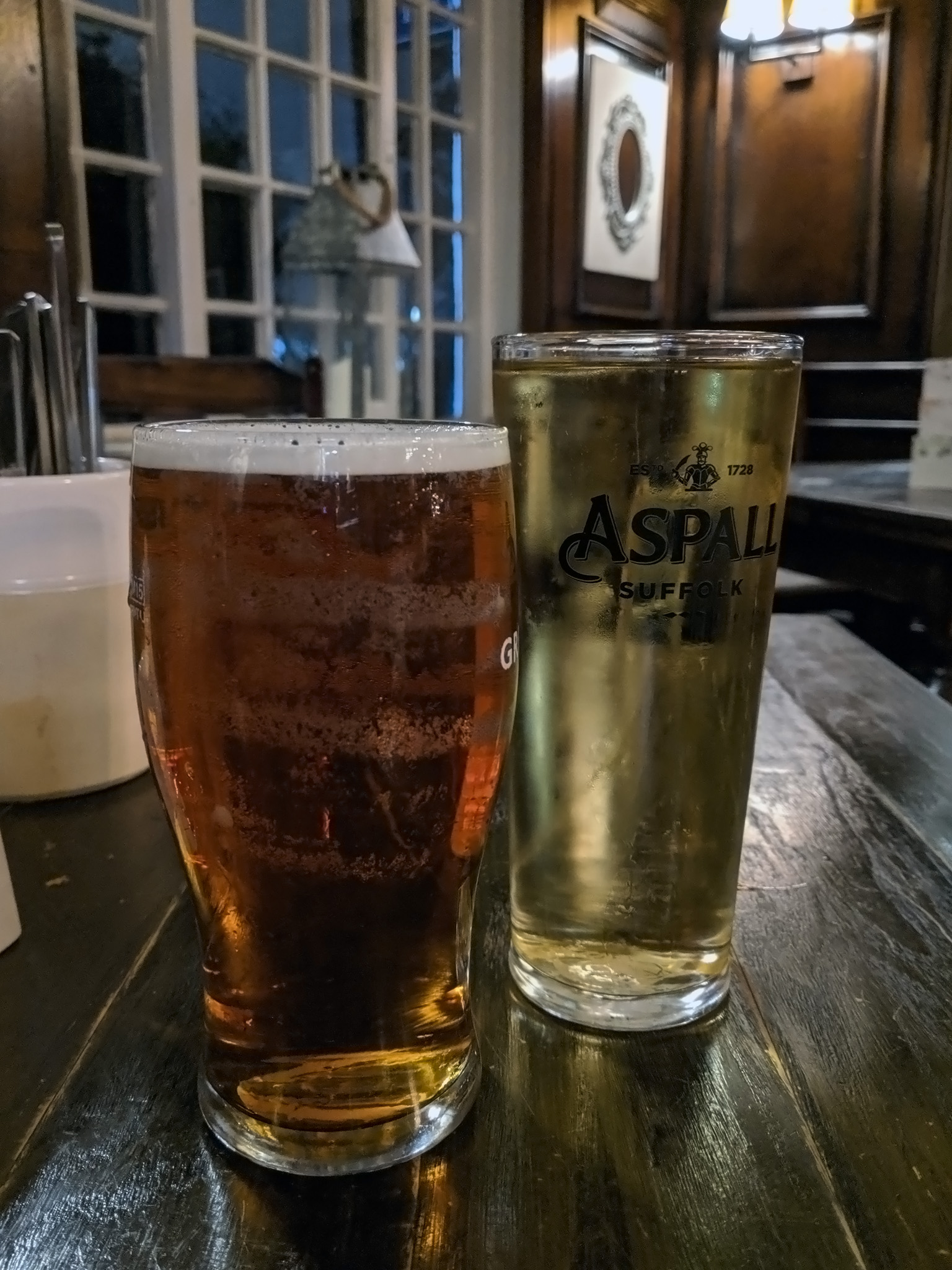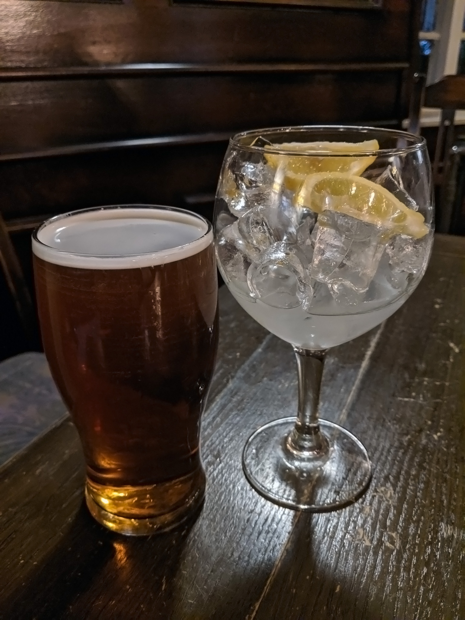 The pub itself was very nice. Large, lovely old stone and wooden beams everywhere. Staff were friendly. Some fellow patrons were a smidge boisterous – one was standing on a seat at one point and banging on the ceiling; what a charmer – but that could happen anywhere. Importantly, some bloody lovely regional beer that absolutely necessitated a second pint and a decent range of gin too.