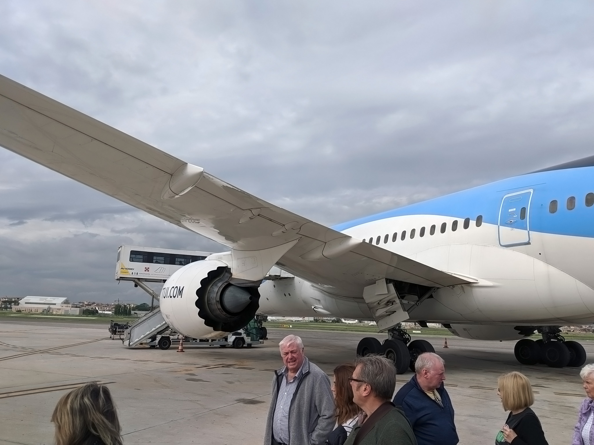 Our flight to Naples was on one of TUI’s 787 Dreamliner aircraft and the one named Mrs Patmore specifically. You can read the story behind the plane’s name here. With it being a short trip to Italy no headphones were made available so the onboard entertainment wasn’t able to be used nor was any free meal part of the flight. My wife had her Kindle and I had my book and a window seat so could alternate between escaping into science fiction and saying irritating things like “Ooh, we’re over water!” and “Ooh, we’re no longer over water!” For a few hours that was just fine.